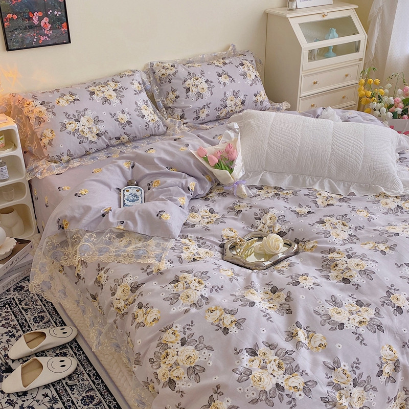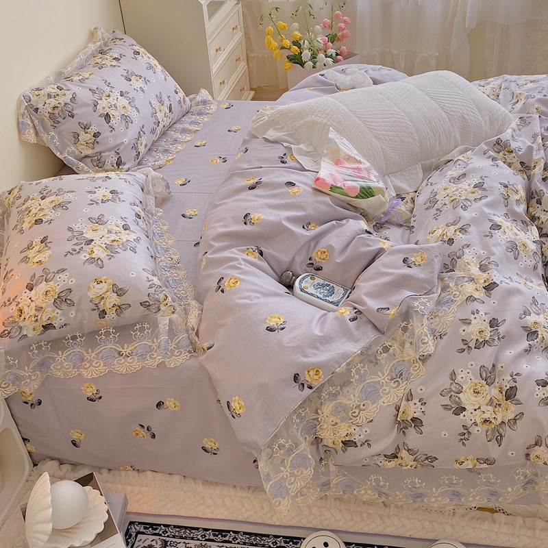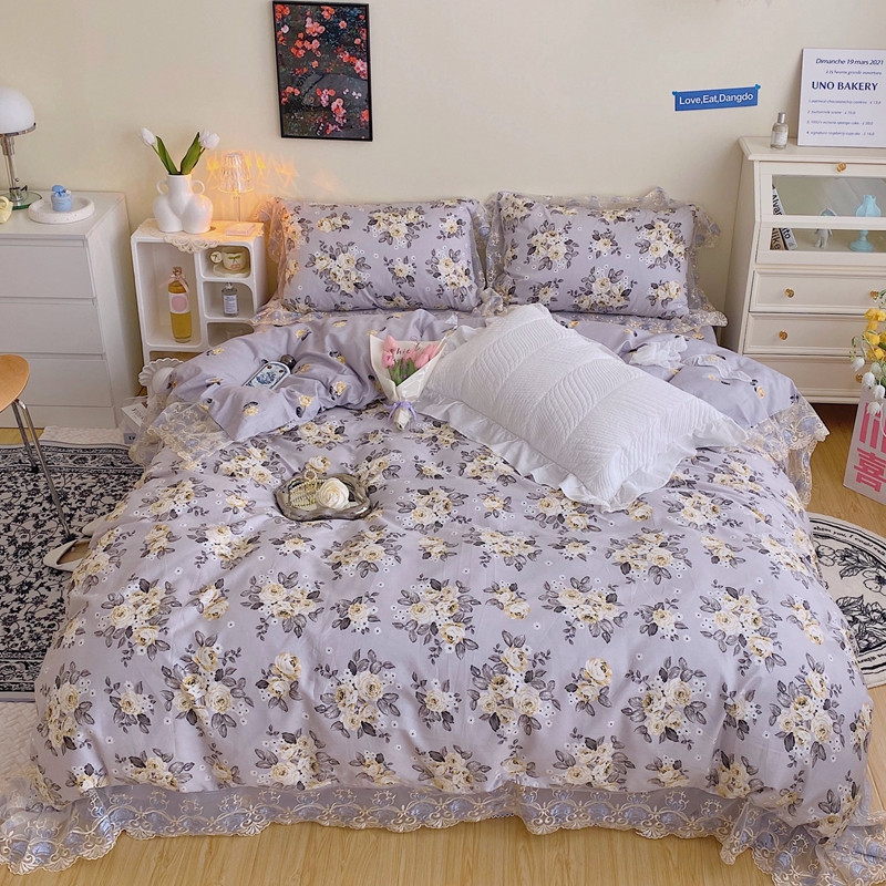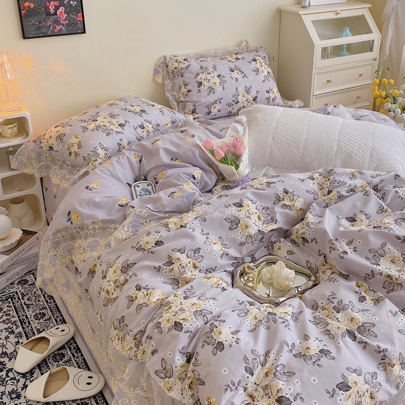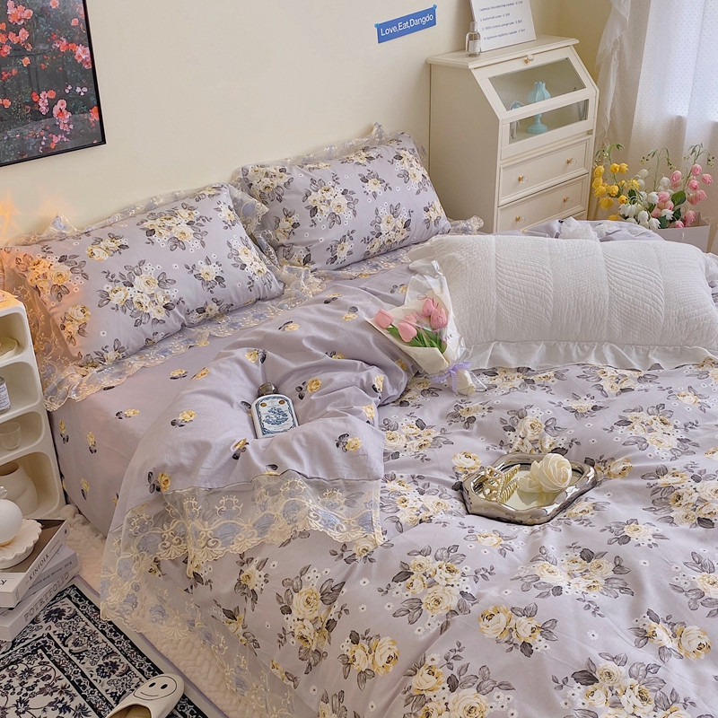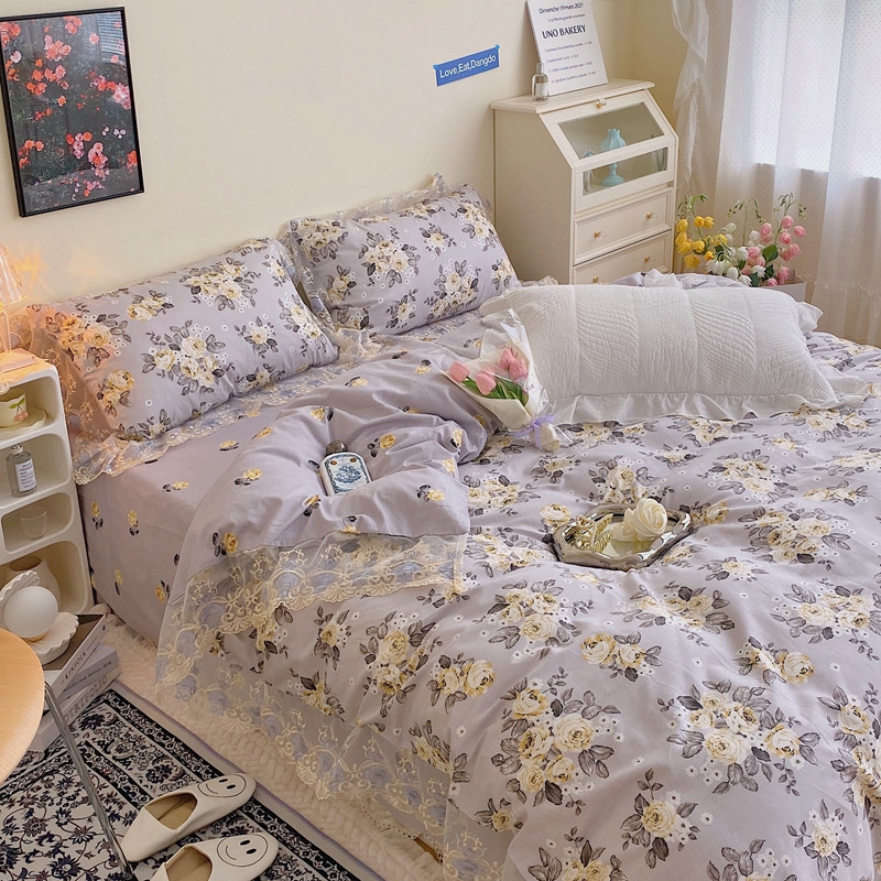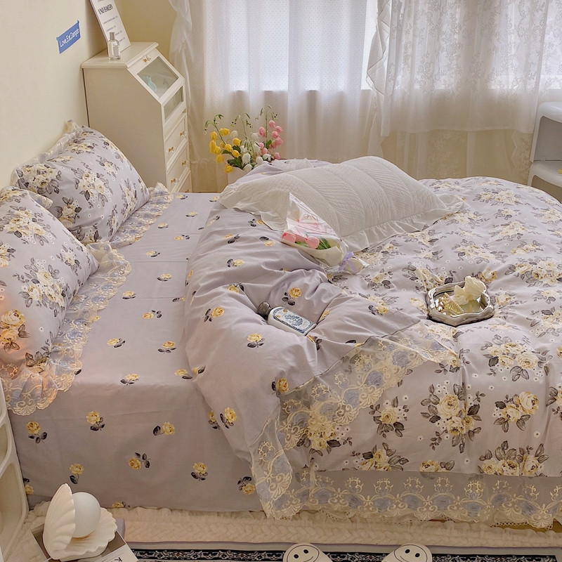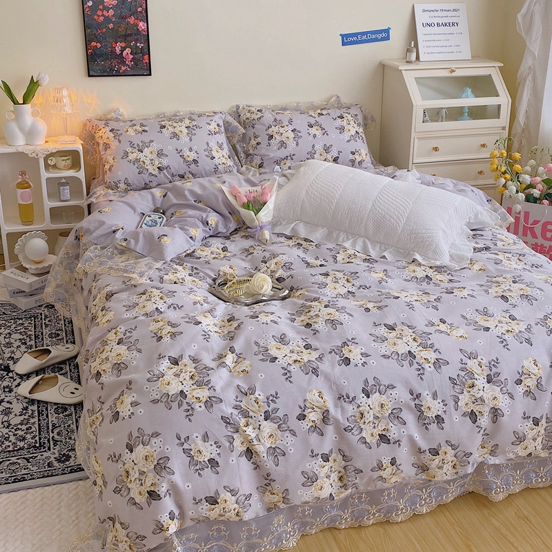 顾里202140支13372复古韩风蕾丝大花边全棉四件套花池