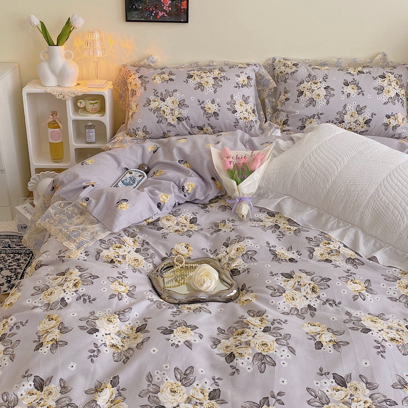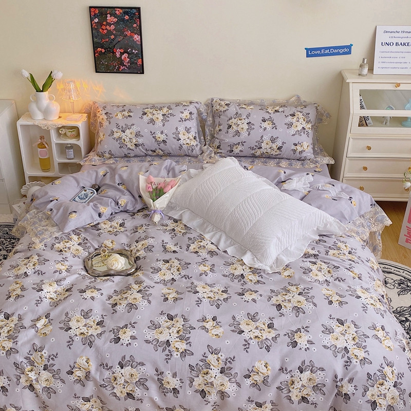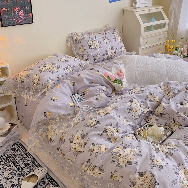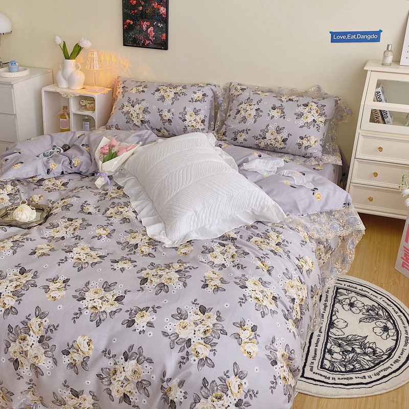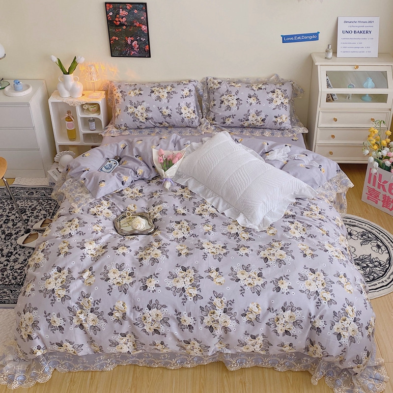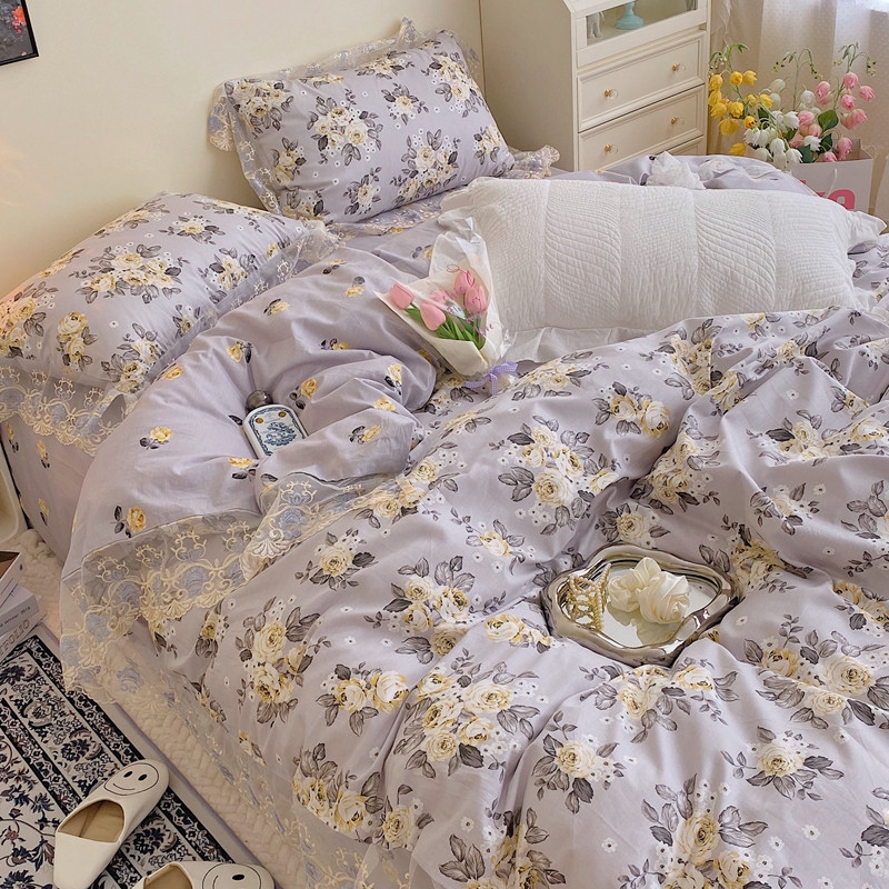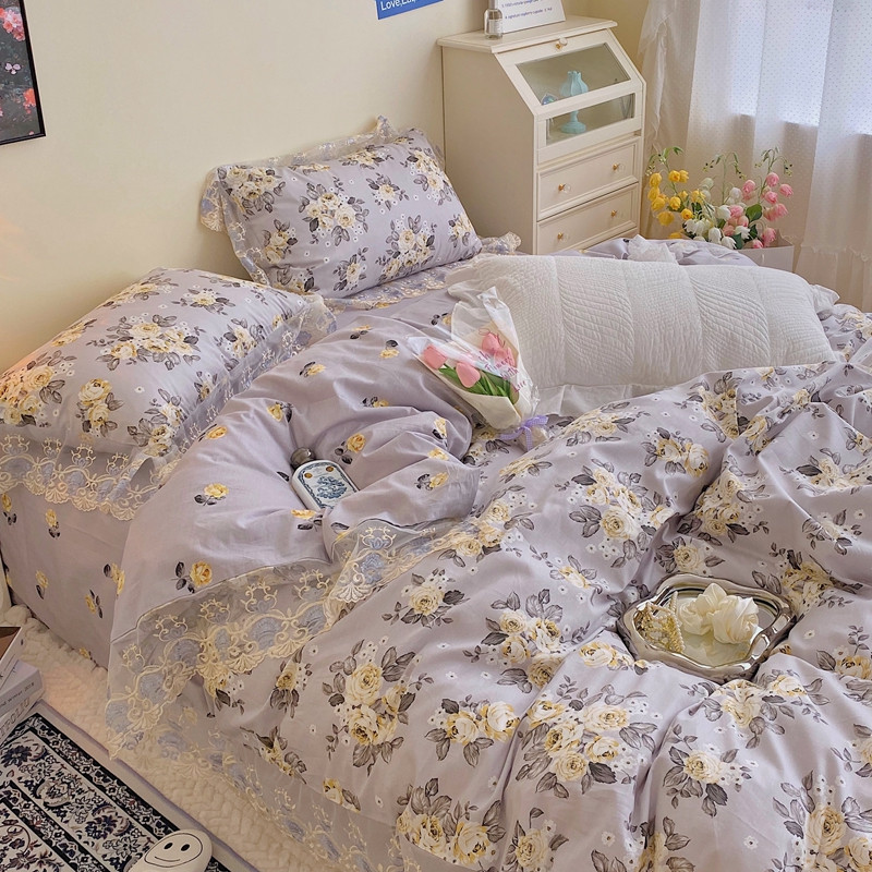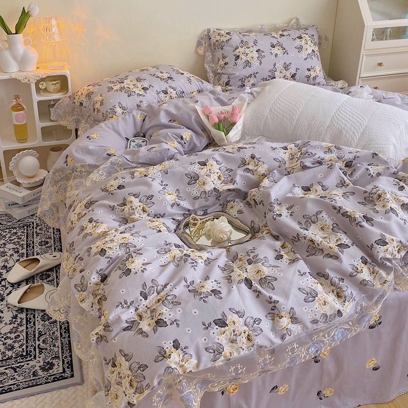 顾里202140支13372复古韩风蕾丝大花边全棉四件套花池
