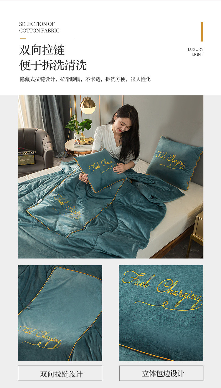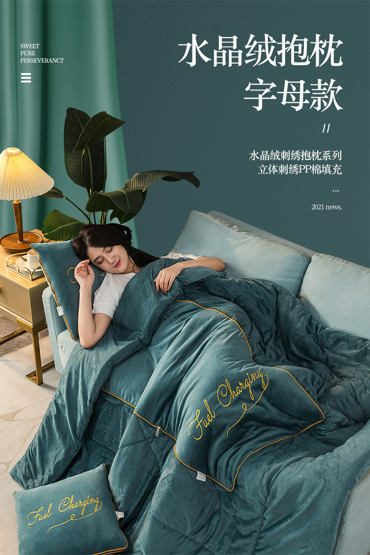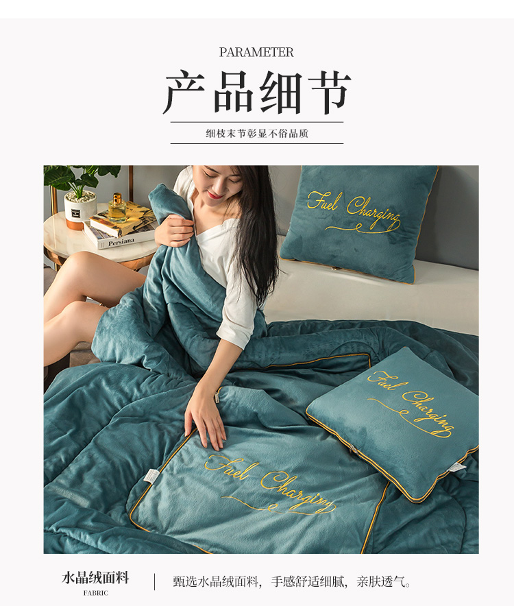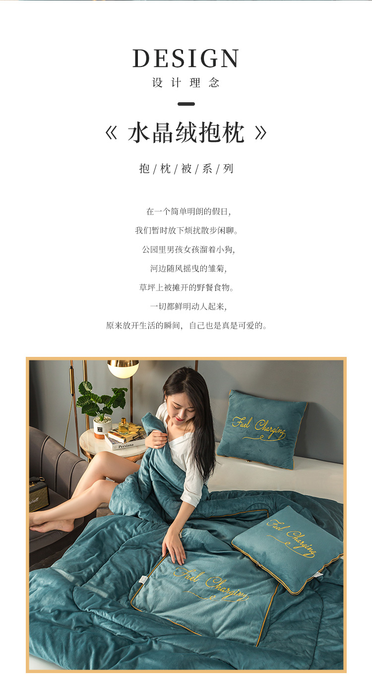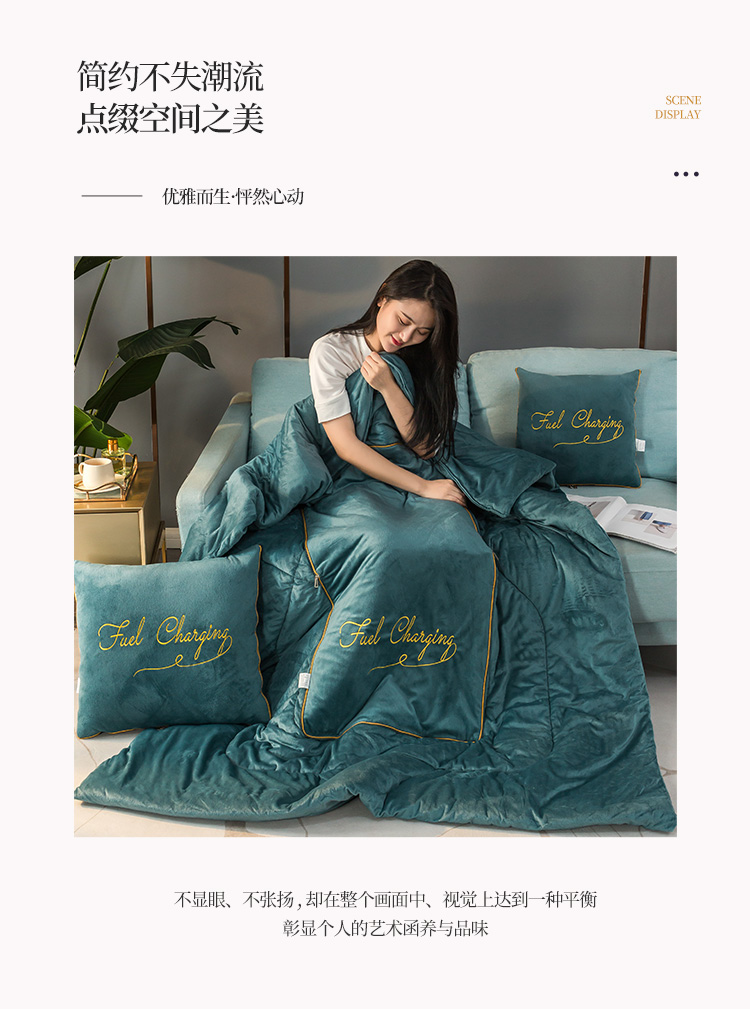 (总)照世家纺 2025新款牛奶绒简约复古款抱枕被,草绿,淡粉,千代紫,深灰,深蓝,天兰,香芋紫,杏粉