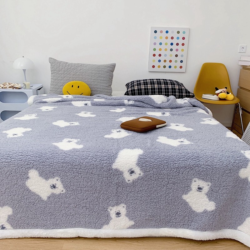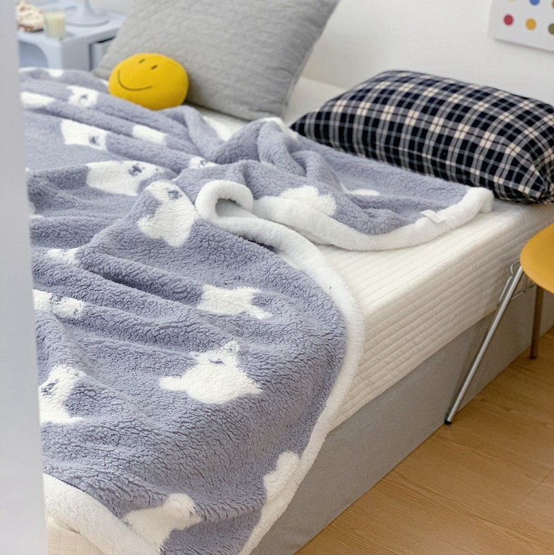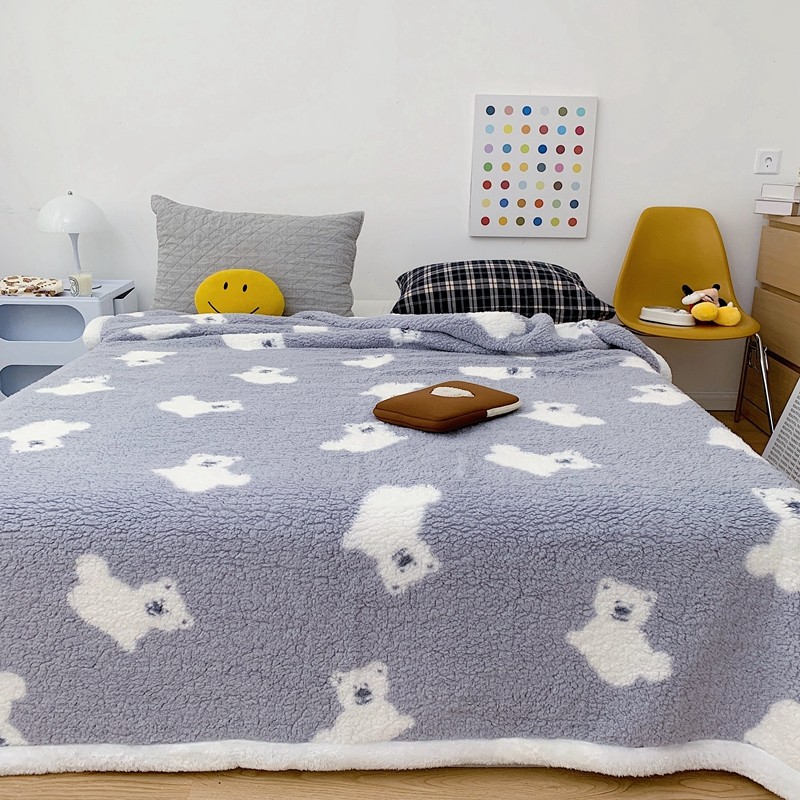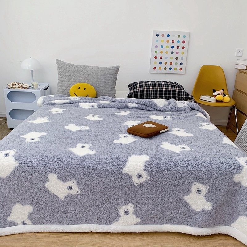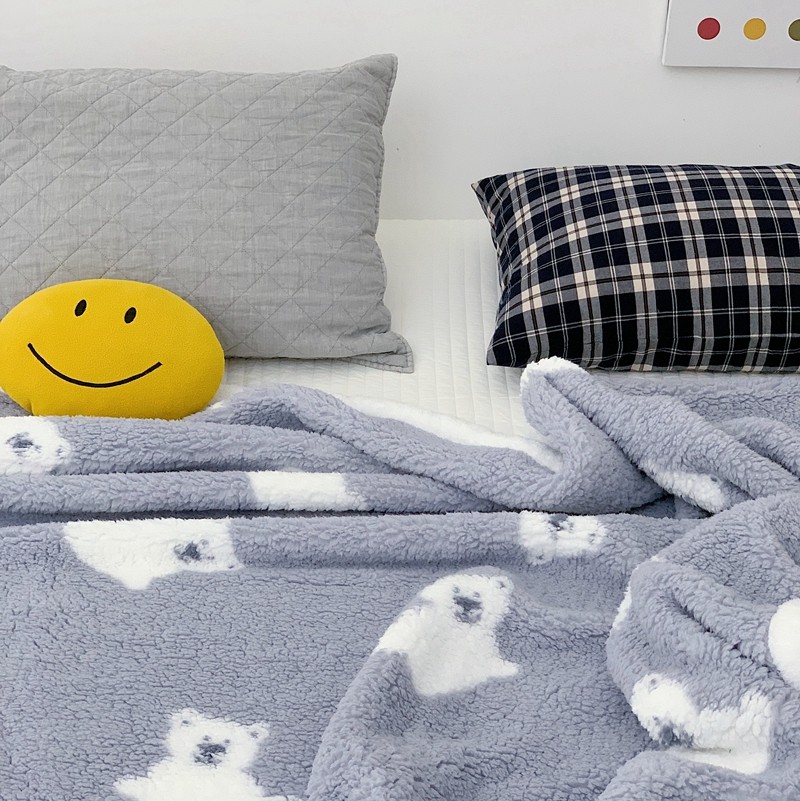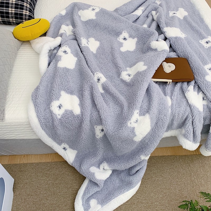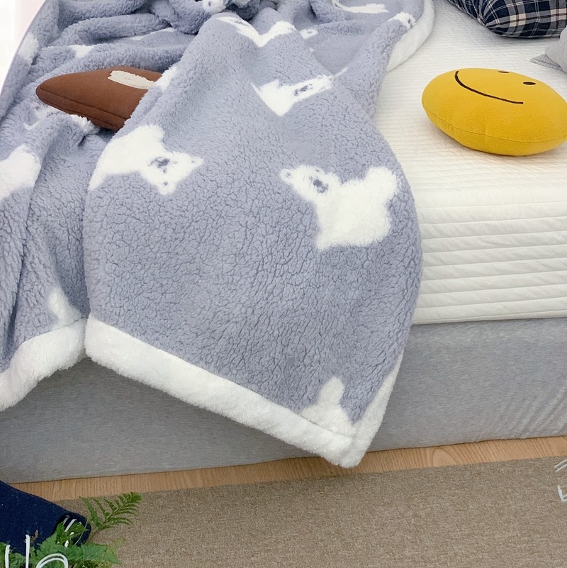 商品名称:昔可家纺 2021新款羊羔泰迪绒印花毛毯-第二组图 灰底白熊