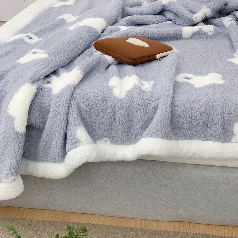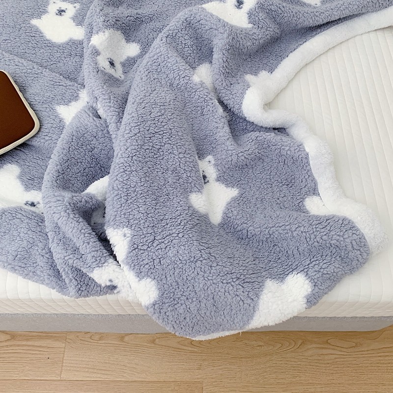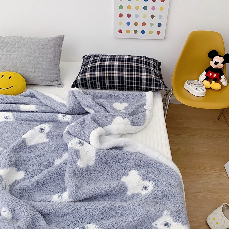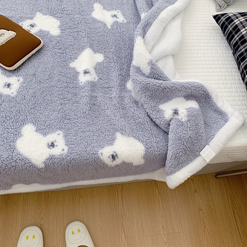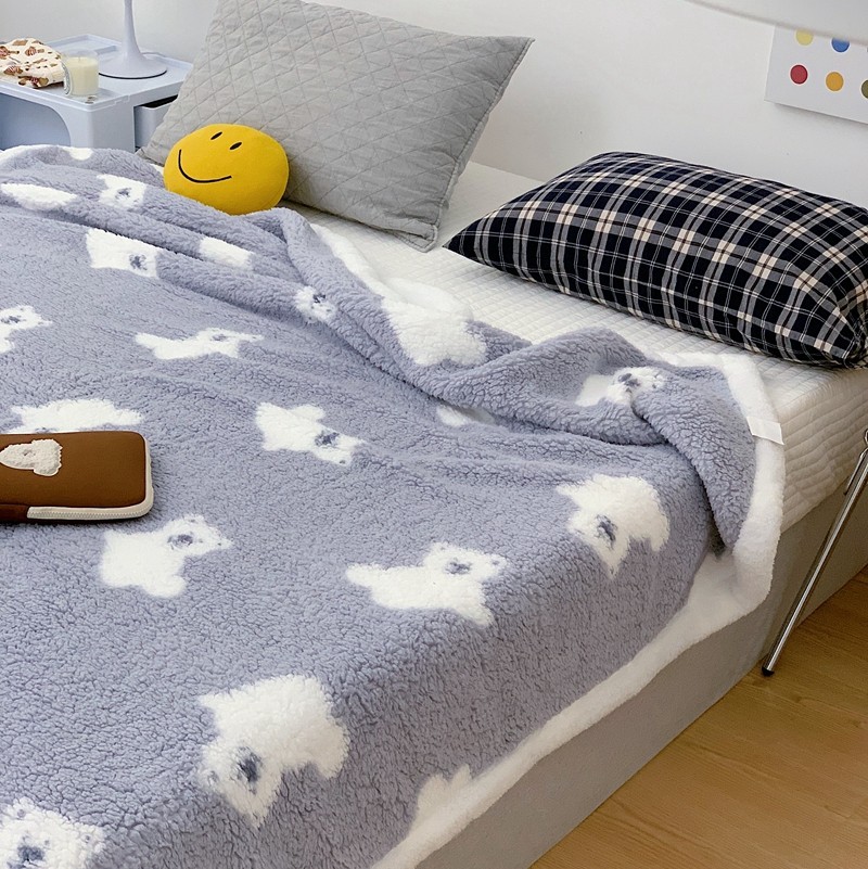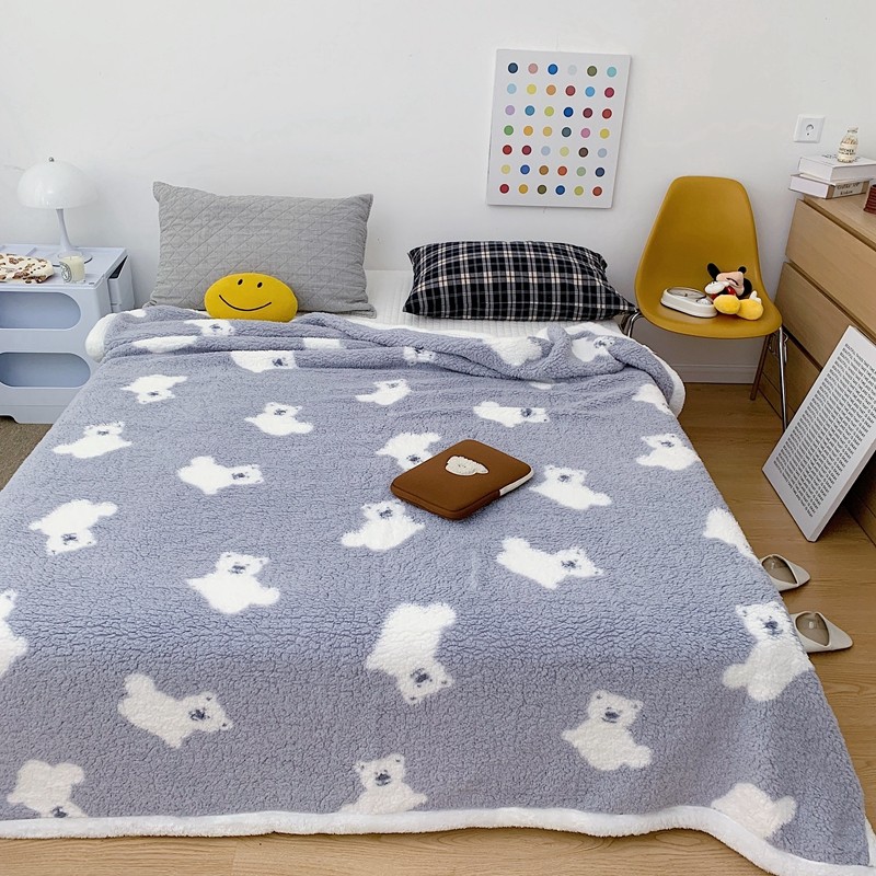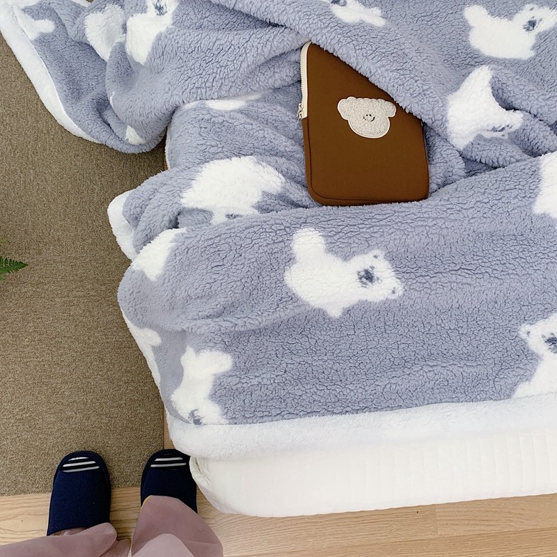 商品名称:昔可家纺 2021新款羊羔泰迪绒印花毛毯-第二组图 灰底白熊