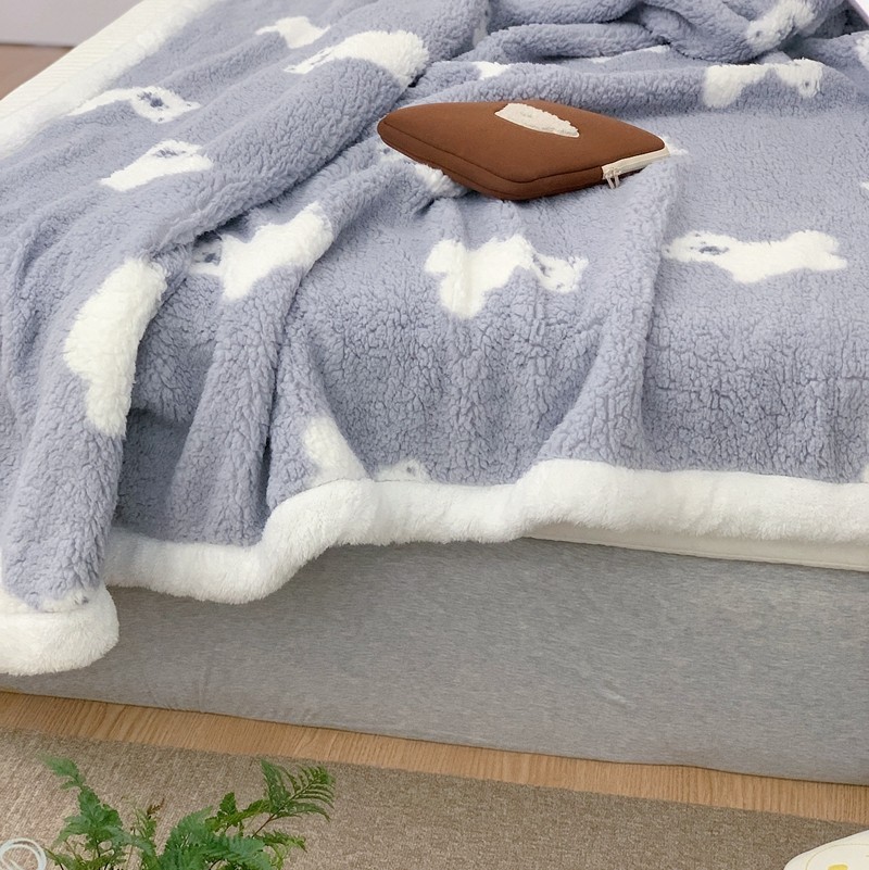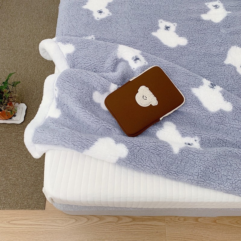 昔可家纺 2021新款羊羔泰迪绒印花毛毯-第二组图 灰底白熊