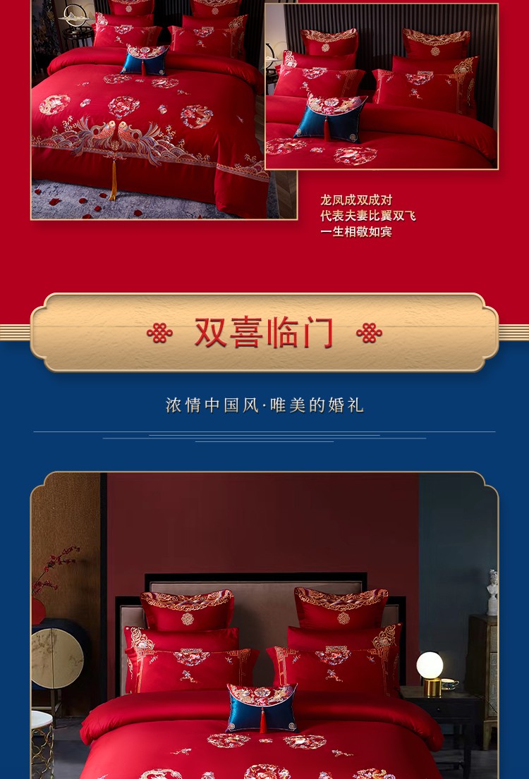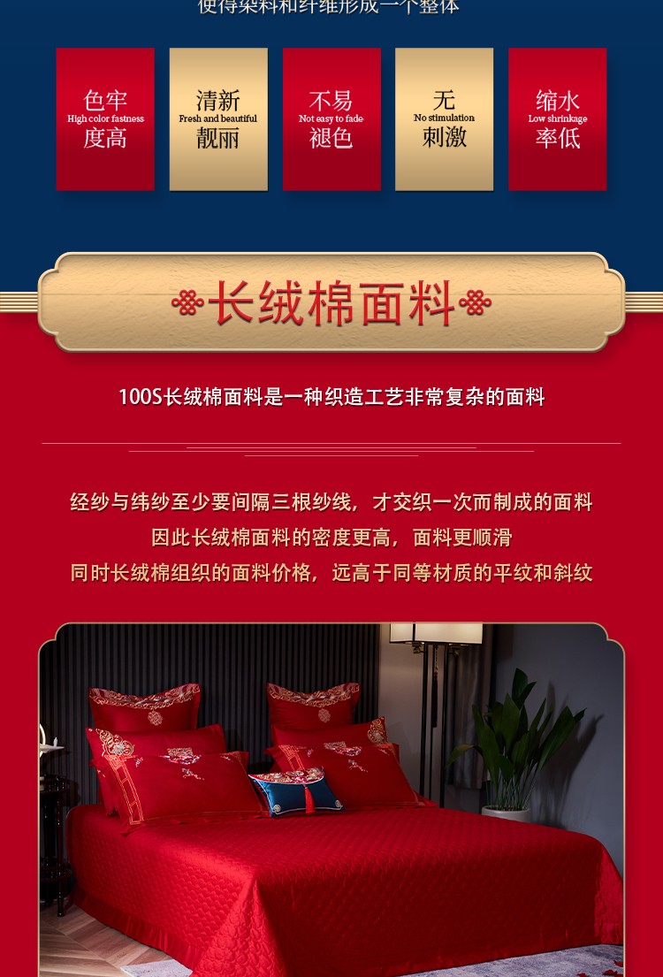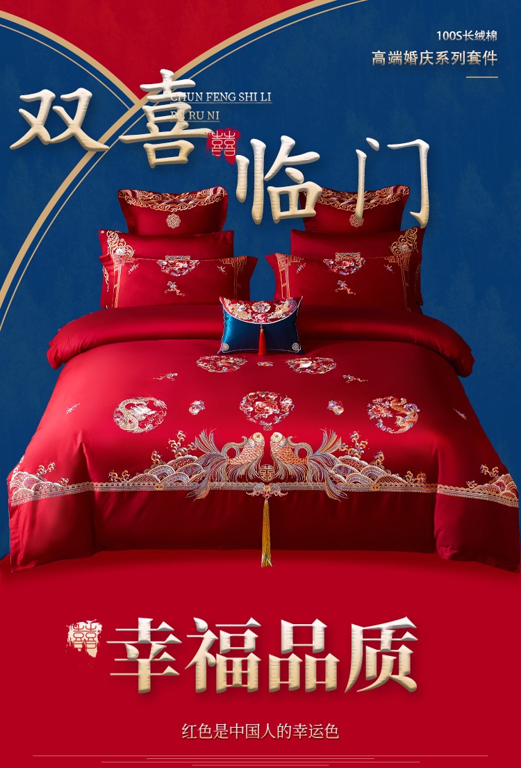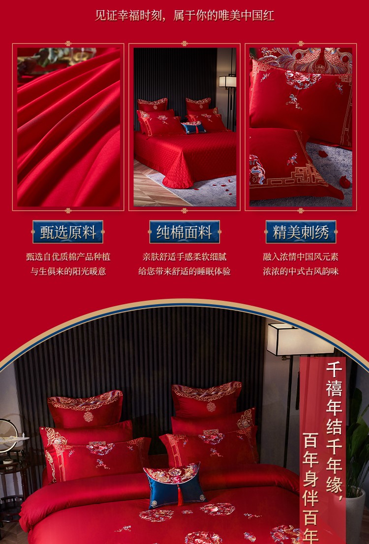 当前位置: 91家纺网 > 商品网购 > 床品套件 > 四件套 > 长绒棉四件套 > 用心家居2021新款长绒棉婚庆刺绣四件套双喜临门