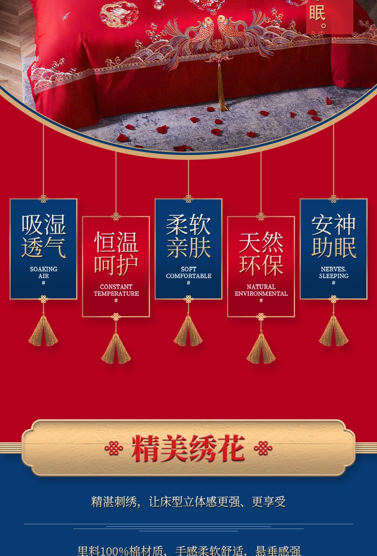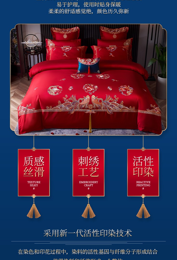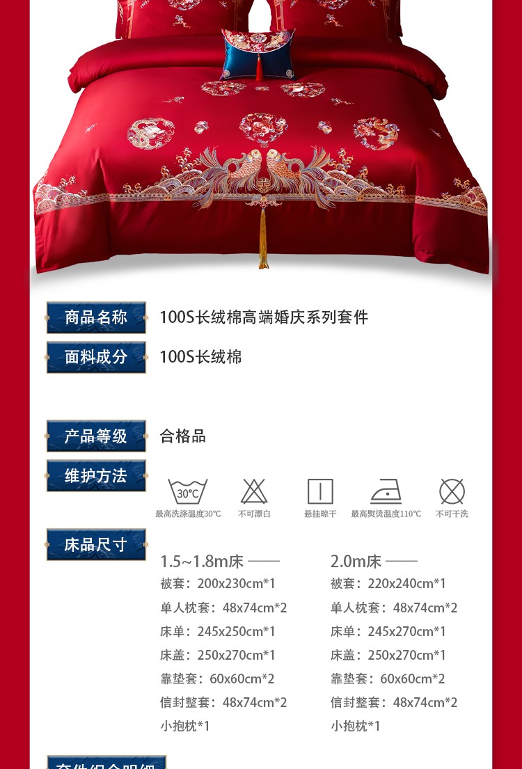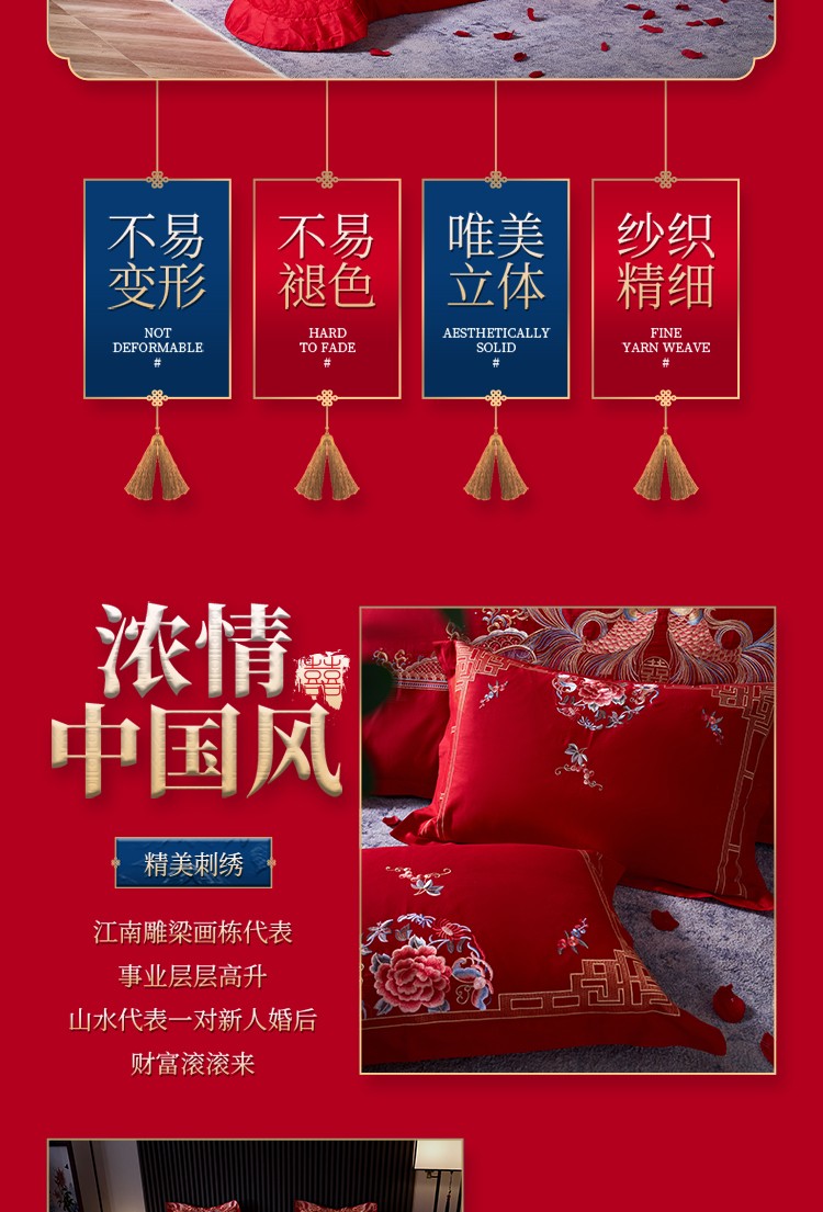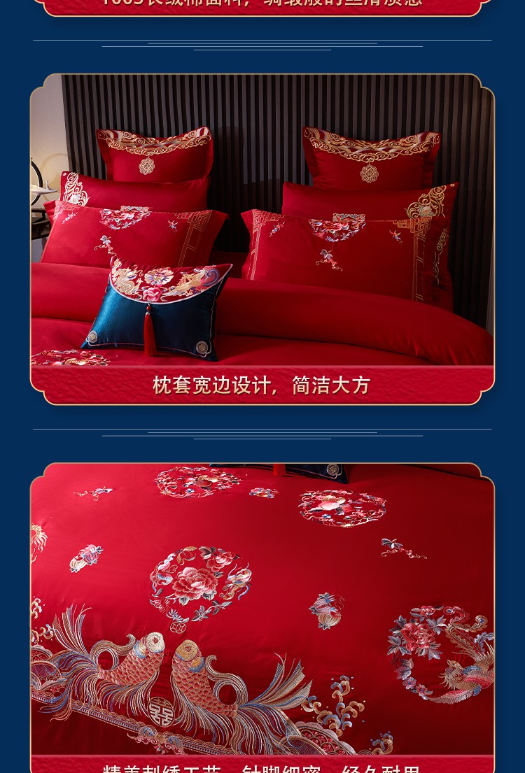 当前位置: 91家纺网 > 商品网购 > 床品套件 > 四件套 > 长绒棉四件套 > 用心家居2021新款长绒棉婚庆刺绣四件套双喜临门