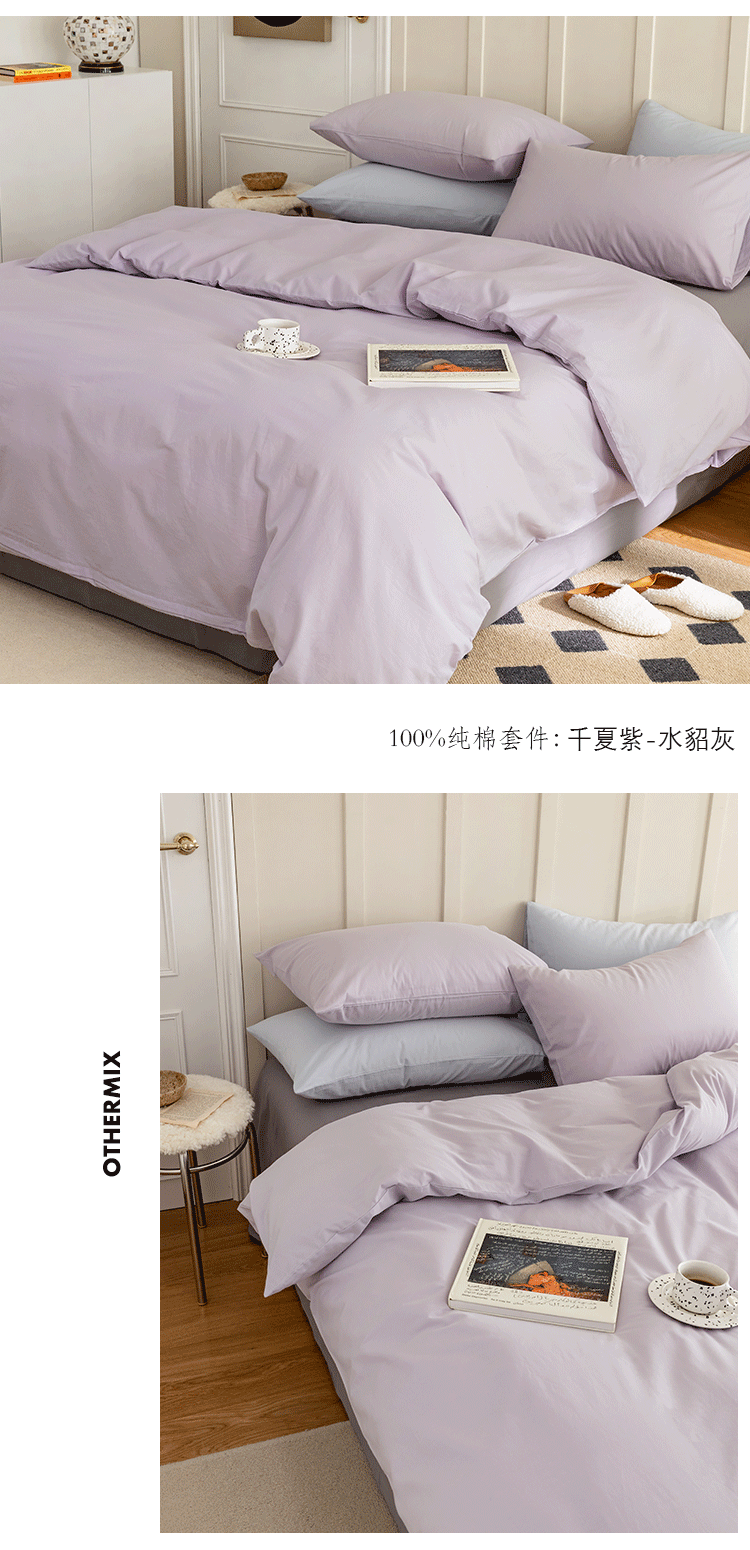 (总)Mr.pig猪先生水洗棉 2026新款简约全棉四件套系列(展示价格为控价,实际价格请联系客服),水墨气质灰,简禾电光蓝,简禾珀尔粉,简禾清水绿,梦想月季烟紫,梦想月季优雅粉,水墨烟灰