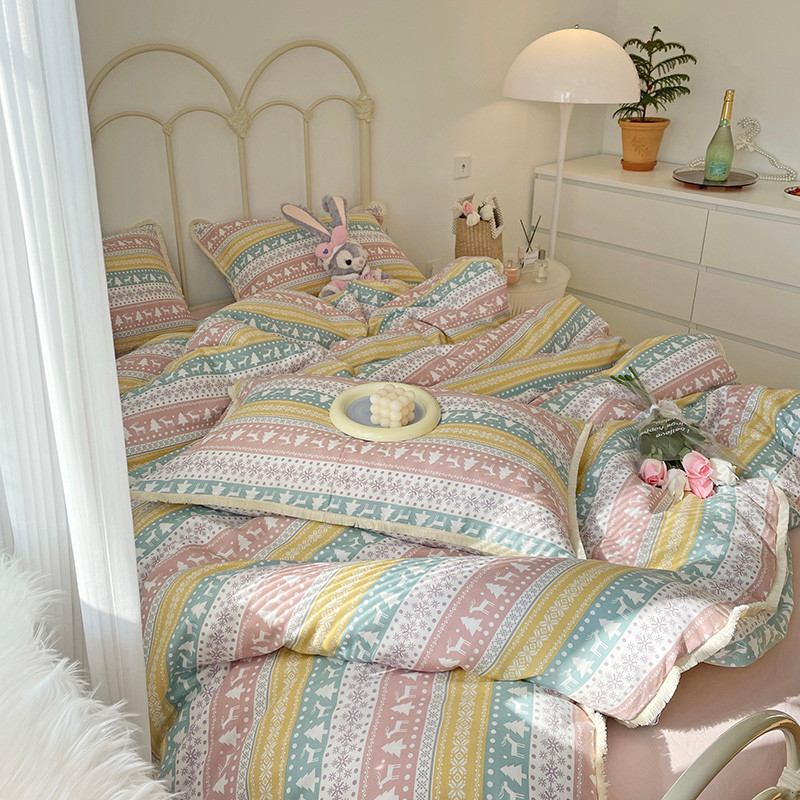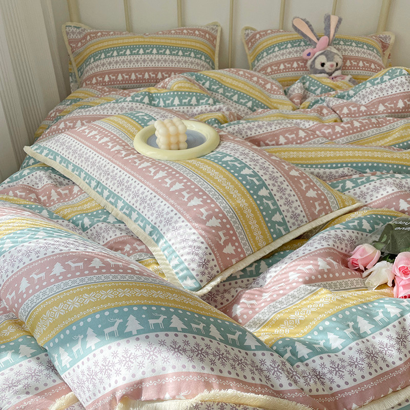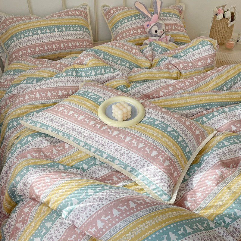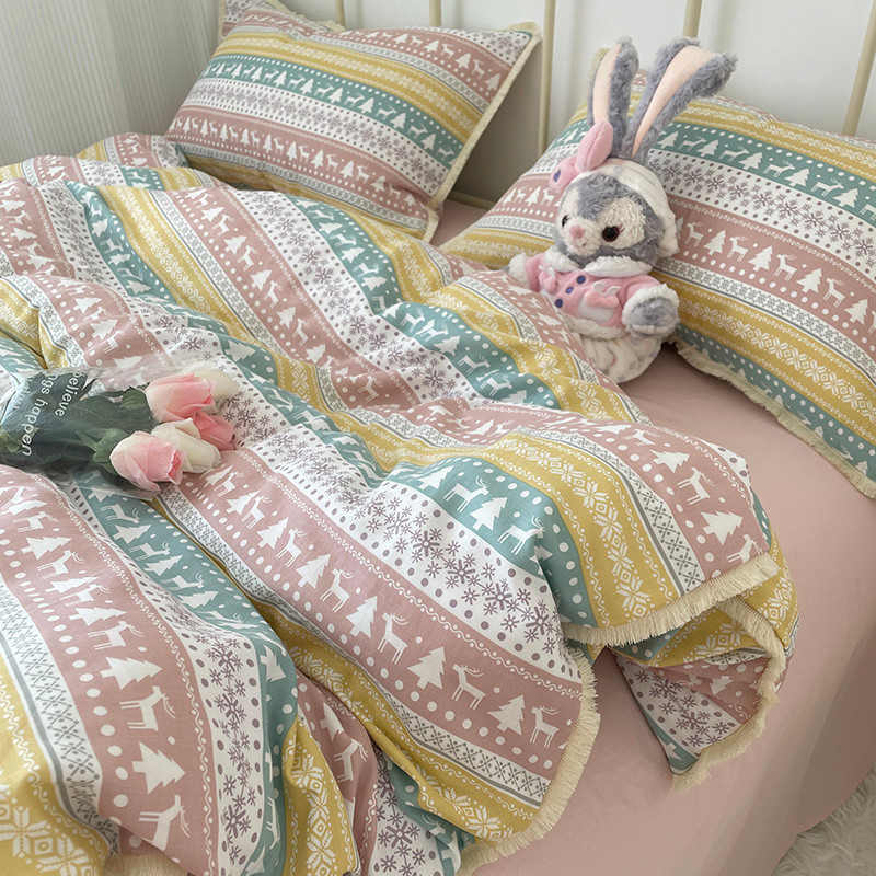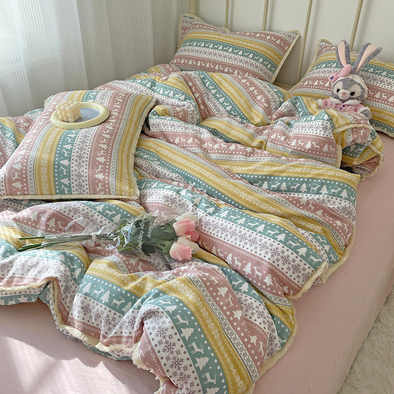 千朵 2022新款全棉双层纱布四件套 圣诞小鹿
