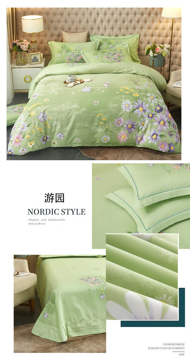 金纱玉纺 2022新款全棉大版印花13372四件套 游园