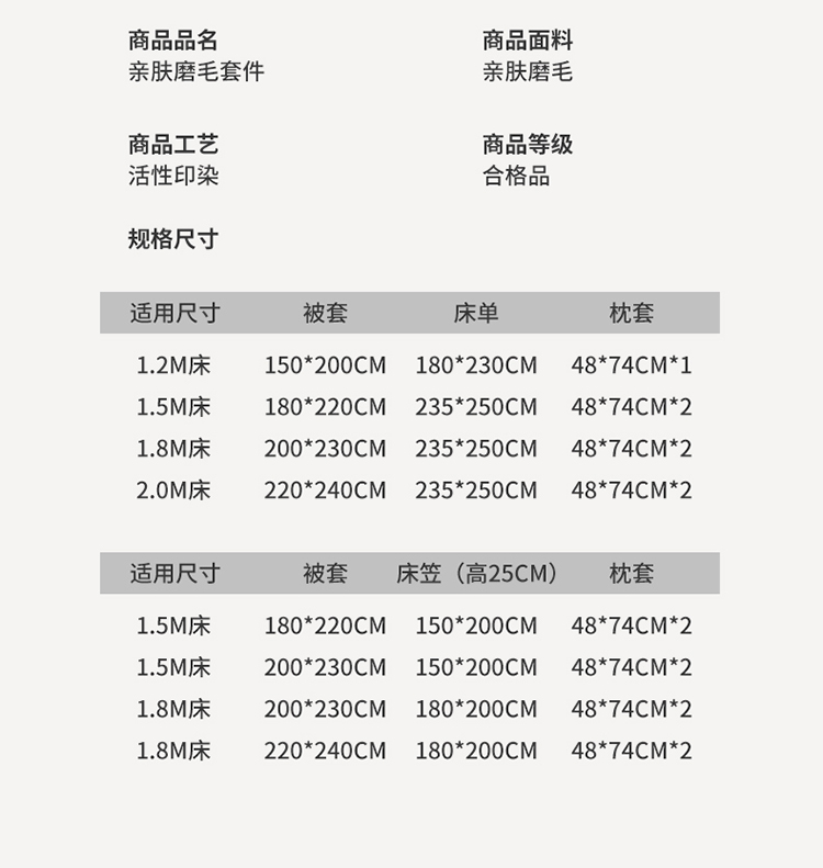 1.8m床笠四件套(被套200x230) | ¥65.00 |