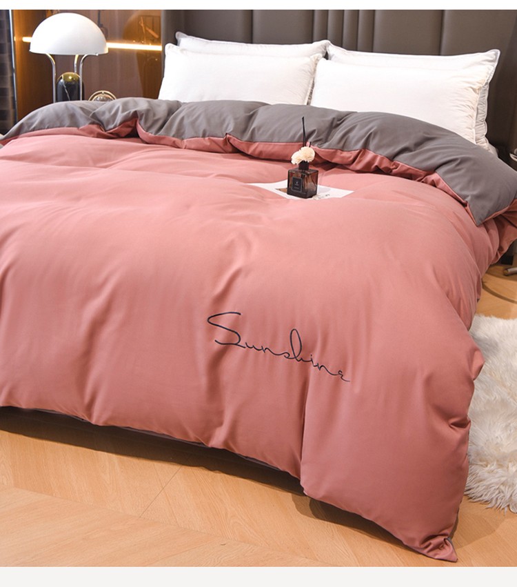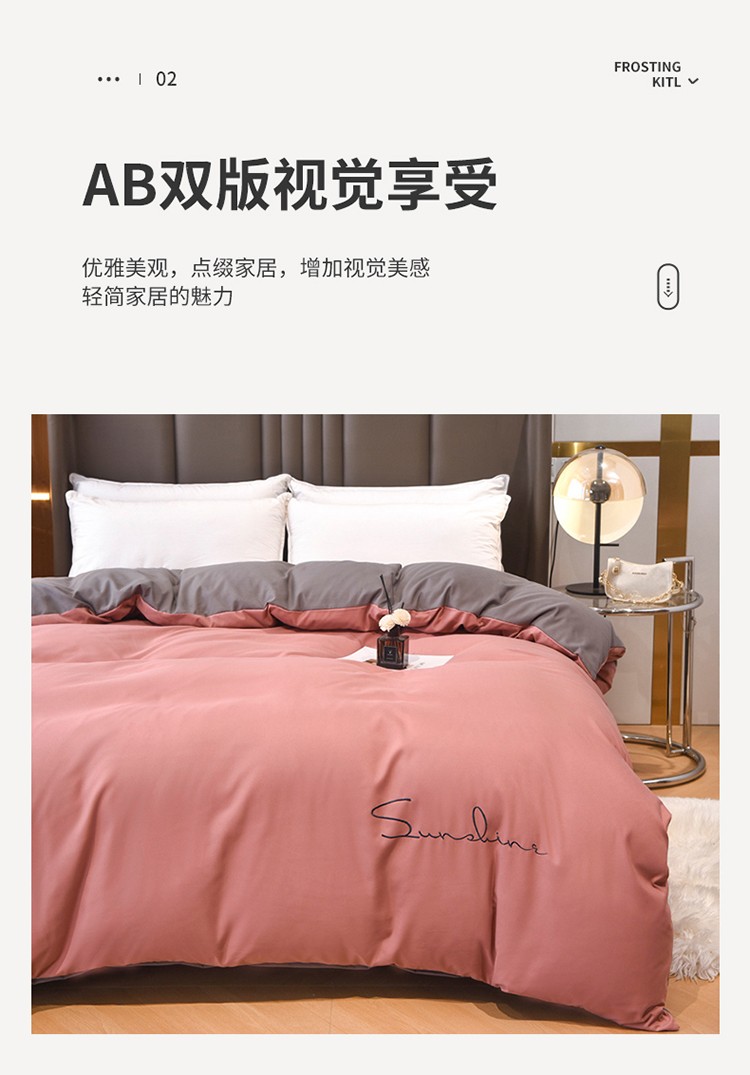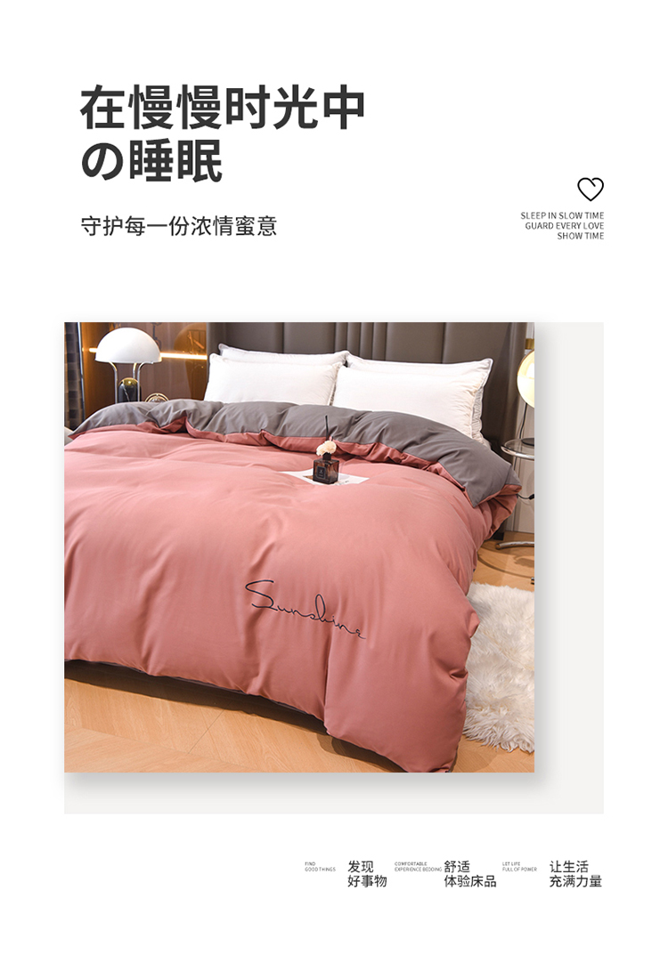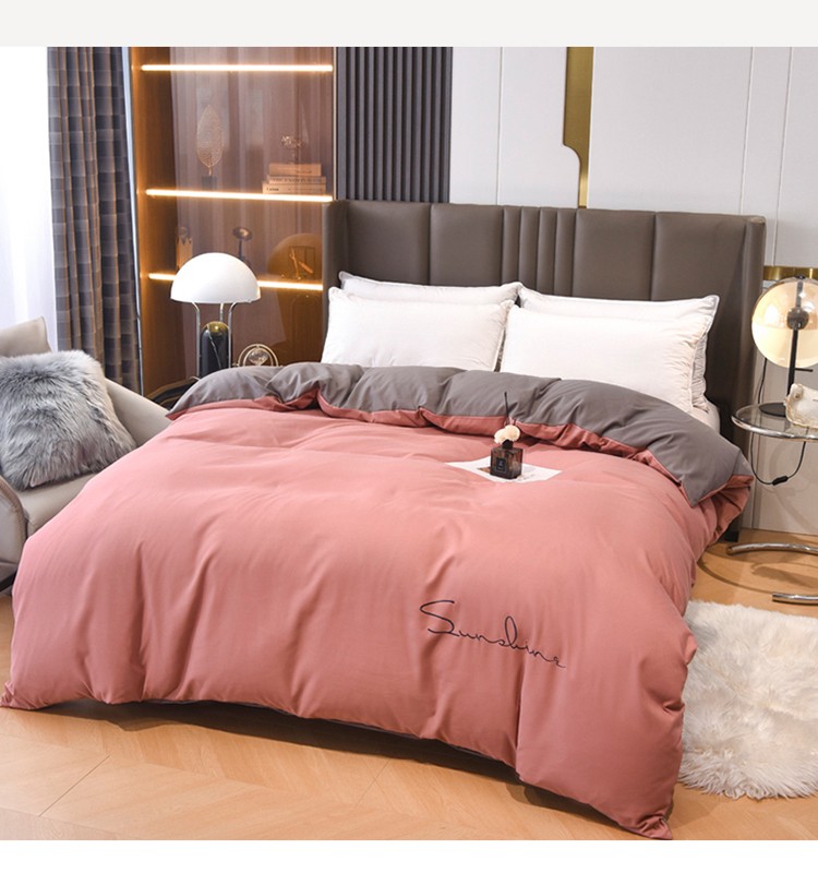 七仙女家纺 2025新款亲肤磨毛绣花款单被套直播供货 豆沙+浅灰