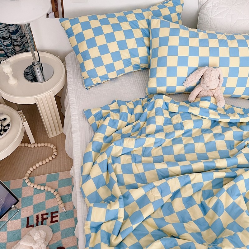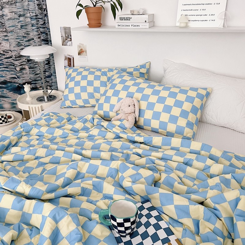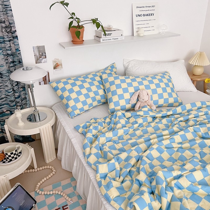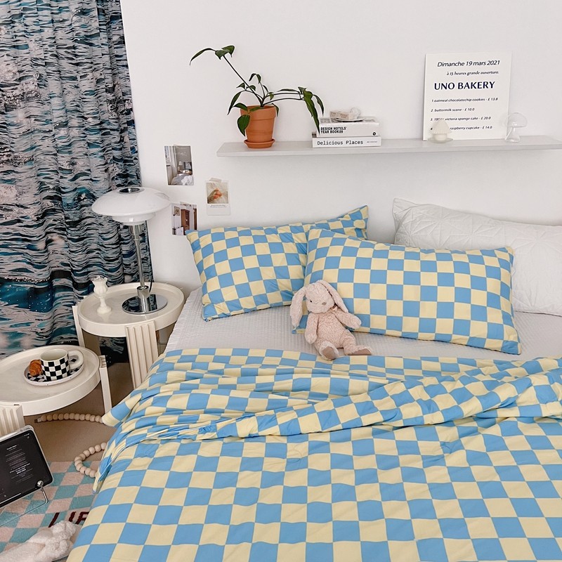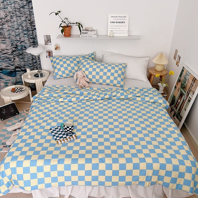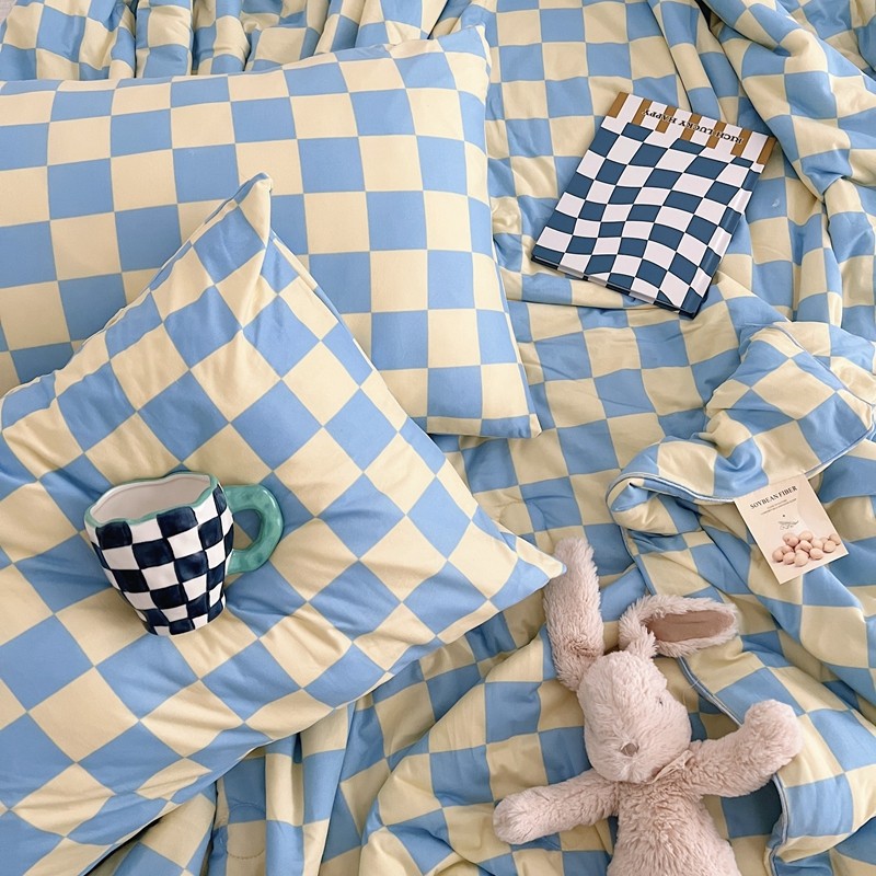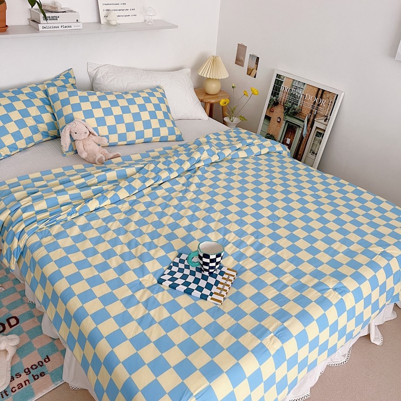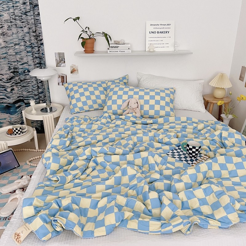 星期八 2022新款棋盘格针织棉夏被 蓝黄格