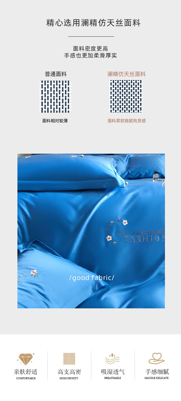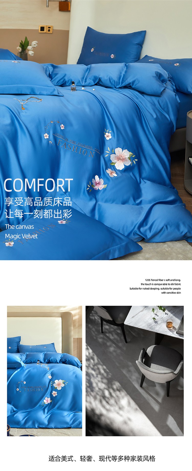 (总)凡客家居 2024新款高克重牛奶绒绣花拼角四件套,海洋蓝,奶油咖,深卡其,樱花粉