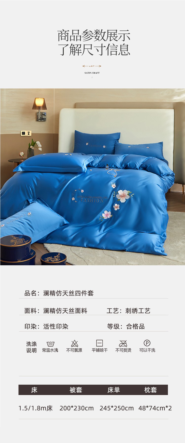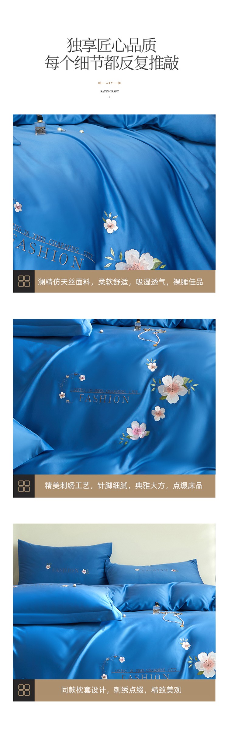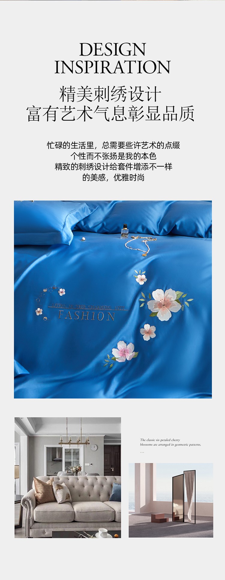 商品名称:凡客 2022新款水洗真丝绣花陌上花开系列 陌上花开-宾利蓝