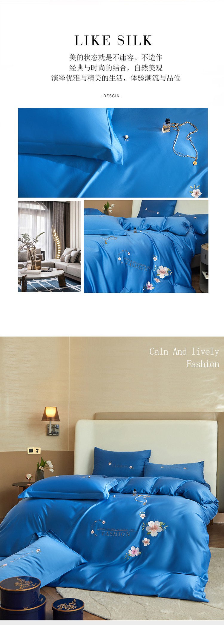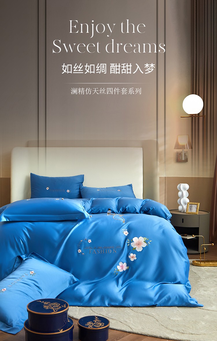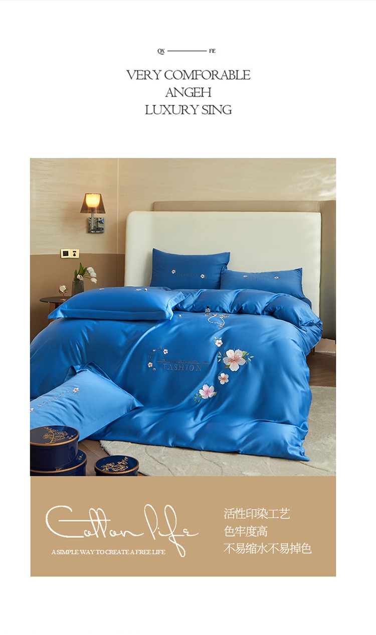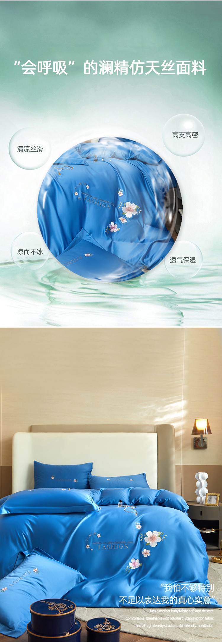 商品名称:凡客 2022新款水洗真丝绣花陌上花开系列 陌上花开-宾利蓝