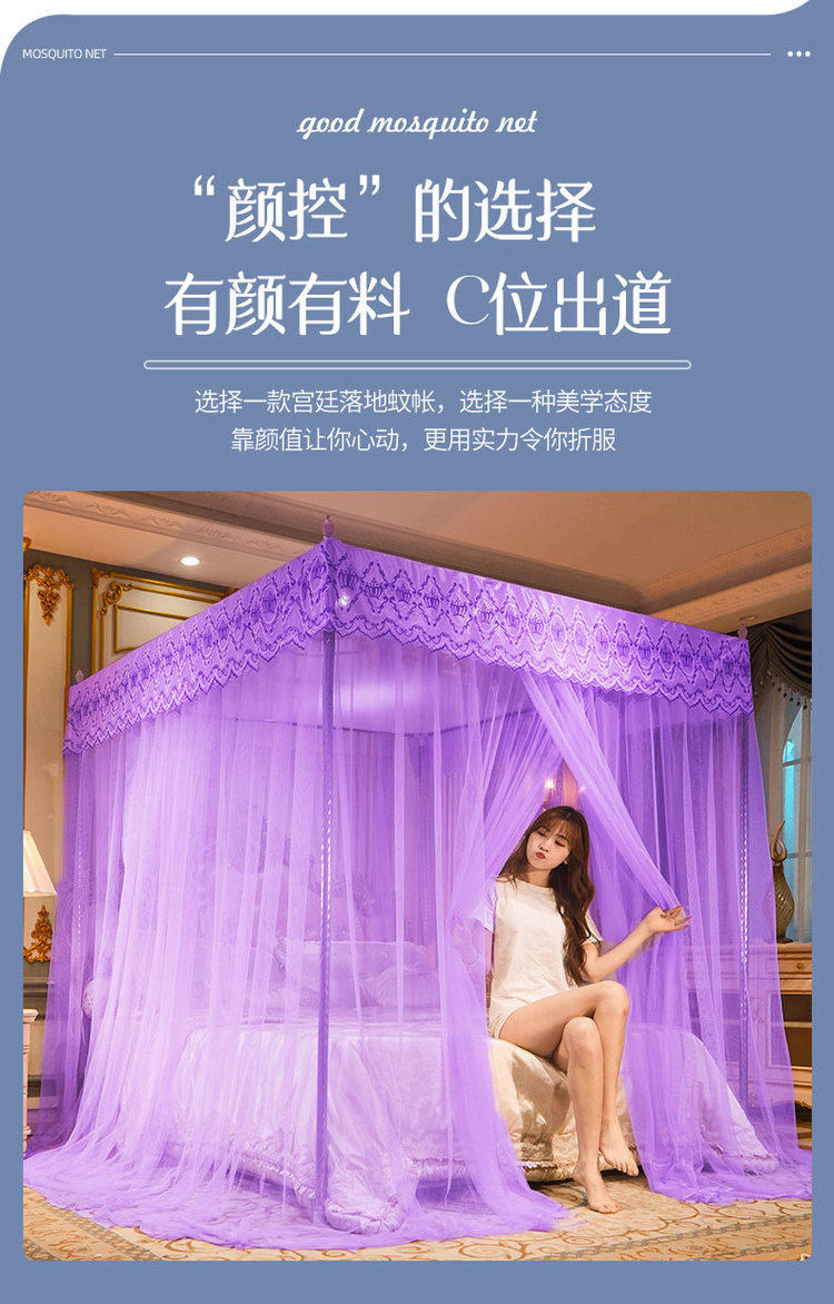 当前位置: 91家纺网 > 商品网购 > 床上用品 > 蚊帐 > 宫廷蚊帐 > 冉美家纺 2022新款宫廷蚊帐-幻彩系列 紫色