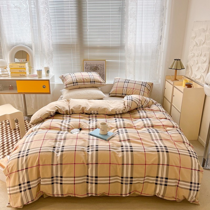 (总)昔可 2023新款全棉ins格子混搭系列四件套,ins简约绿格,粉蓝格,开心果格,学院格纹,粉绿格,海盐兰格,黄绿格,夏日蓝条,芝士黄条,紫芋泥芝士格