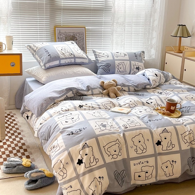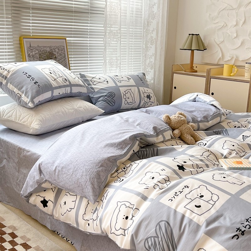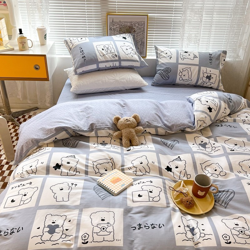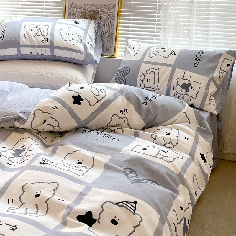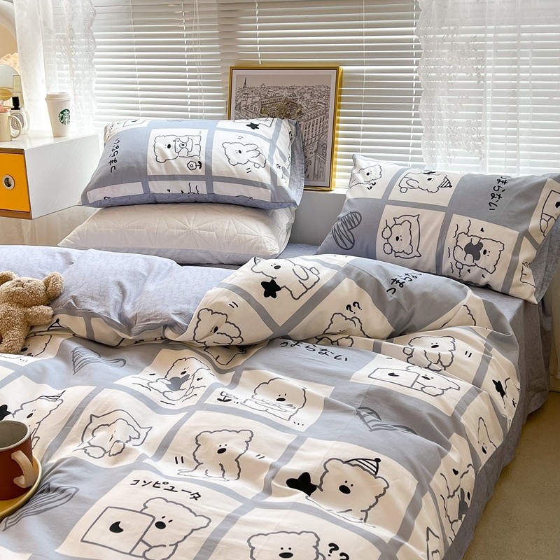 昔可2022新款印花全棉四件套跑量款 日常小熊 灰