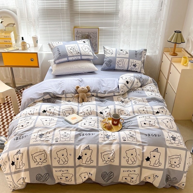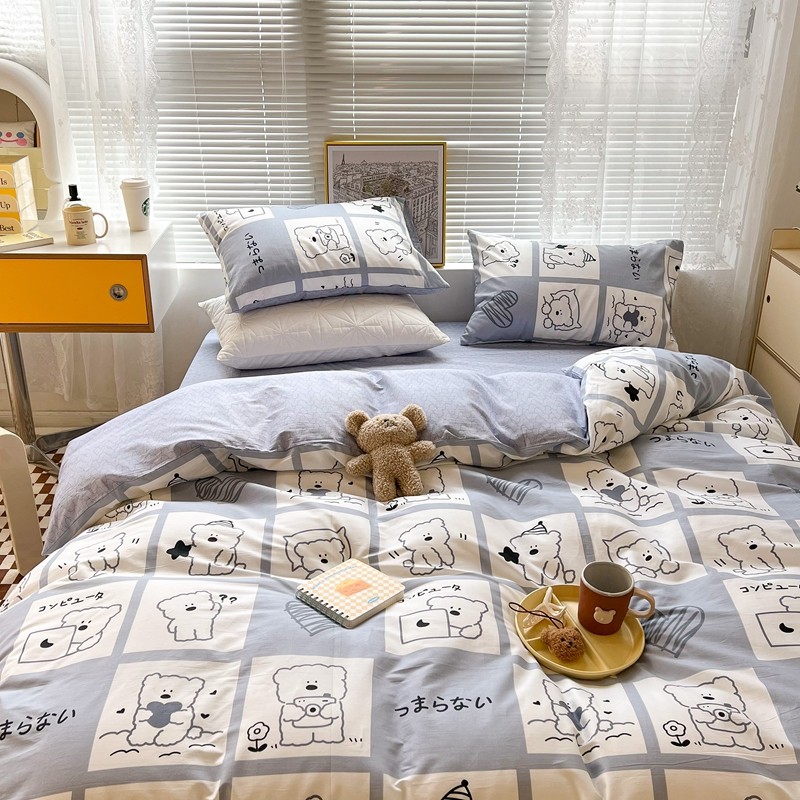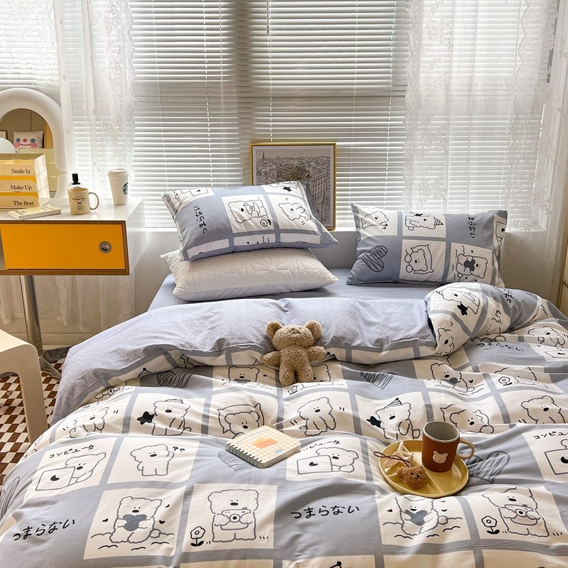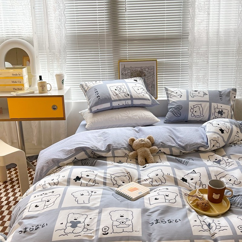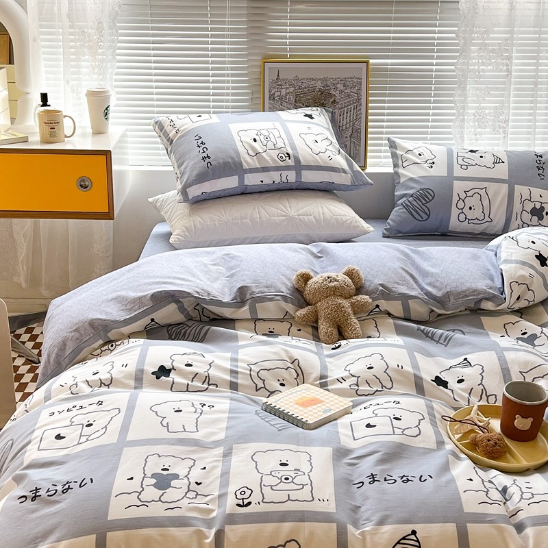 昔可2022新款印花全棉四件套跑量款 日常小熊 灰