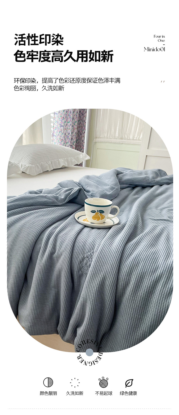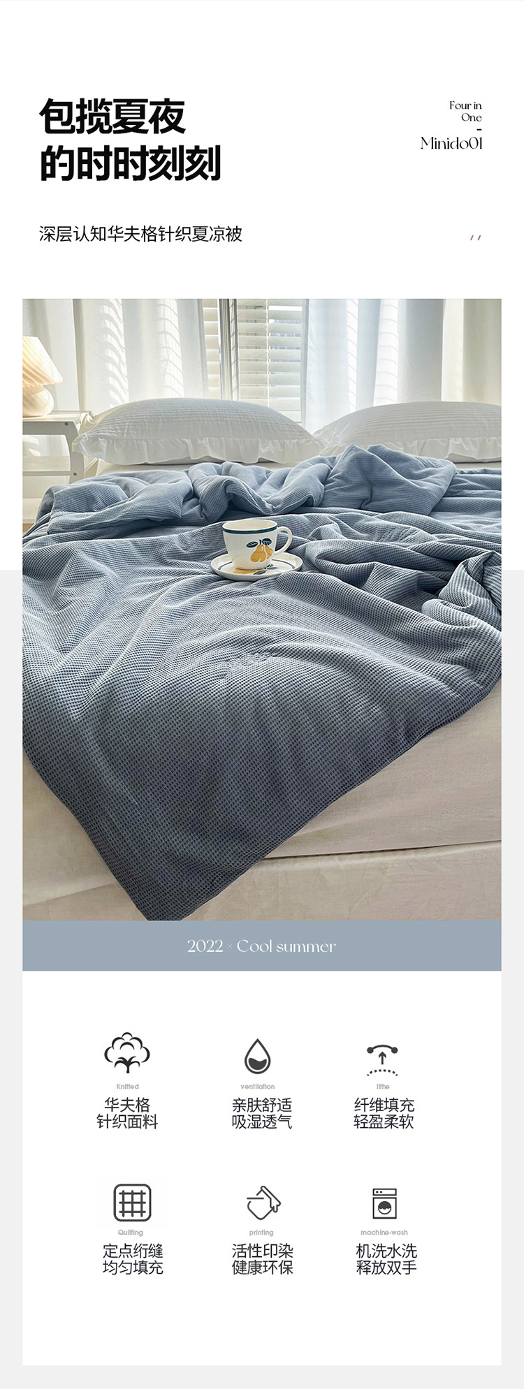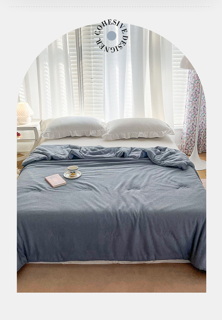 珺柔家纺 2023新款针织华夫格夏被 雾霾蓝
