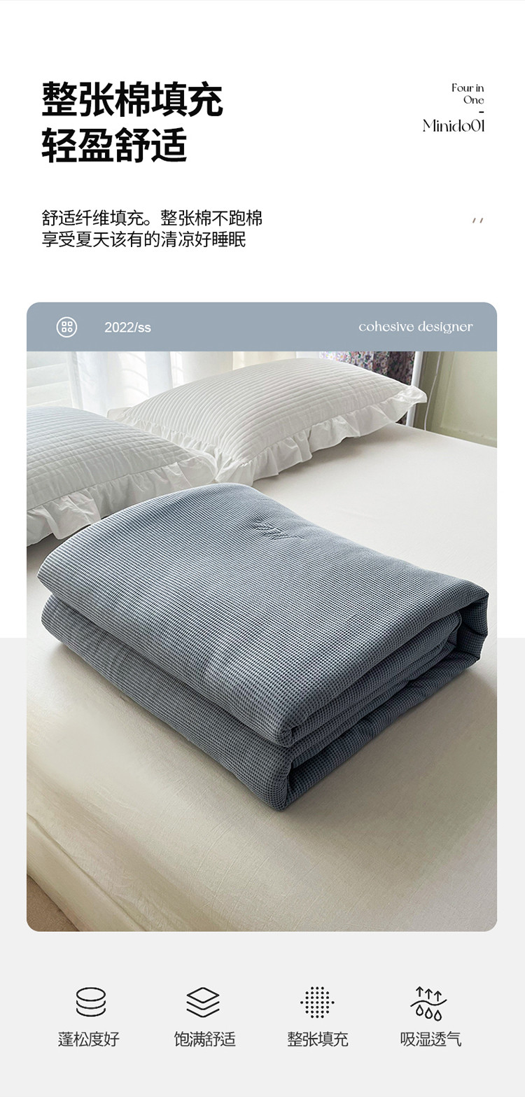 (总)珺柔家纺 2023新款针织华夫格夏被,白色,粉玉,金色,浅咖,水绿,雾霾蓝