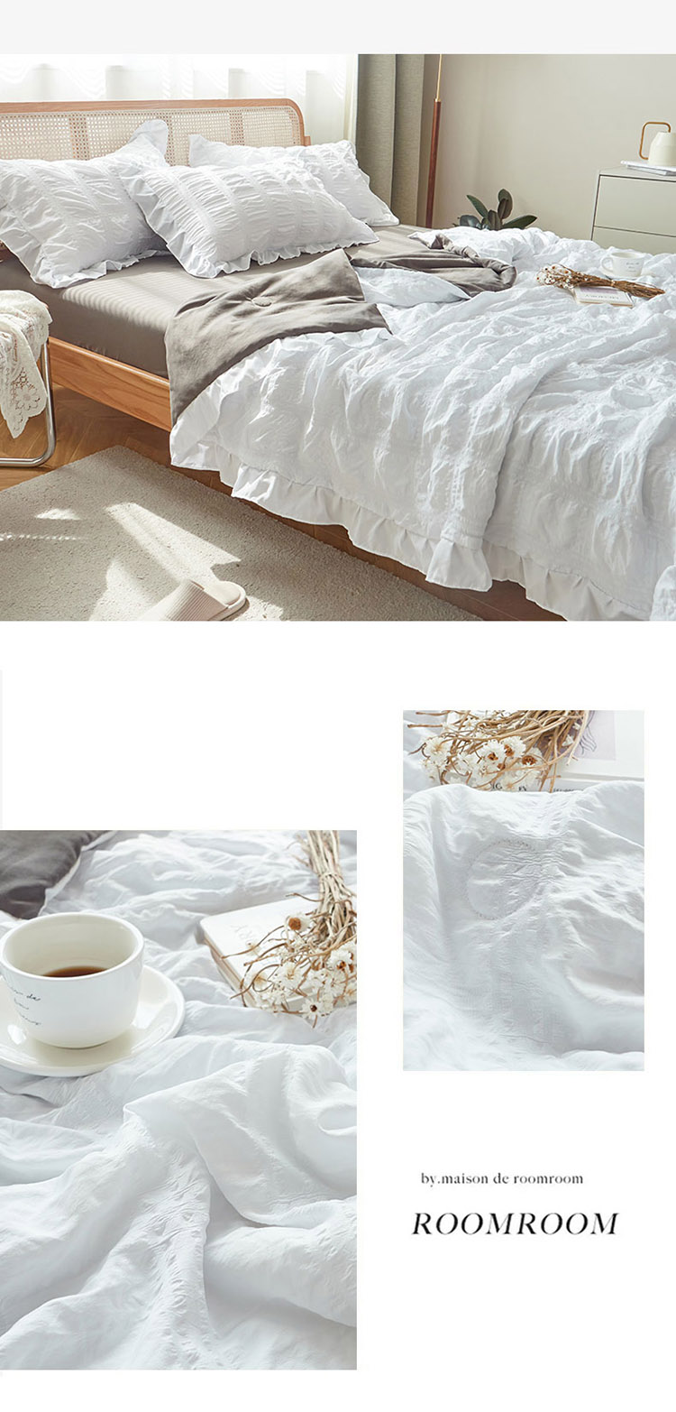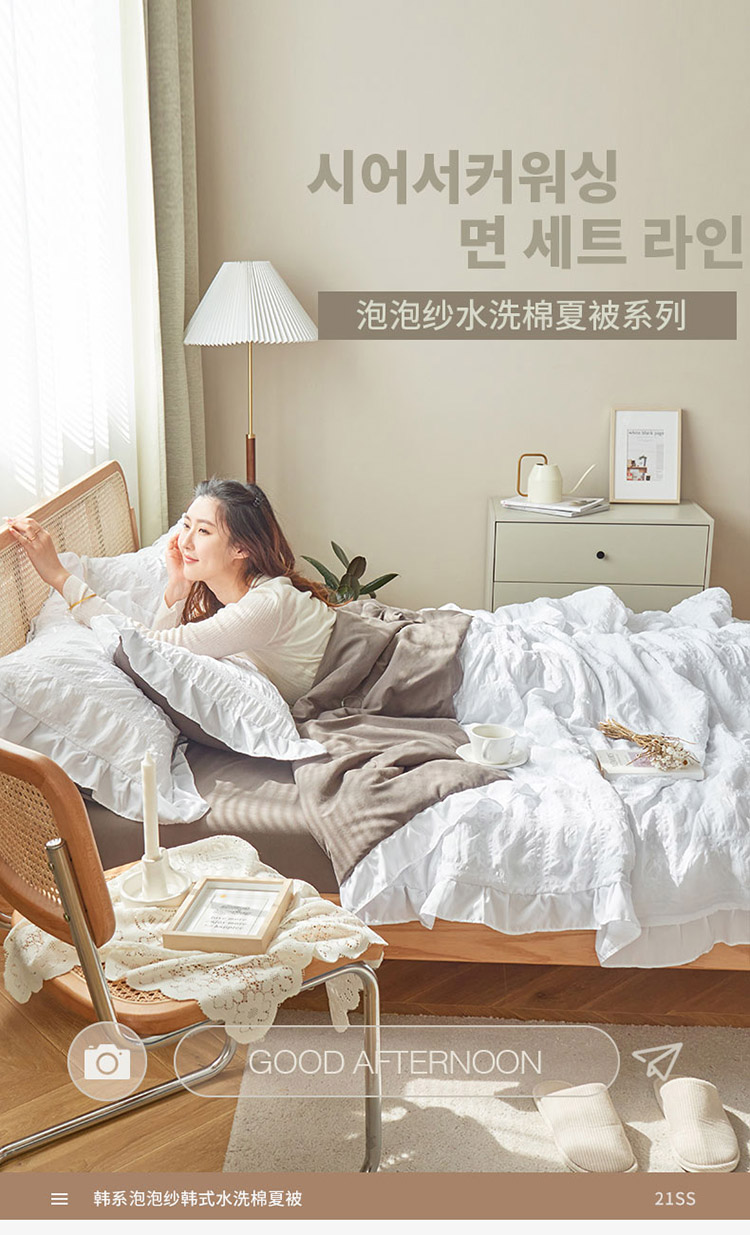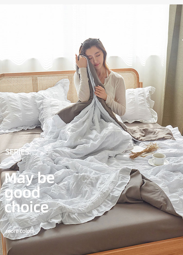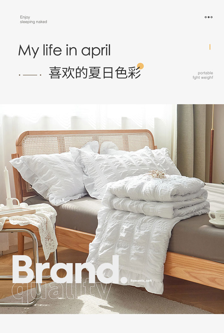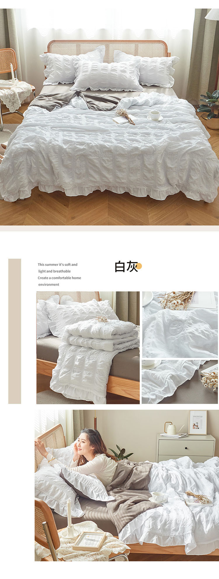 当前位置: 91家纺网 > 商品网购 > 床品套件 > 四件套 > 夏被四件套 > ab家纺 2023新款水洗棉泡泡纱夏被四件套夏凉被 白灰
