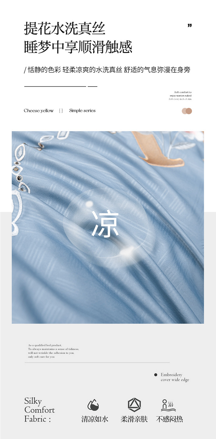 (总)嗯呢家纺 2023新款刺绣H款轻奢提花水洗真丝四件套,提花-宾利蓝,提花-豆沙,提花-高级灰,提花-墨绿,提花-浅灰,提花-时尚桔,提花-雅致绿
