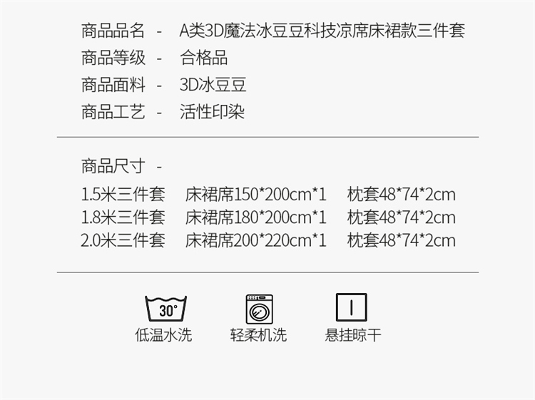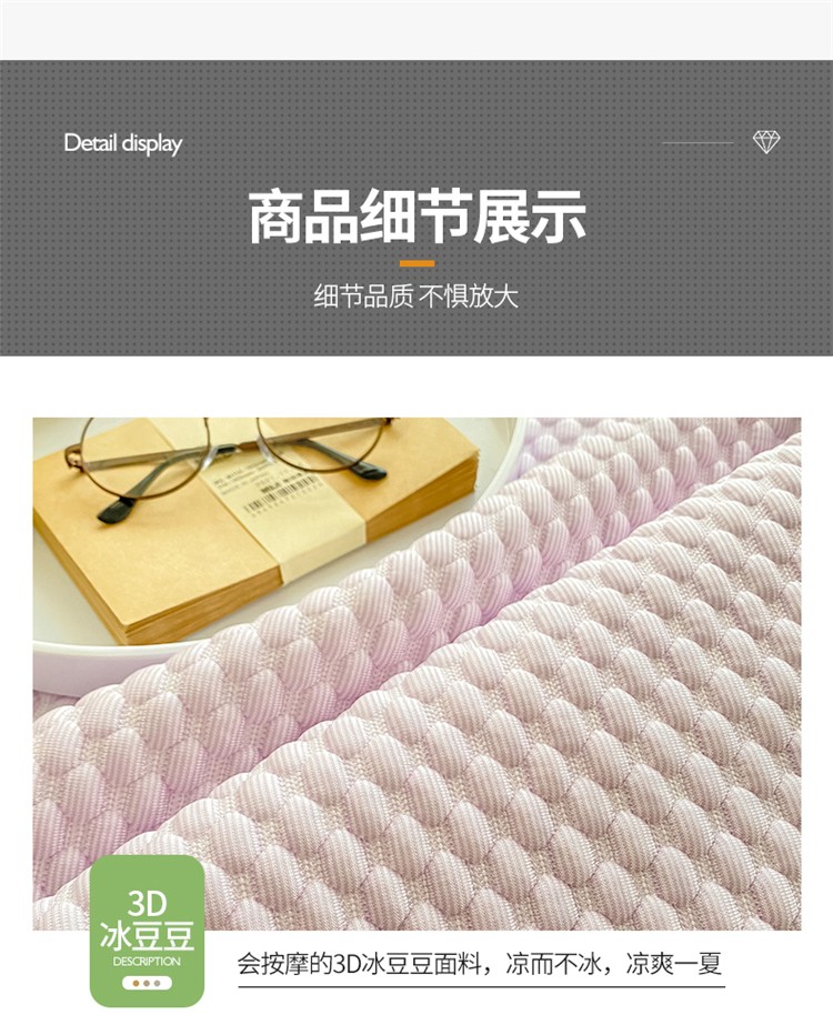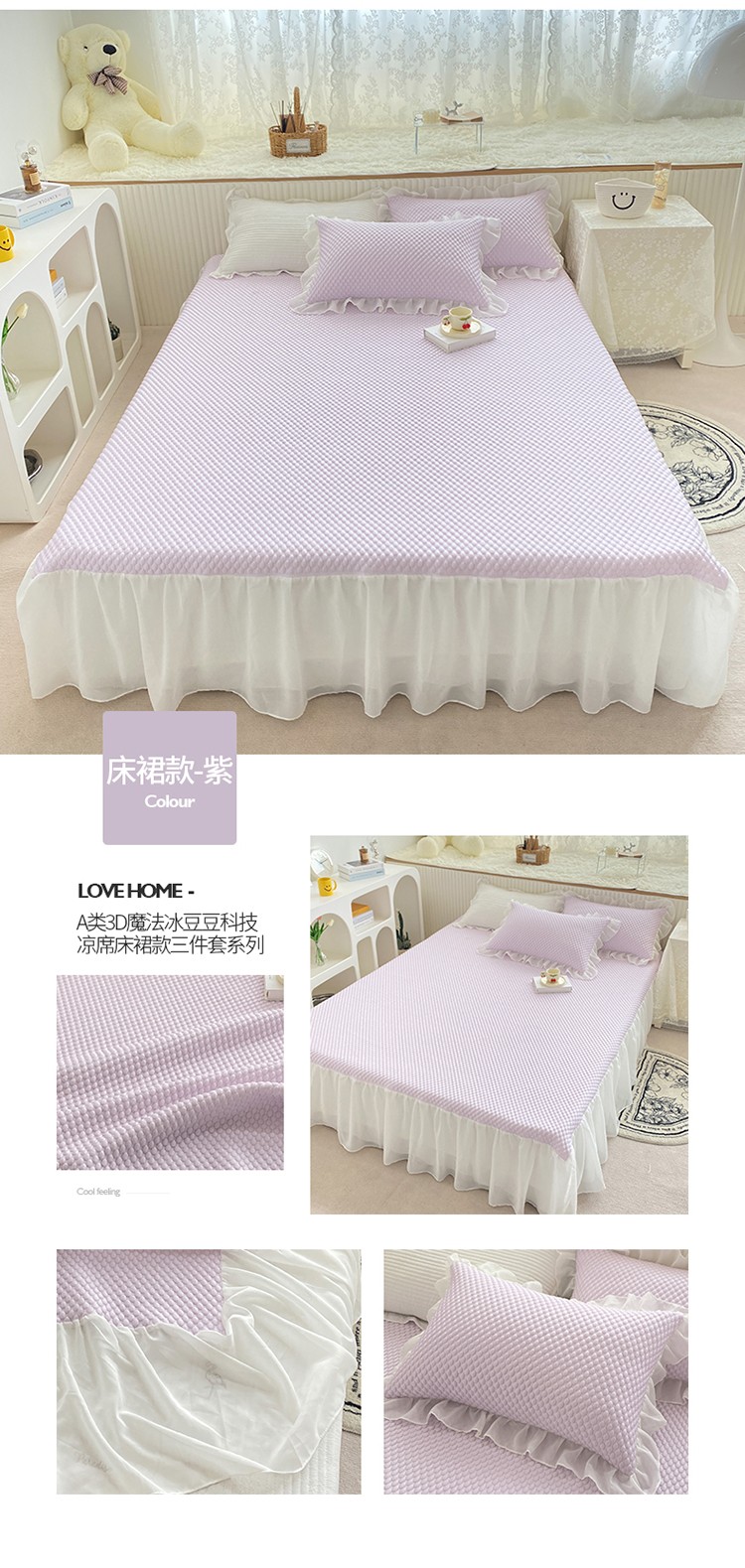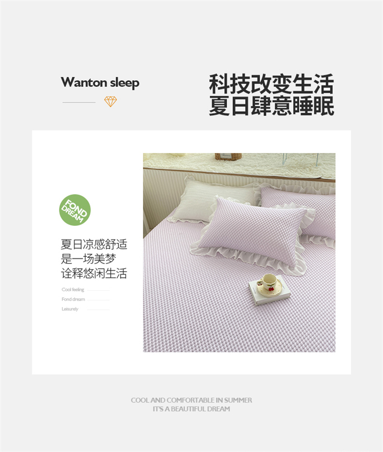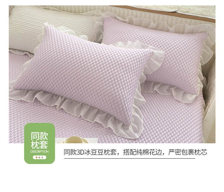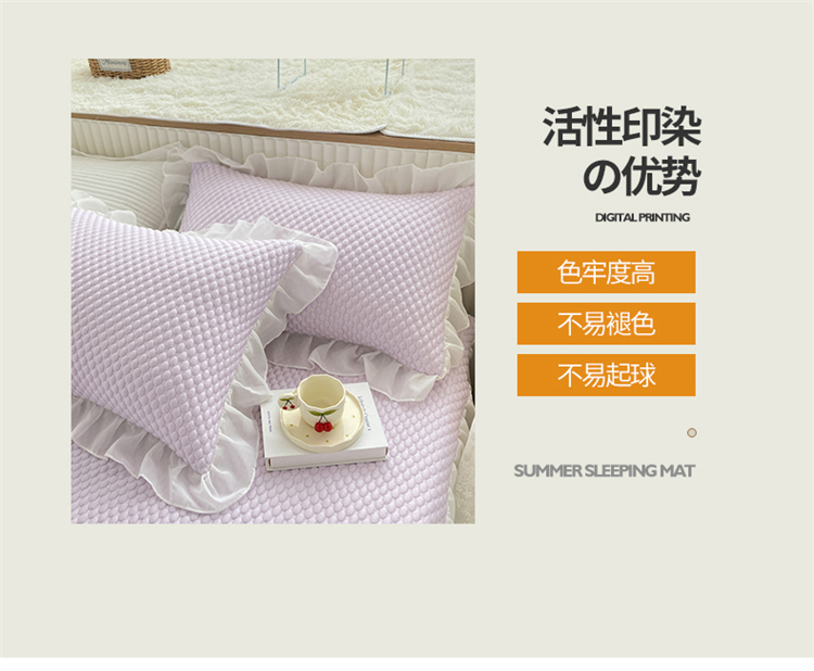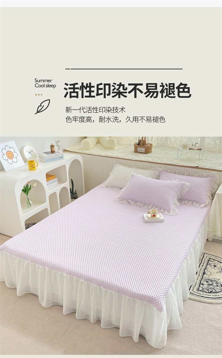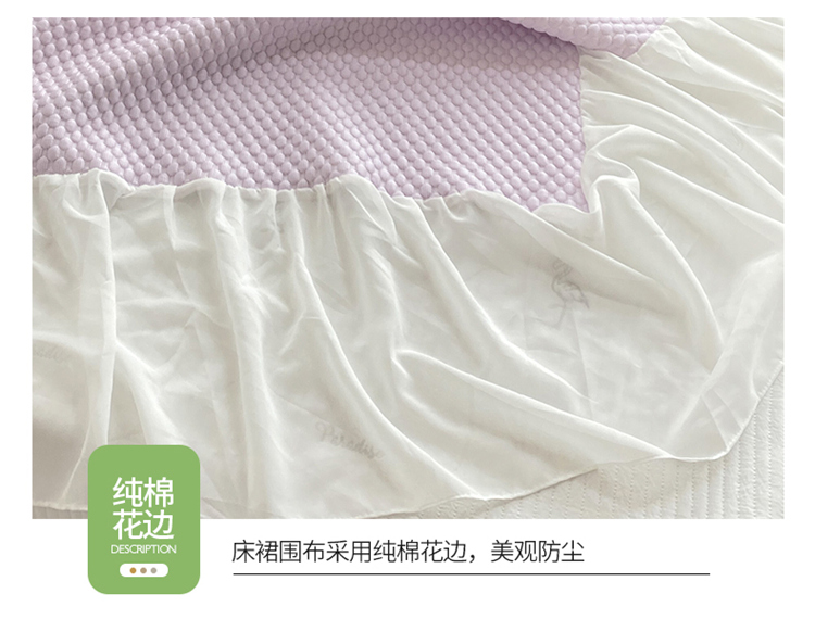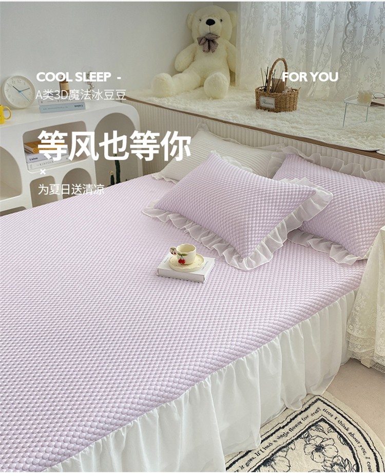 商品名称:桃子家居 2022新款A类3D魔法冰豆豆科技凉席三件套床裙款 床裙款-紫