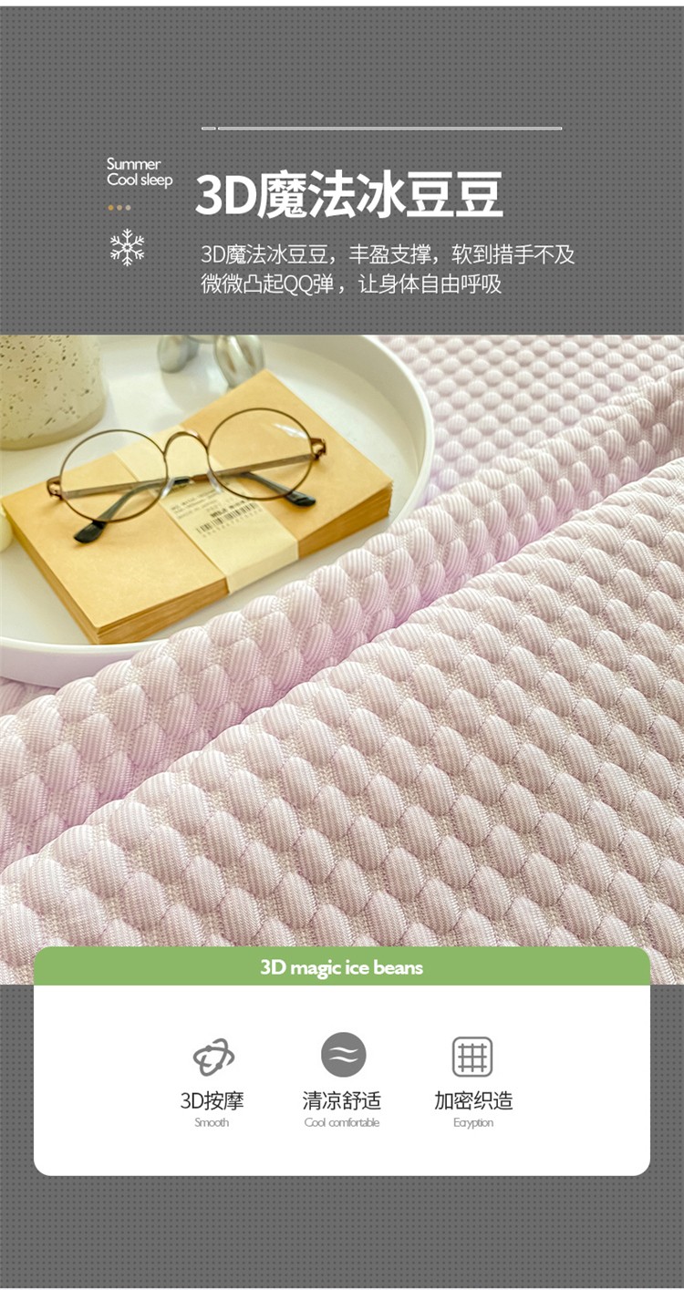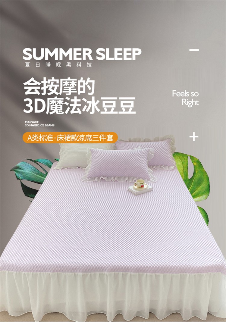 桃子家居 2022新款A类3D魔法冰豆豆科技凉席三件套床裙款 床裙款-紫