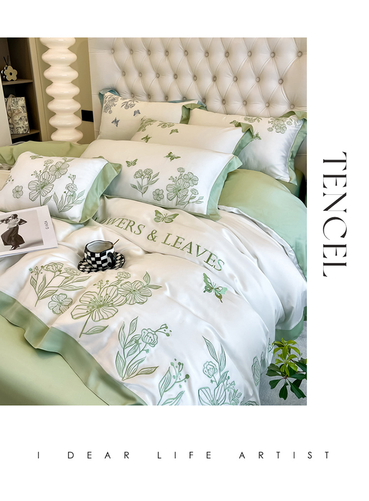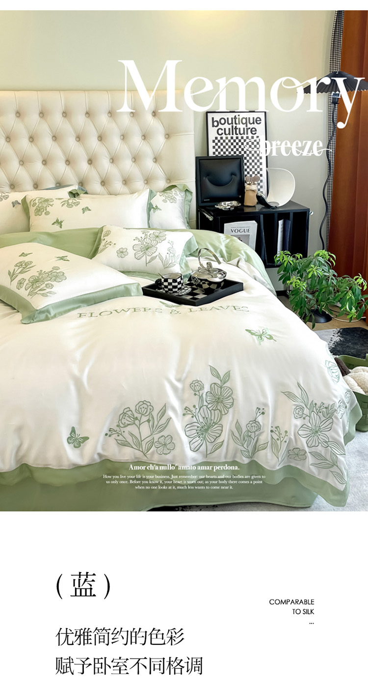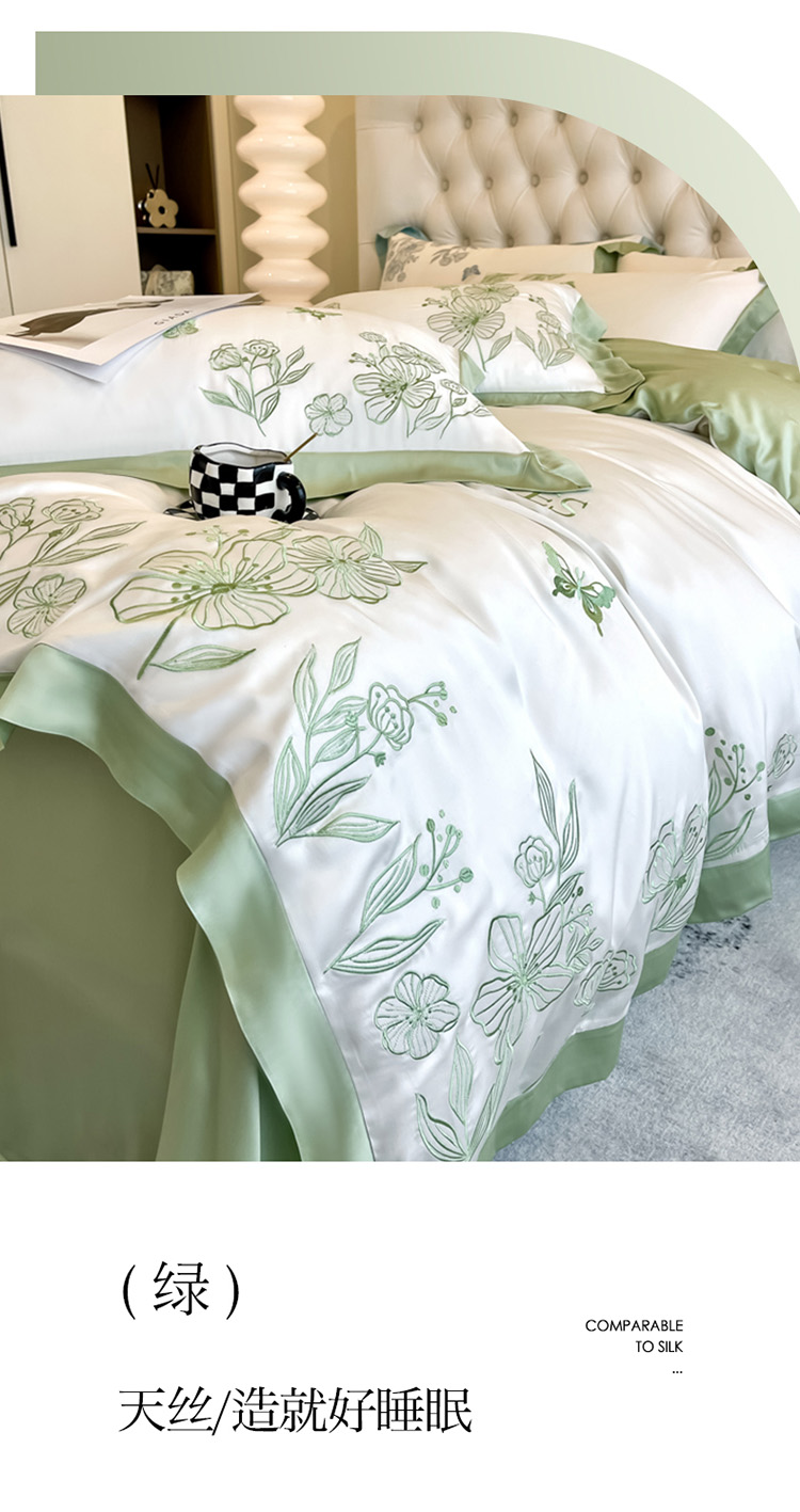 总眠帛家居2022新品60支兰精天丝气质轻奢绣花四件套-盛夏,盛夏-粉,盛夏-蓝,盛夏-绿