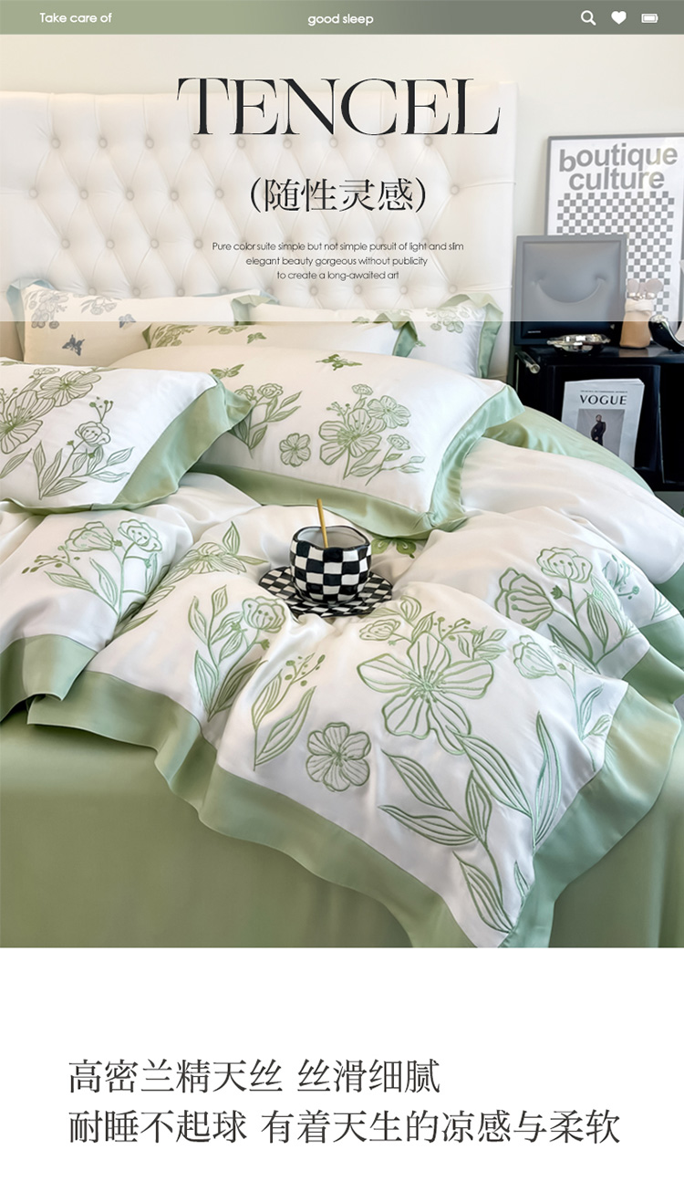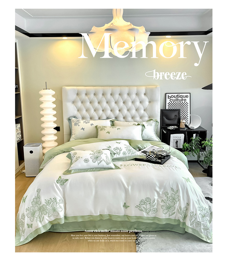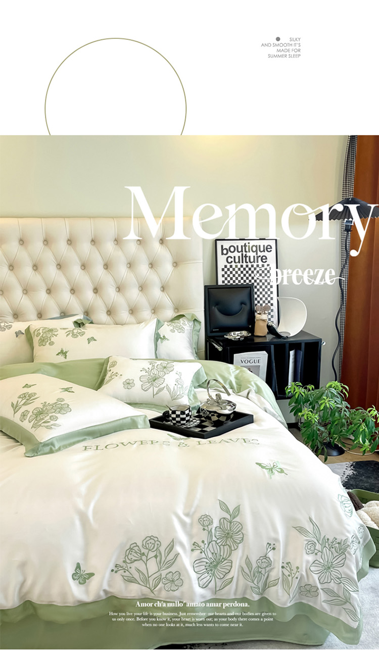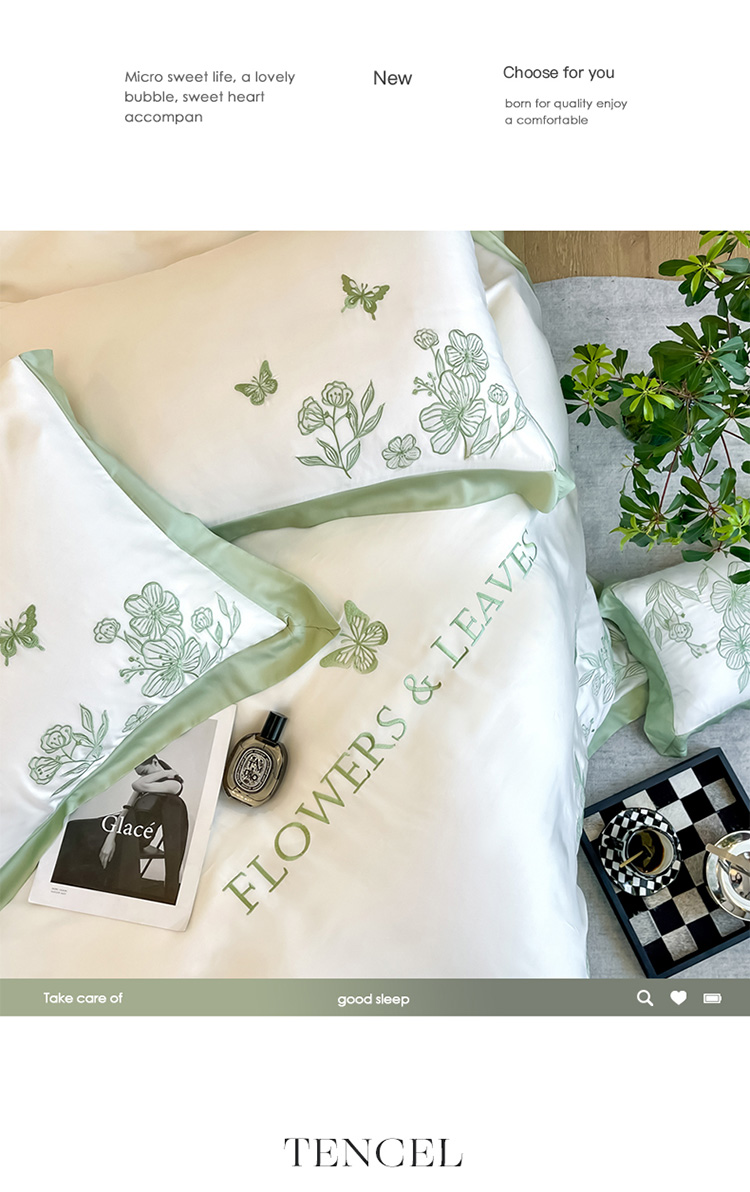 总眠帛家居2022新品60支兰精天丝气质轻奢绣花四件套-盛夏,盛夏-粉,盛夏-蓝,盛夏-绿