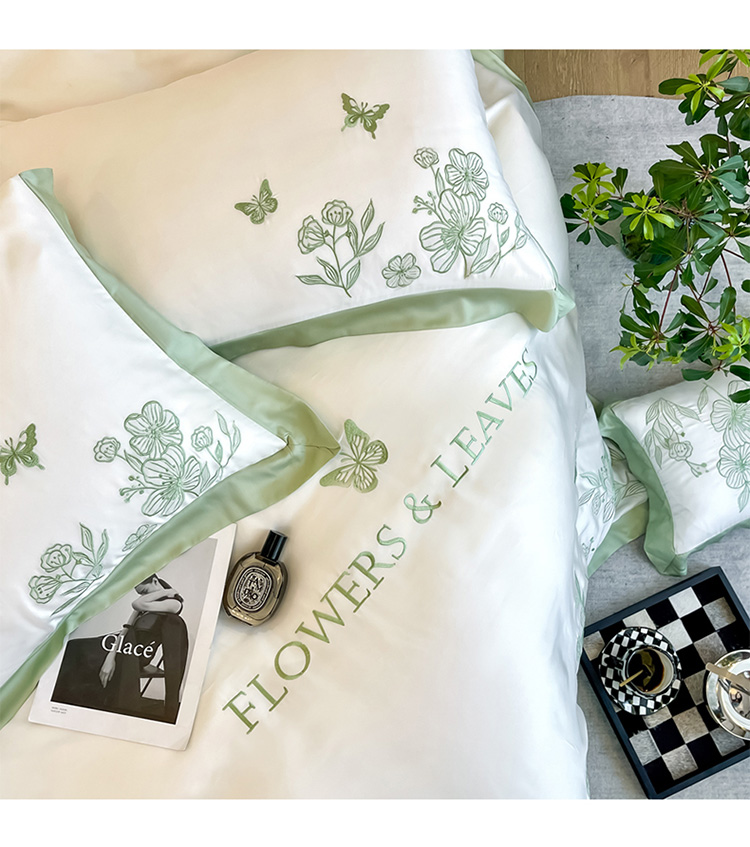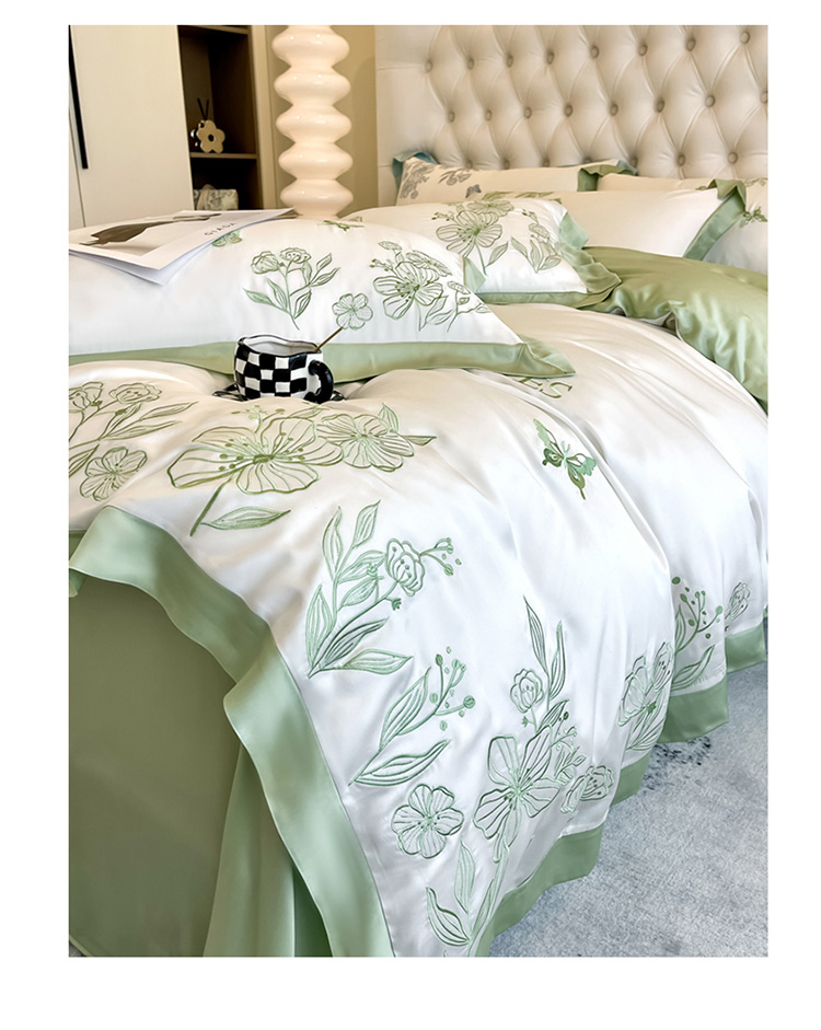 眠帛2022新品60支兰精天丝气质轻奢绣花四件套盛夏盛夏-绿