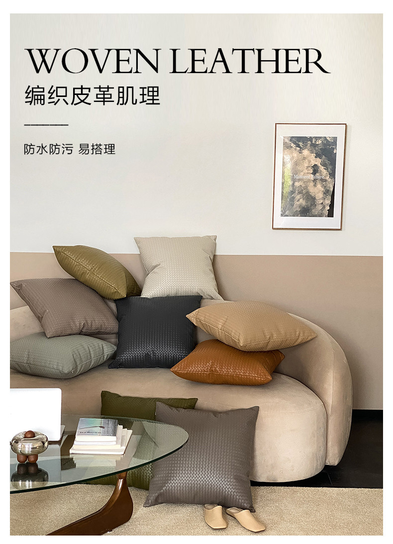商品名称:美茉 2022新款编织纹皮革抱枕腰枕 卡其色