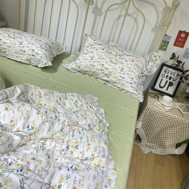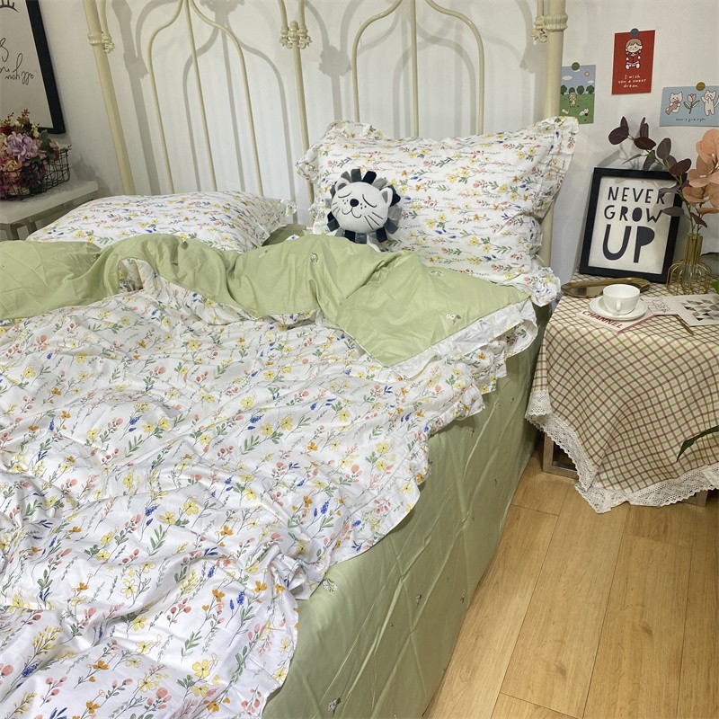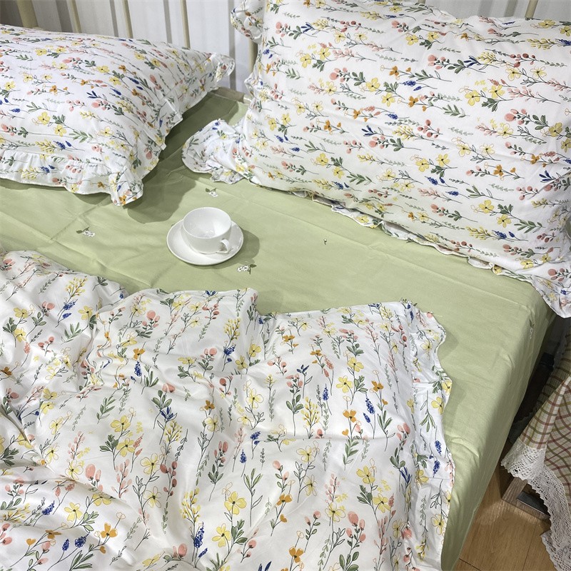 棉生活 2022新款韩系花边碎花四件套 慢调时光