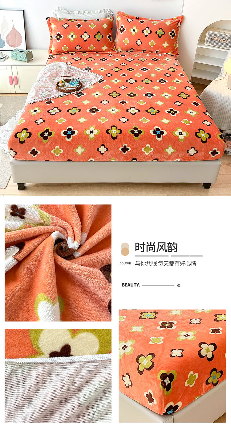 (总)2024新款230克牛奶绒印花单品床笠 可定做任意尺寸