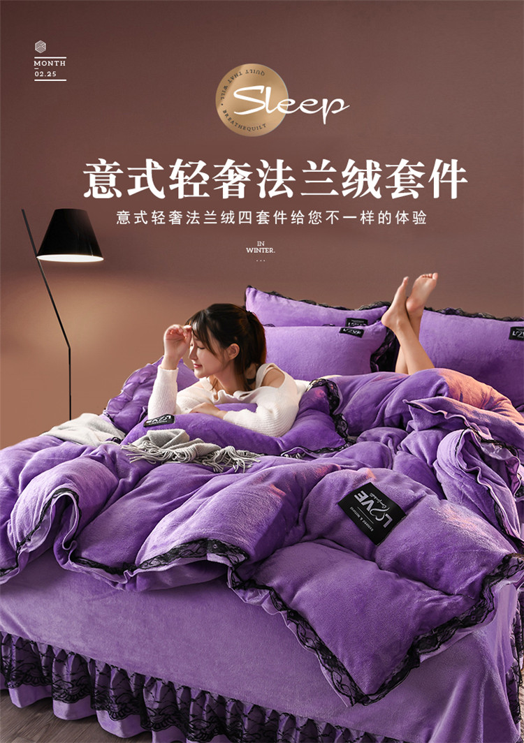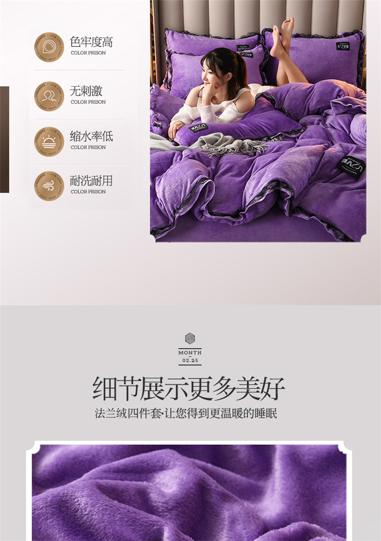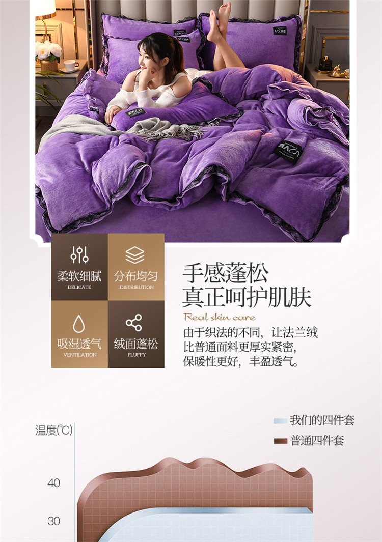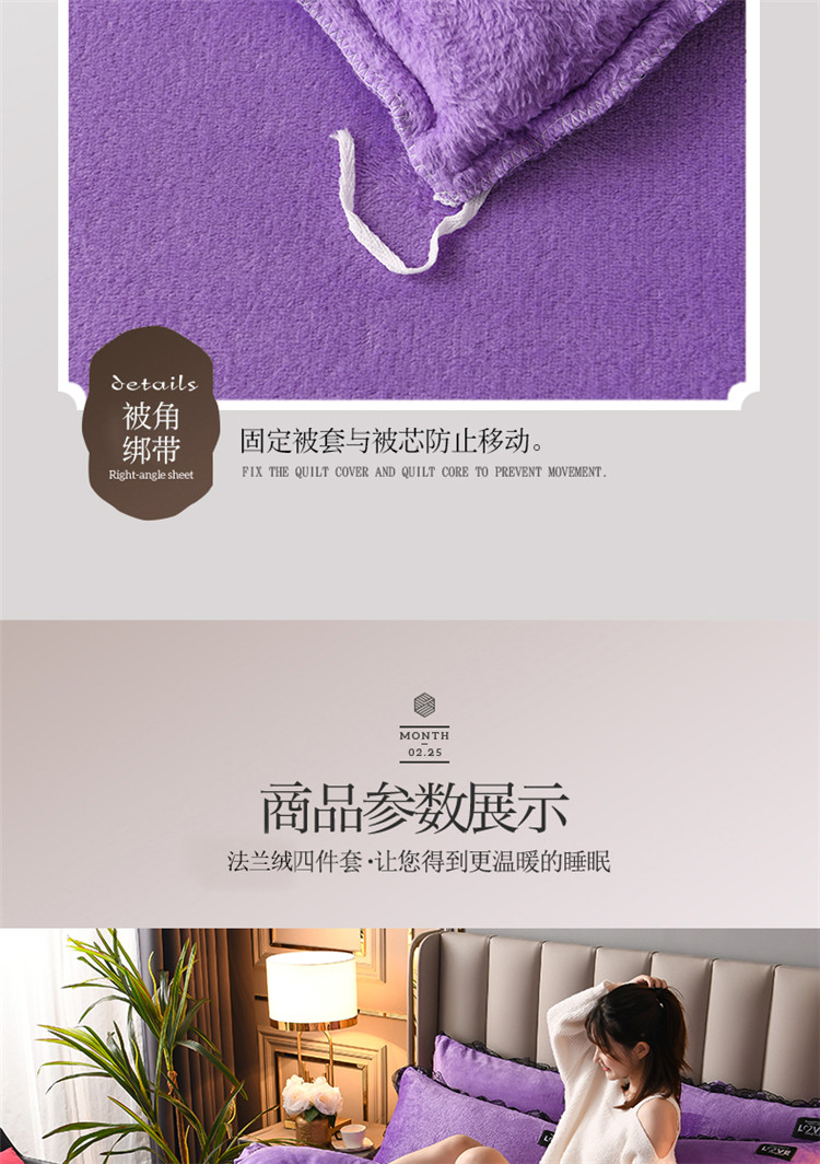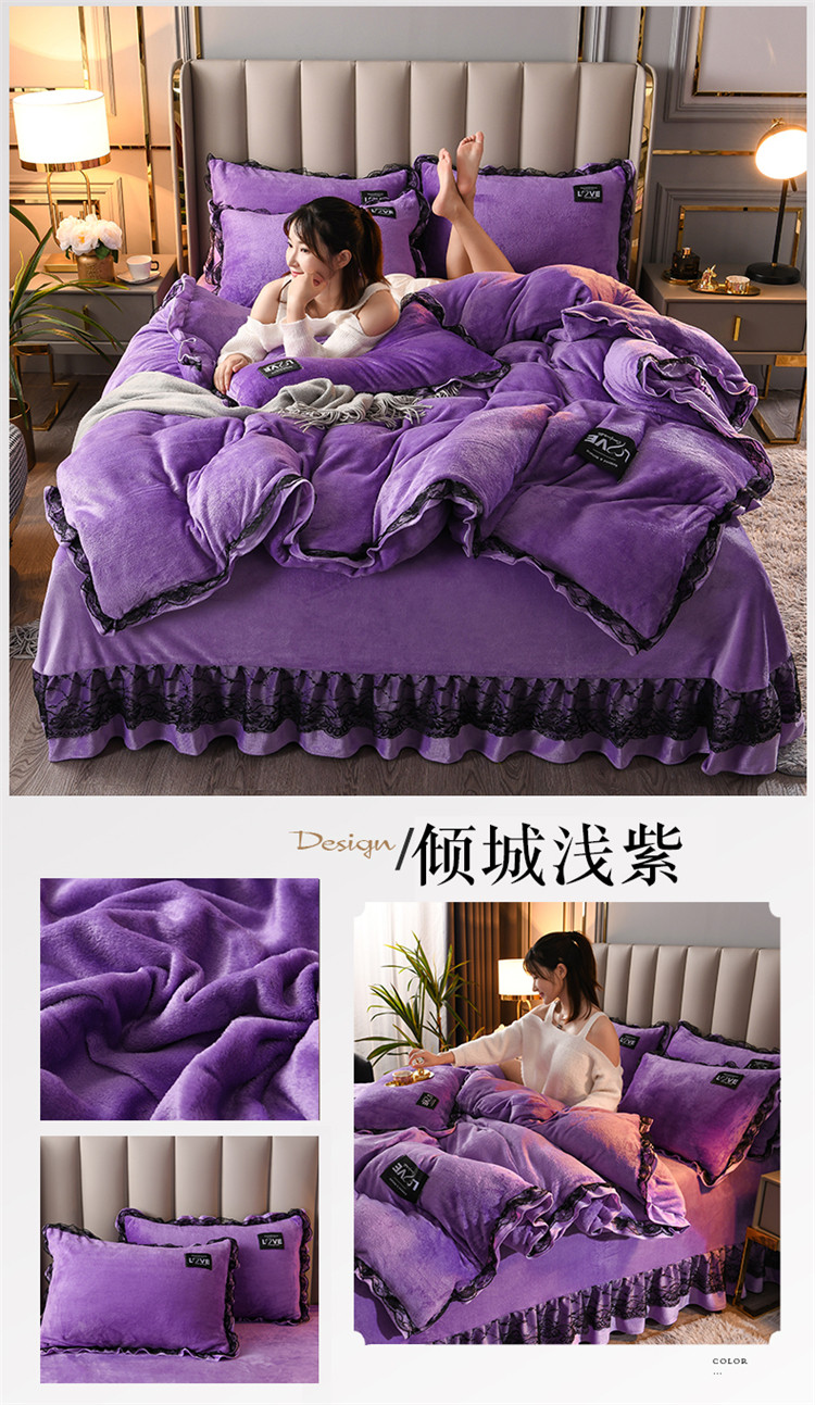 商品名称:铠畅 2022新款牛奶绒四件套-倾城系列 倾城浅紫