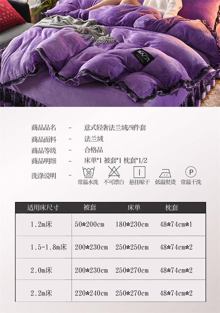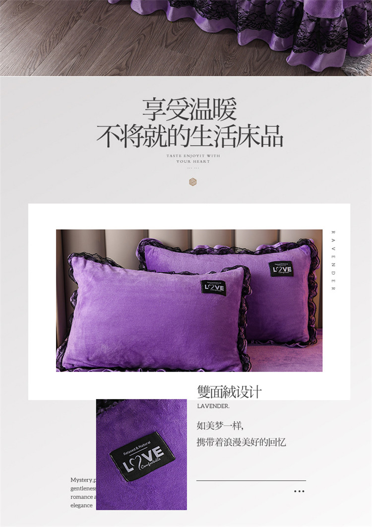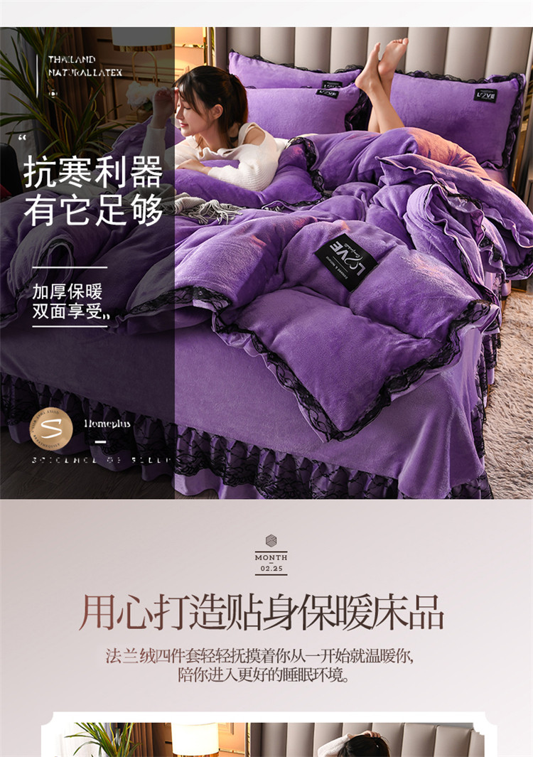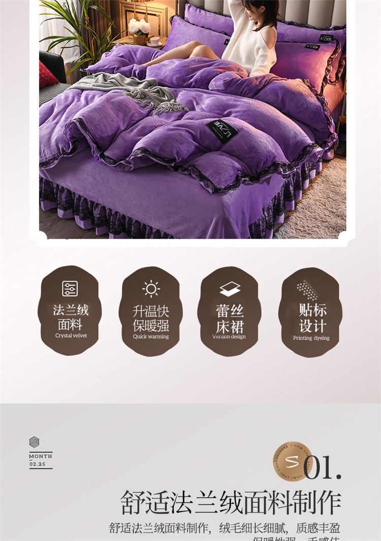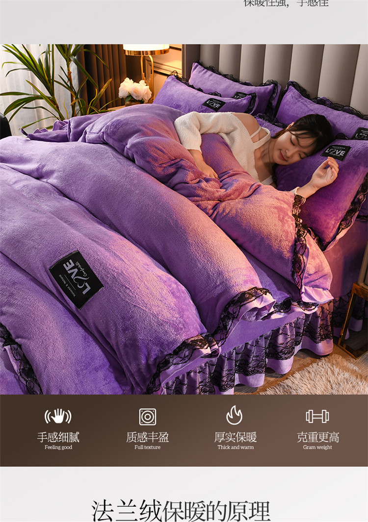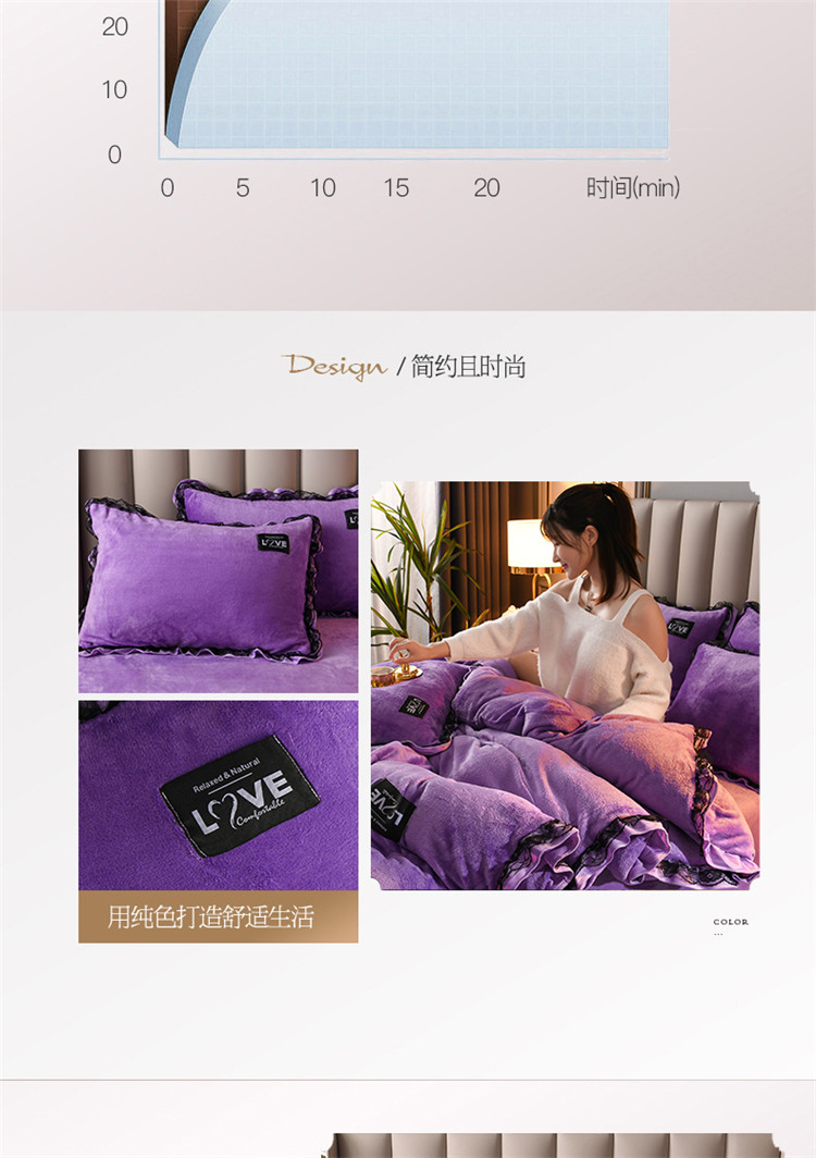 商品名称:铠畅 2022新款牛奶绒四件套-倾城系列 倾城浅紫