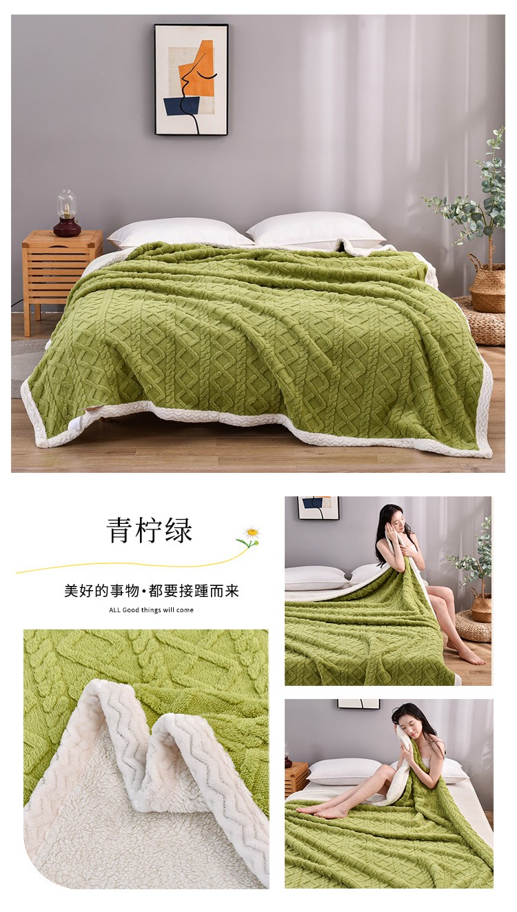 (总)爱她美家纺 2024新款兔毛泡泡毯多功能毯子,草绿,粉色,奶白,浅灰,天蓝,驼色,紫色