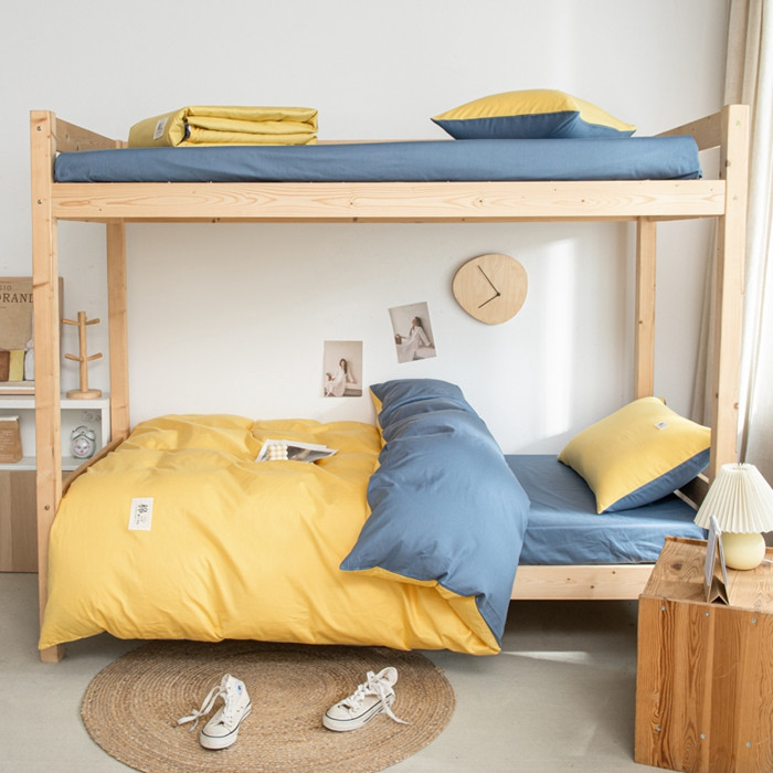 当前位置: 91家纺网 > 商品网购 > 床品套件 > 三件套 > 杜先生 2023新款全棉学生宿舍上下铺色拼系列三件套 姜黄-牛仔蓝