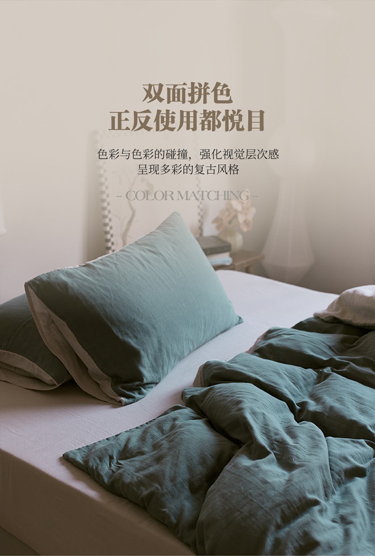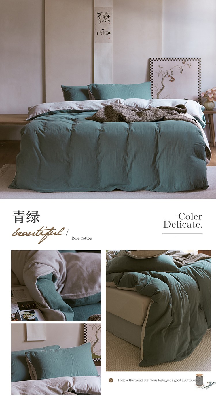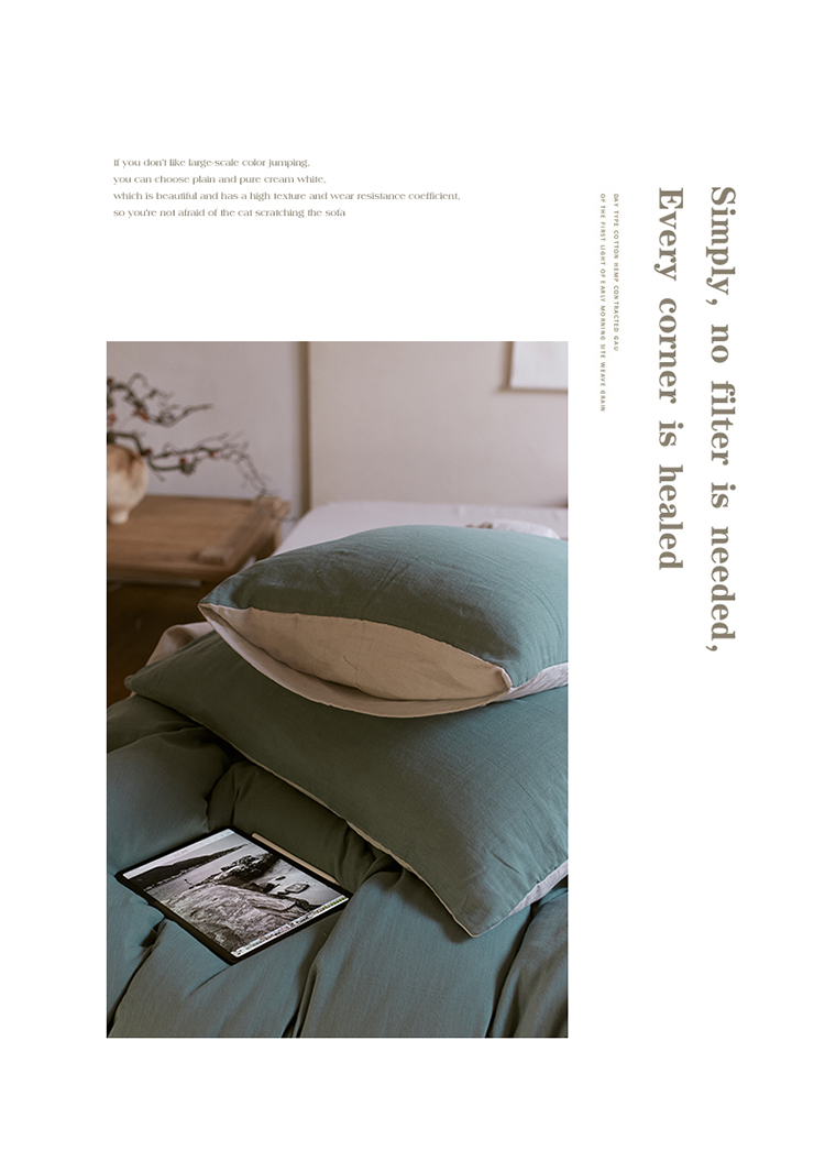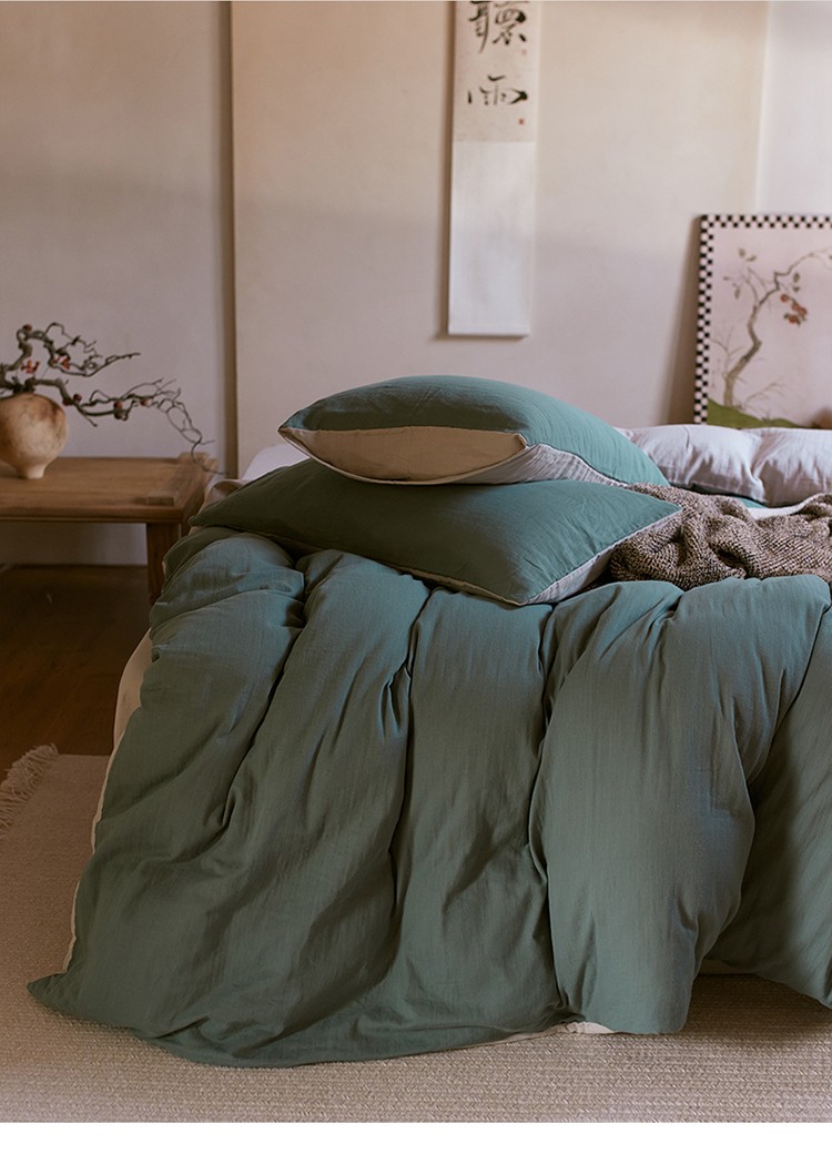 当前位置: 91家纺网 > 商品网购 > 床品套件 > 四件套 > 全棉普通四件套 > 安莱生活 2022新款全棉双层纱纯色四件套--侘寂风 青绿
