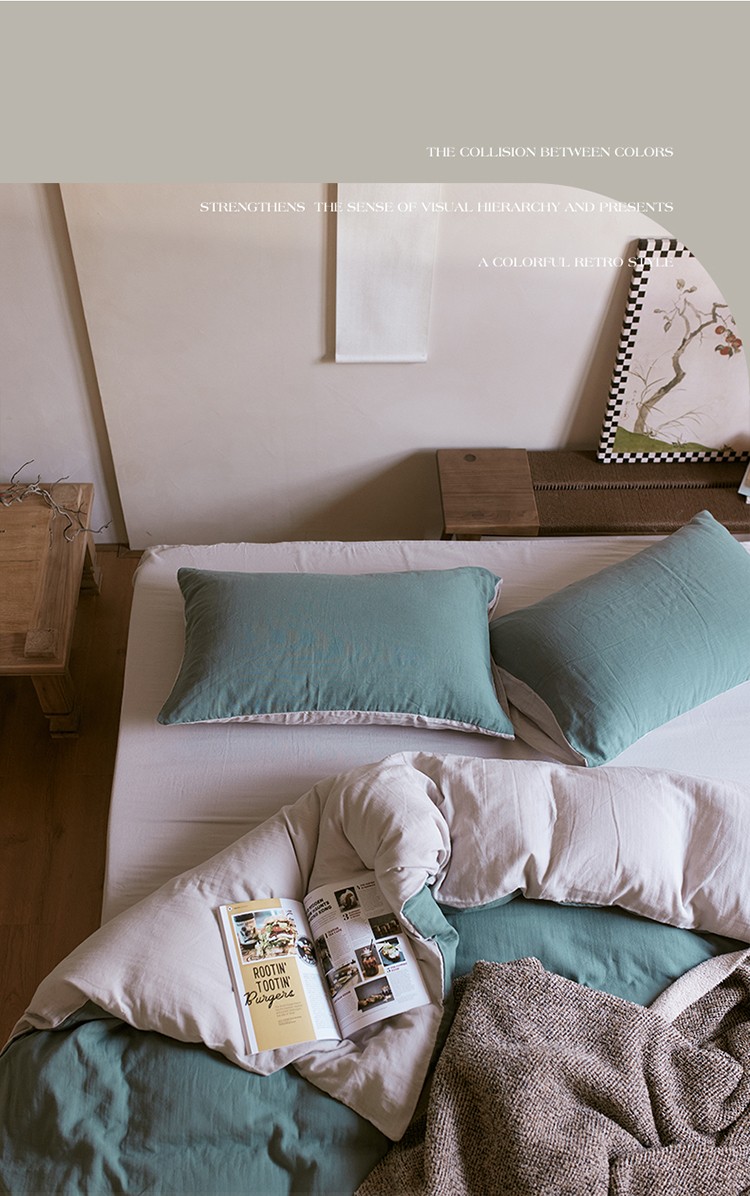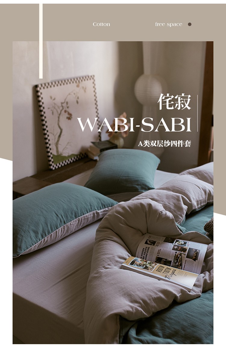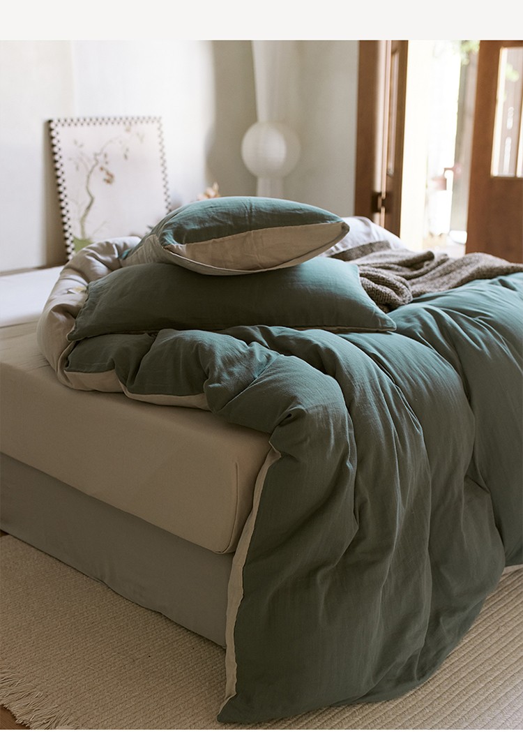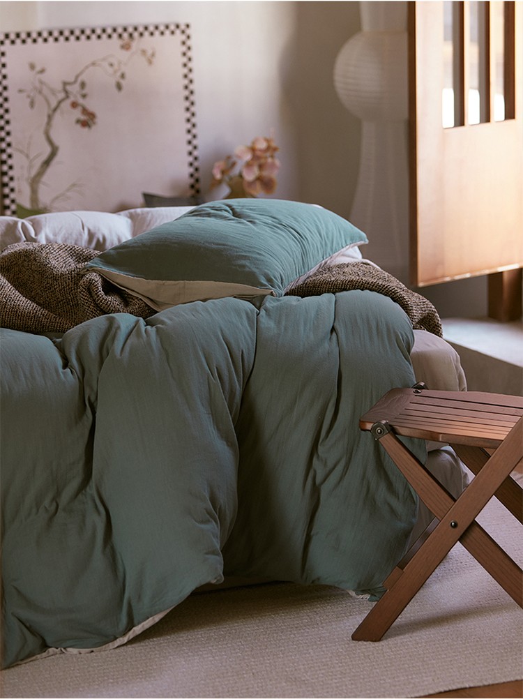 当前位置: 91家纺网 > 商品网购 > 床品套件 > 四件套 > 全棉普通四件套 > 安莱生活 2022新款全棉双层纱纯色四件套--侘寂风 青绿