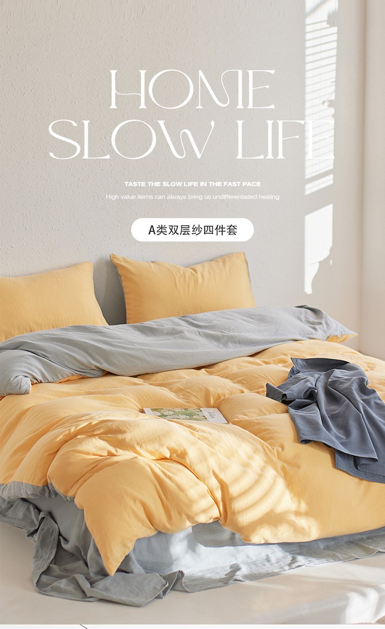 当前位置: 91家纺网 > 商品网购 > 床品套件 > 四件套 > 全棉普通四件套 > 安莱生活 2022新款全棉双层纱纯色四件套--简约风 柠檬