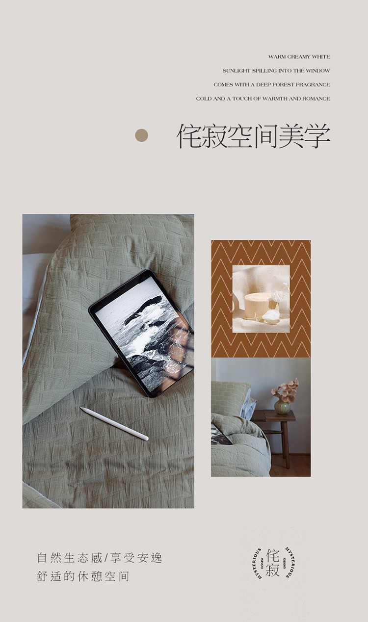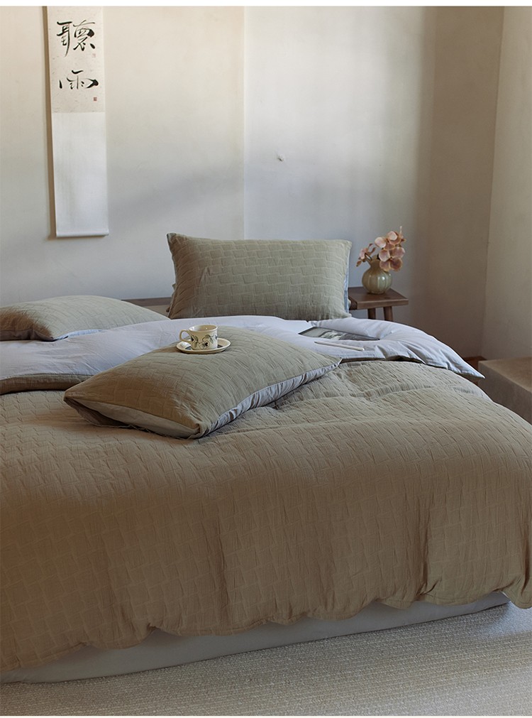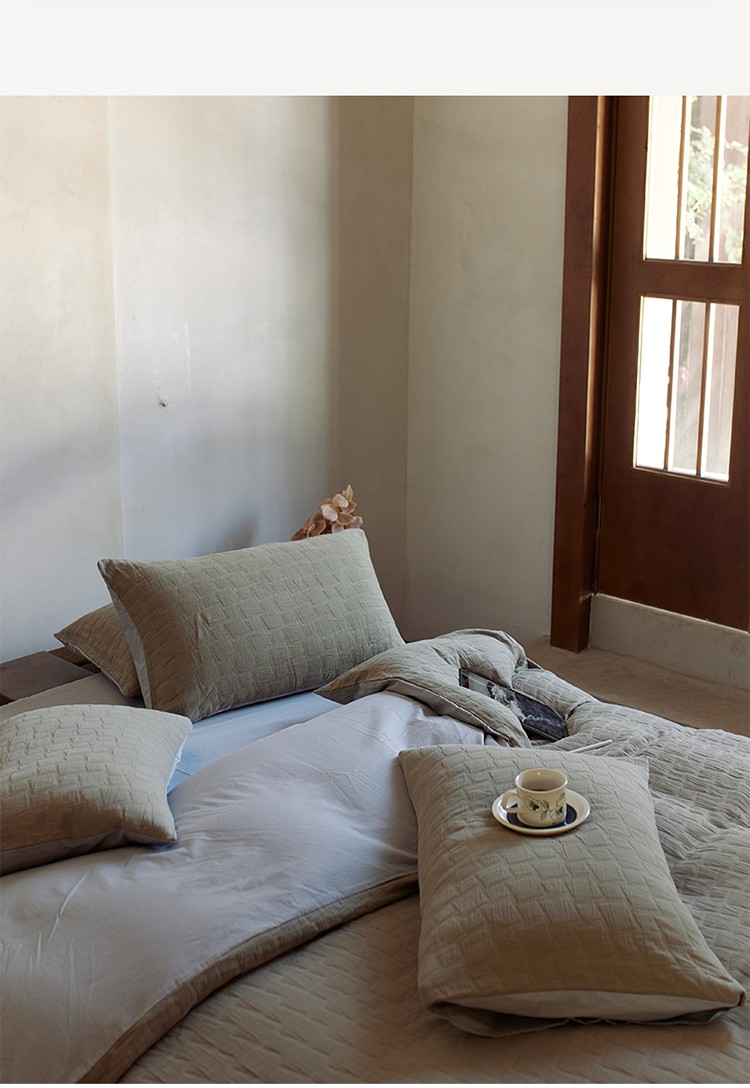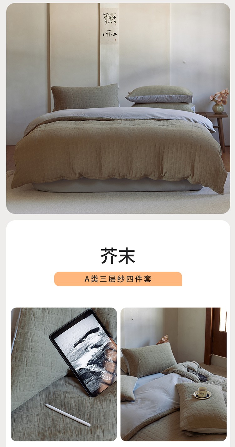 当前位置: 91家纺网 > 商品网购 > 床品套件 > 四件套 > 全棉普通四件套 > 安莱生活 2022新款泡芙三层纱四件套--侘寂风 芥末