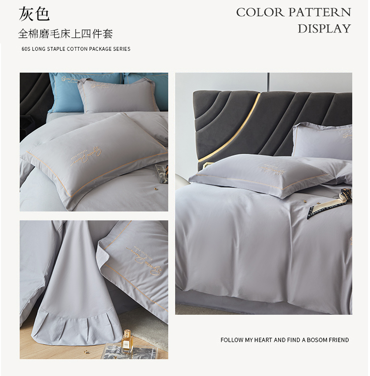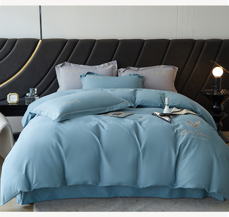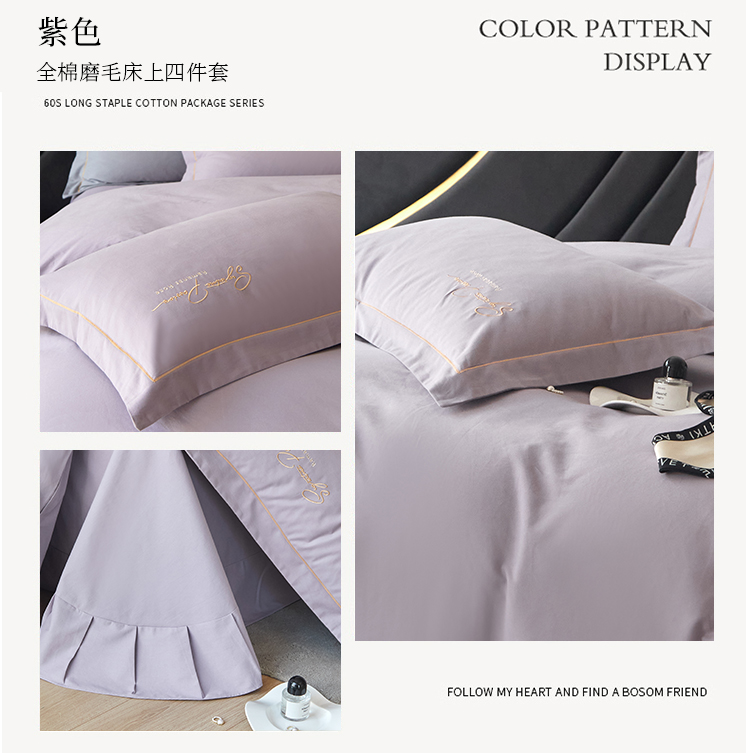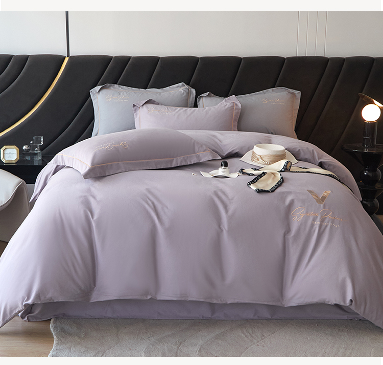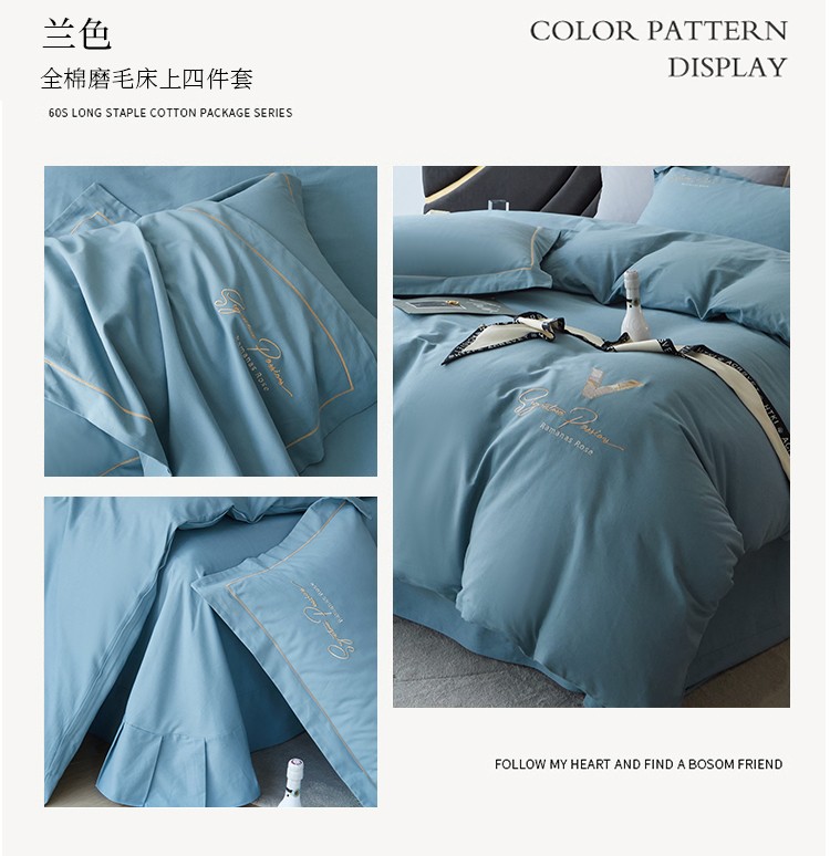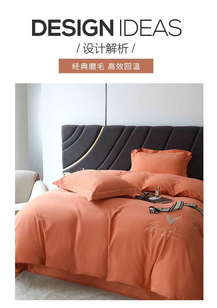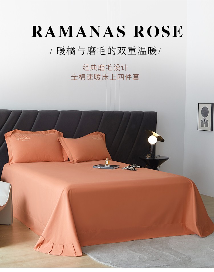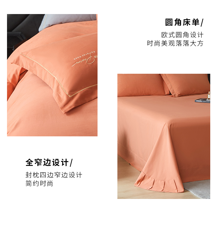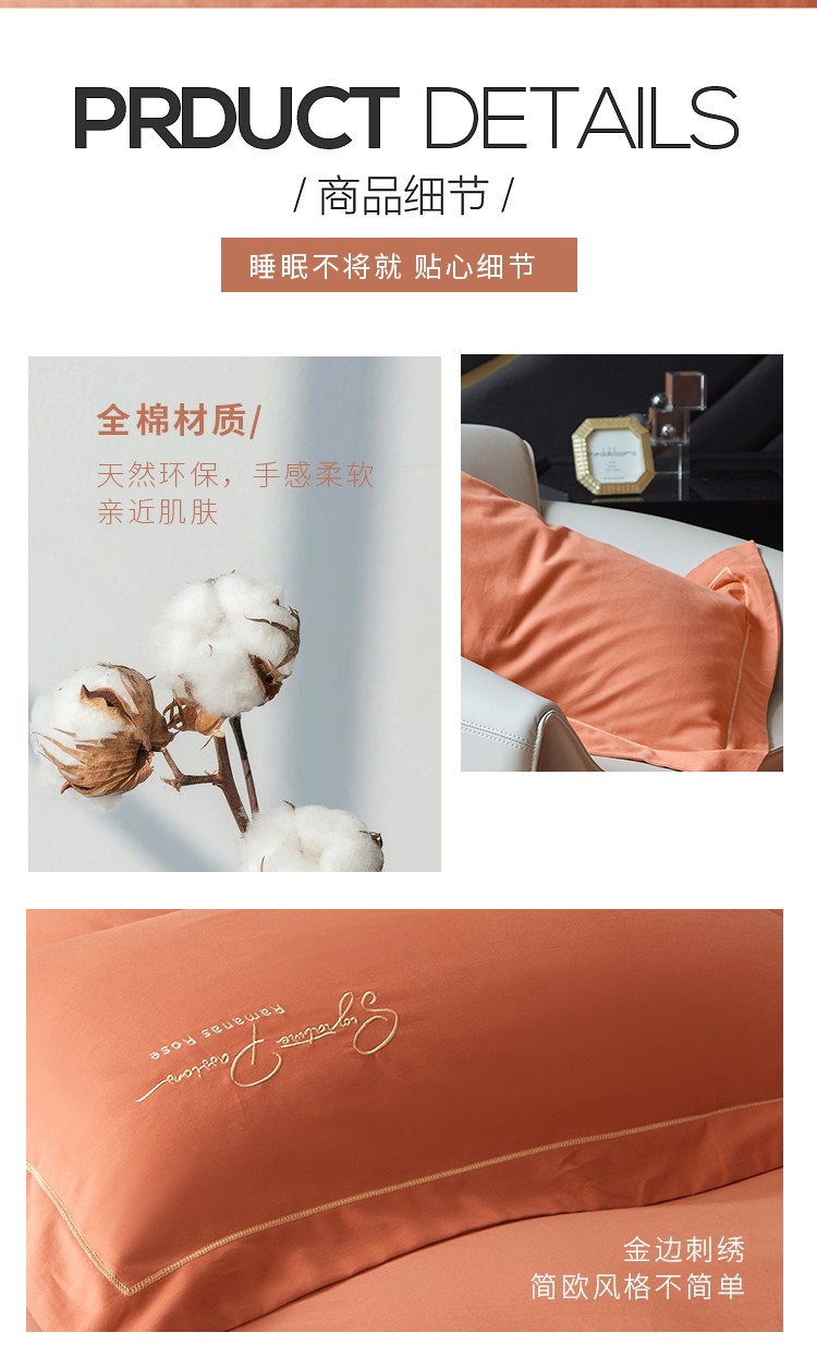 (总)惠居家 2023新款 120支长绒棉利亚款四件套,宝石蓝,橙色,豆沙,高级灰,卡宴蓝,温馨紫