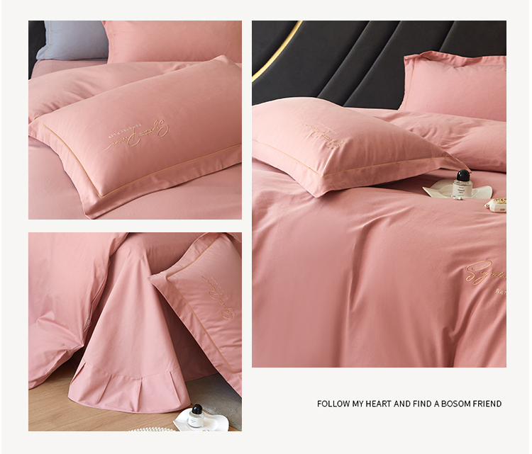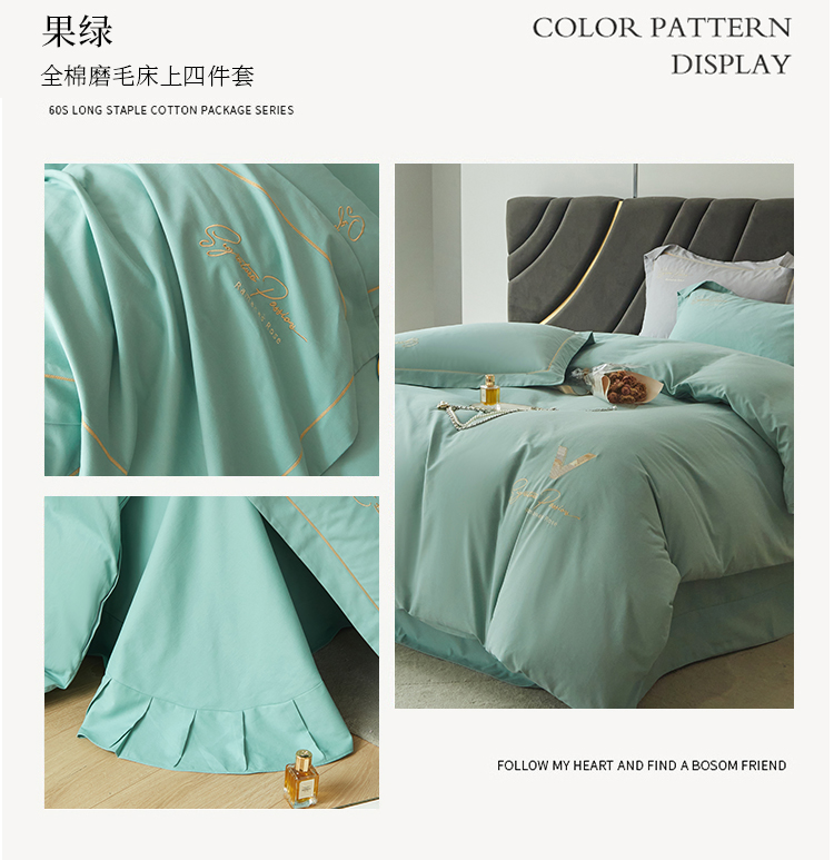 (总)惠居家 2023新款 13376全棉刺绣四件套 兰亭系列,牛果绿,豆沙,高级灰,桔色,森林绿,天空蓝,温馨紫