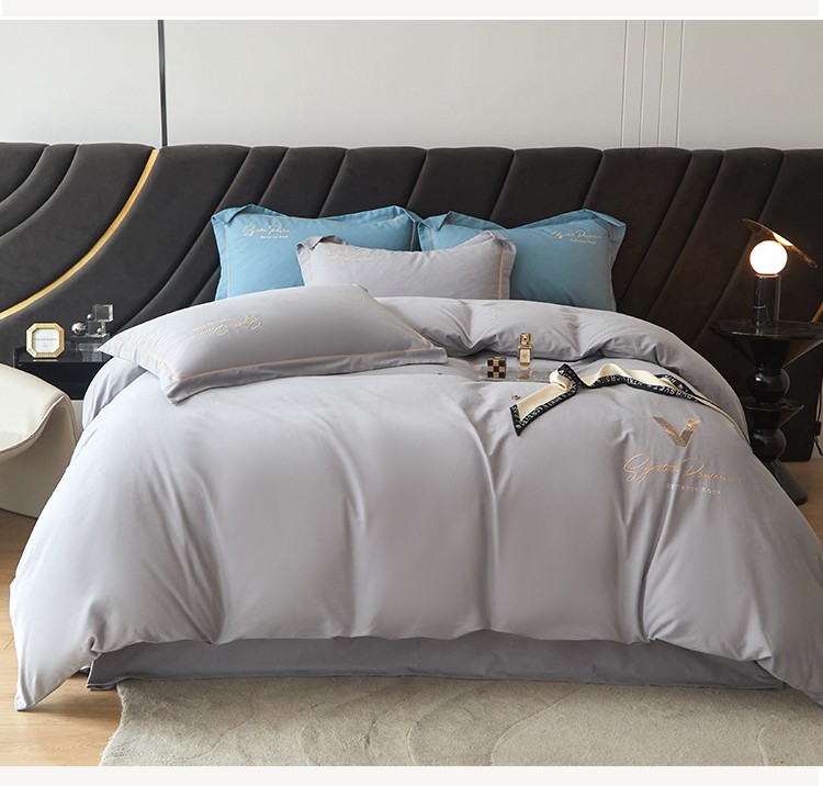 (总)惠居家 2023新款120支长绒棉刺绣四件套希曼系列,薄荷绿,宾利兰,豆沙,灰色