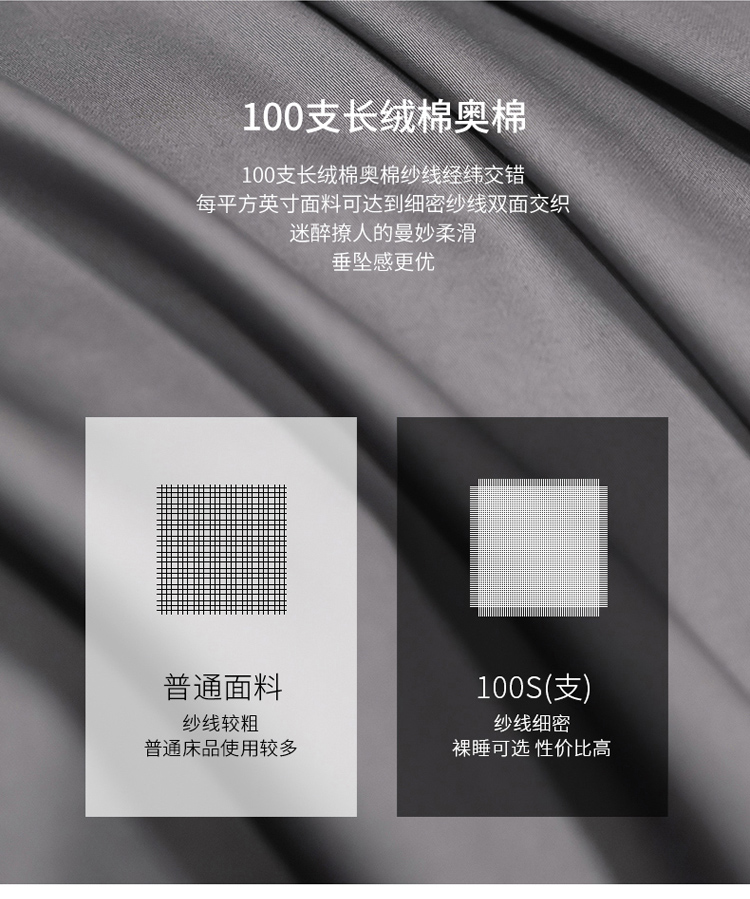 爱缦 2022新款梦芭莎系列100支长绒棉奥棉四件套 帝都灰