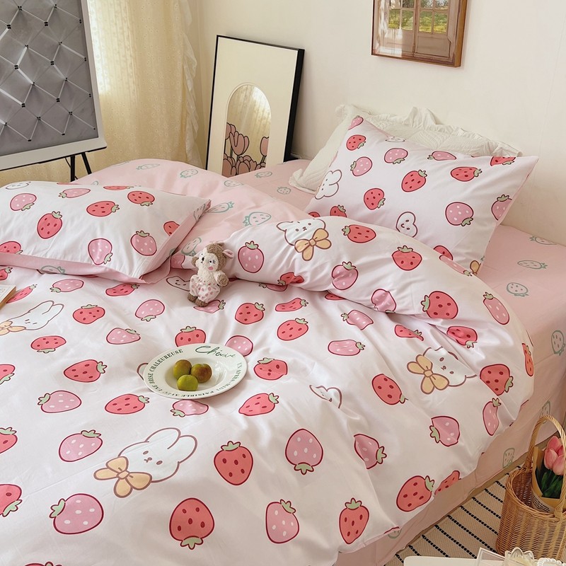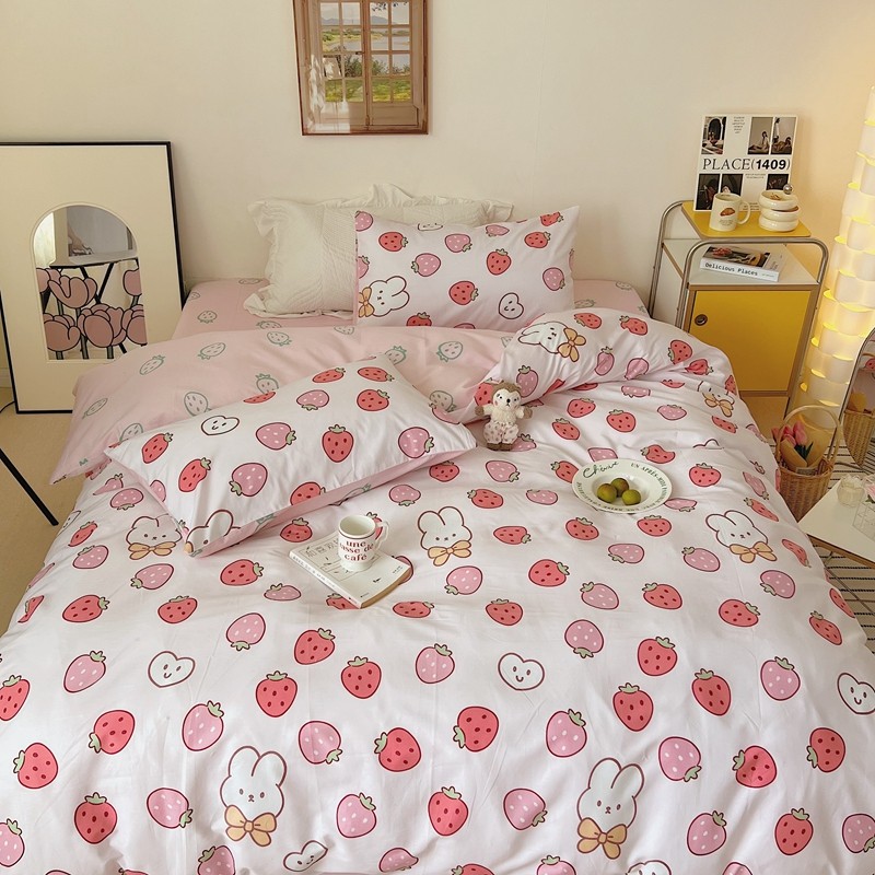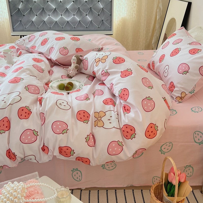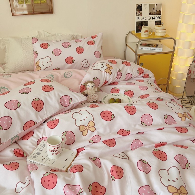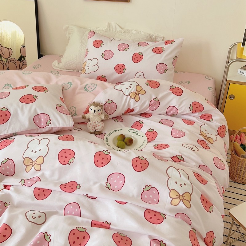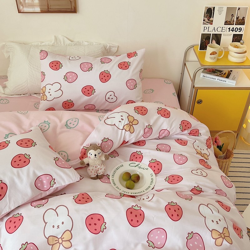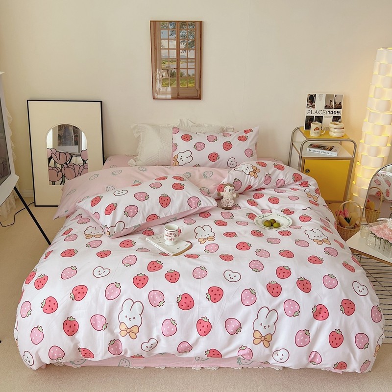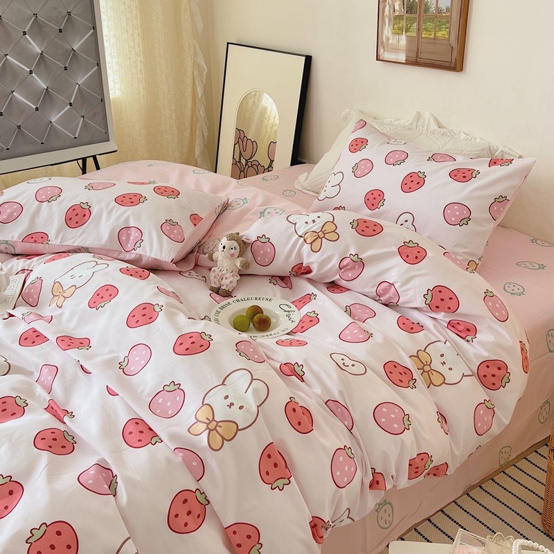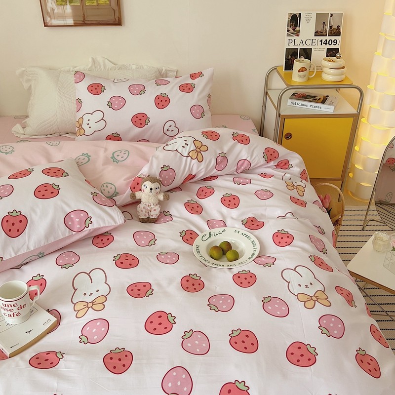 顾里家纺 2022ins韩系全棉四件套韩系花花系列 草莓兔心