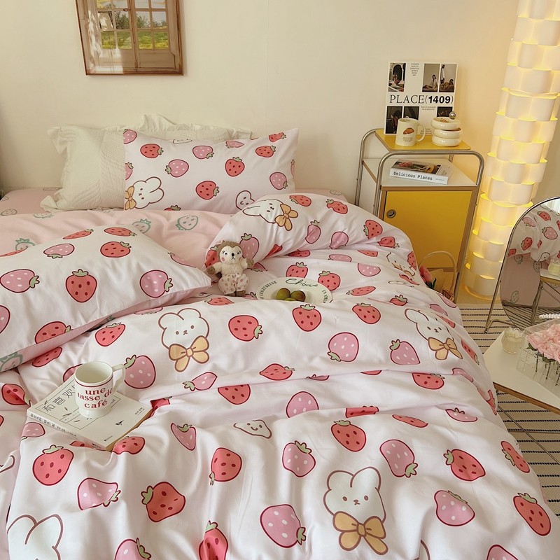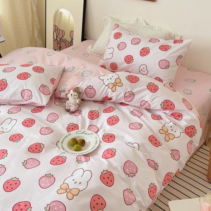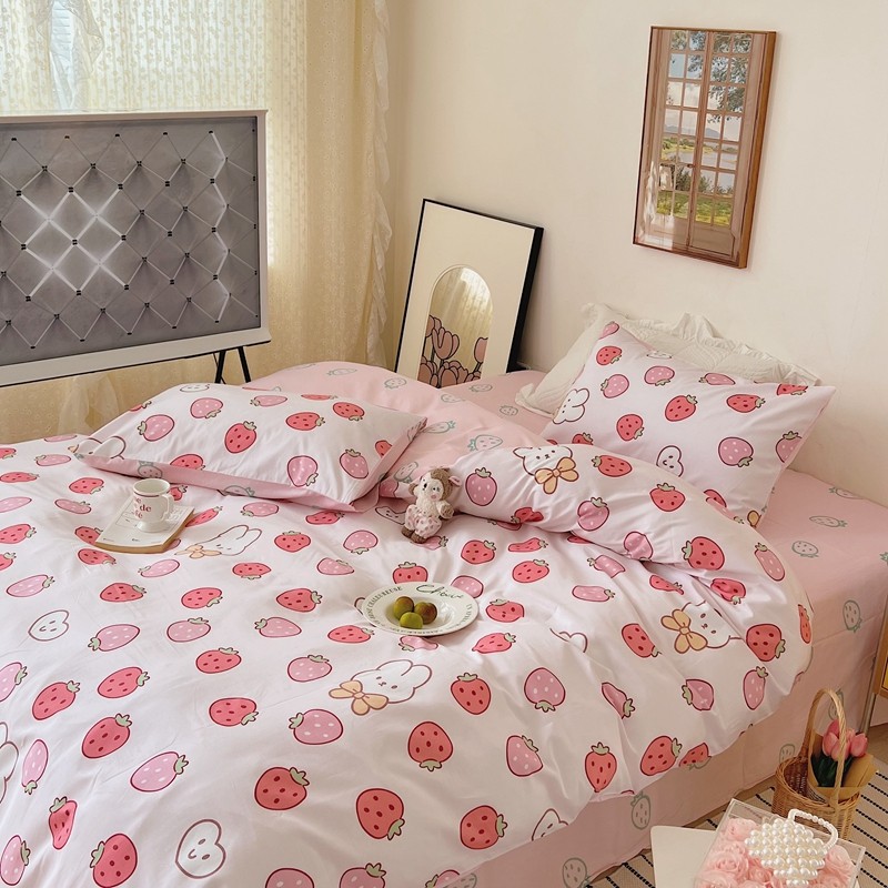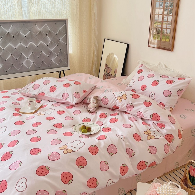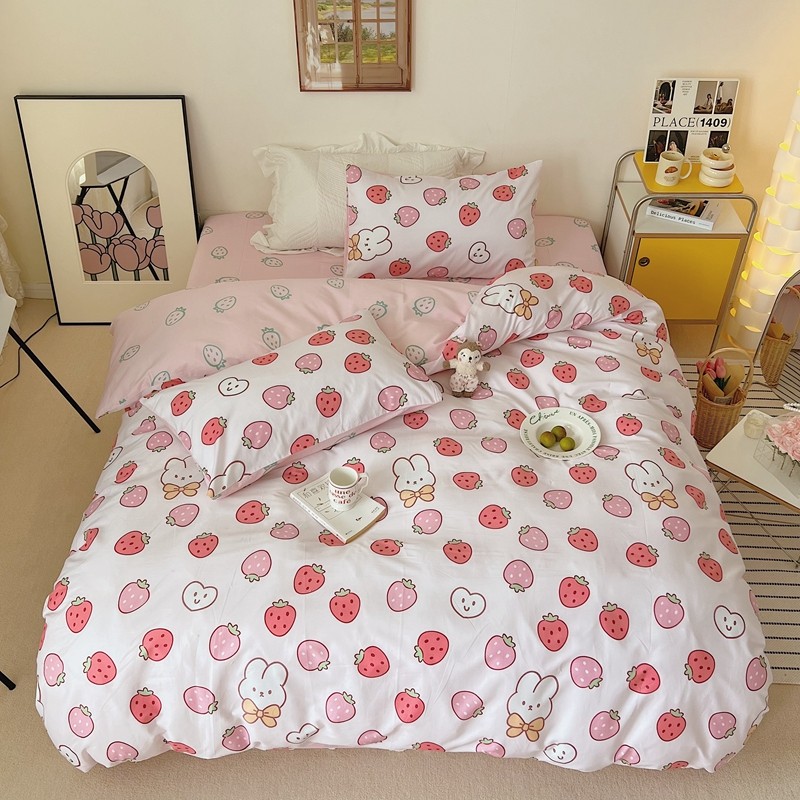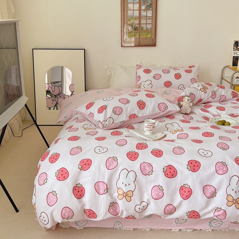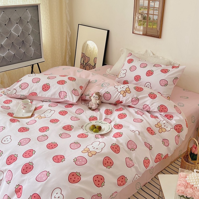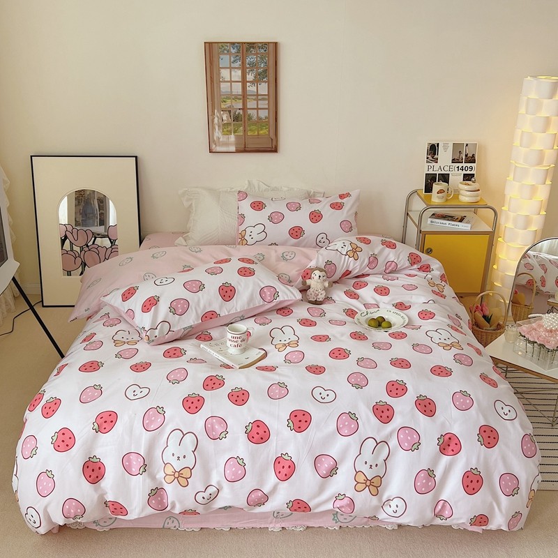 顾里家纺 2022ins韩系全棉四件套韩系花花系列 草莓兔心
