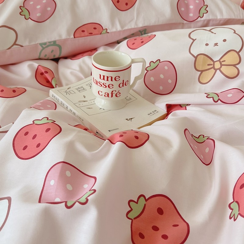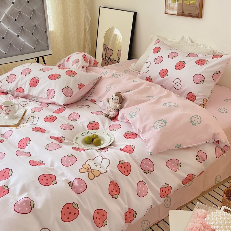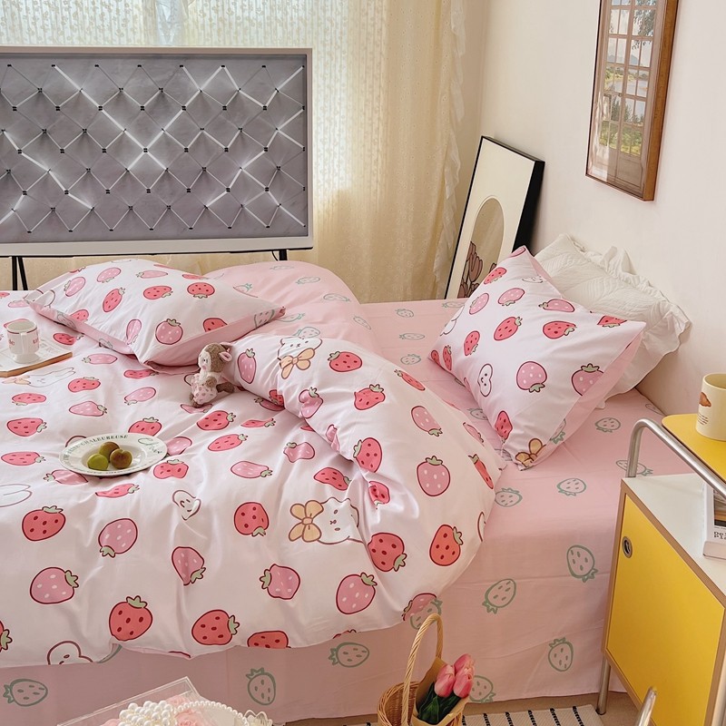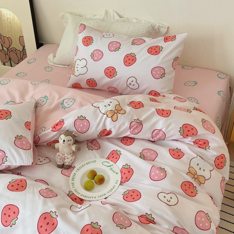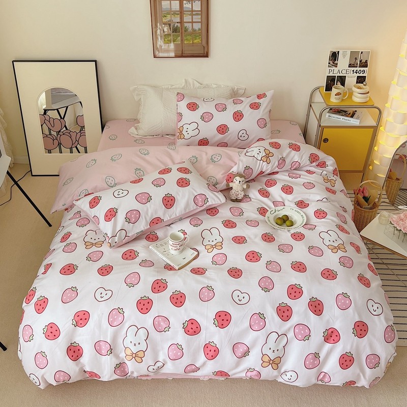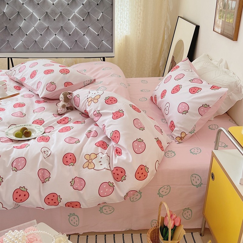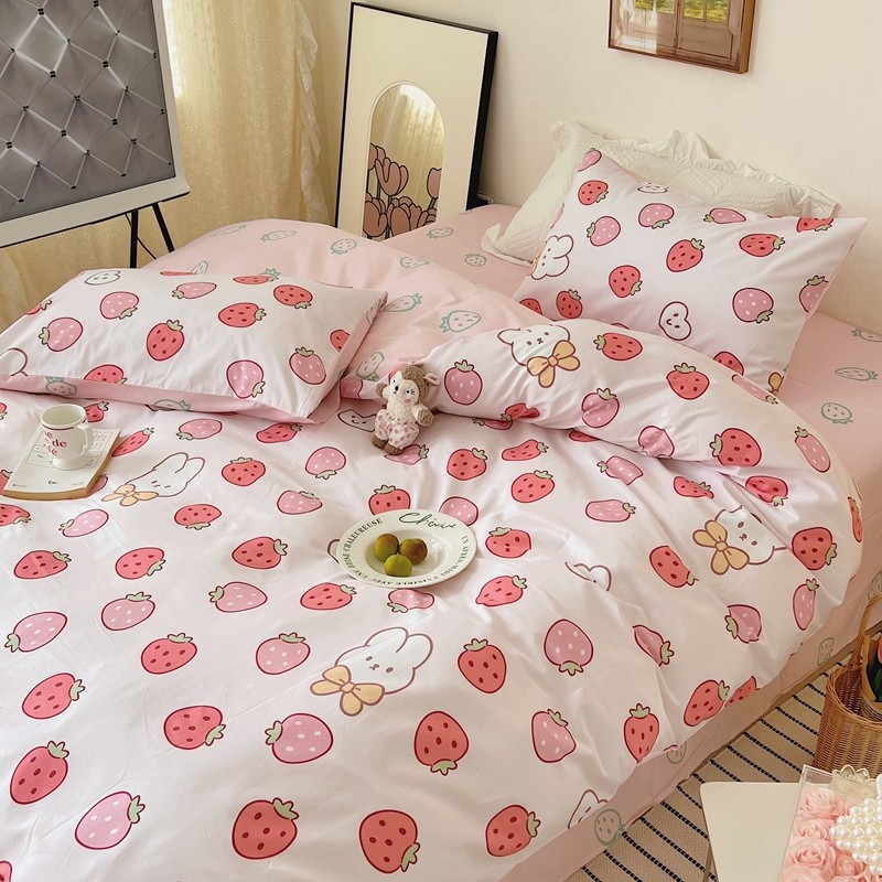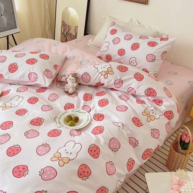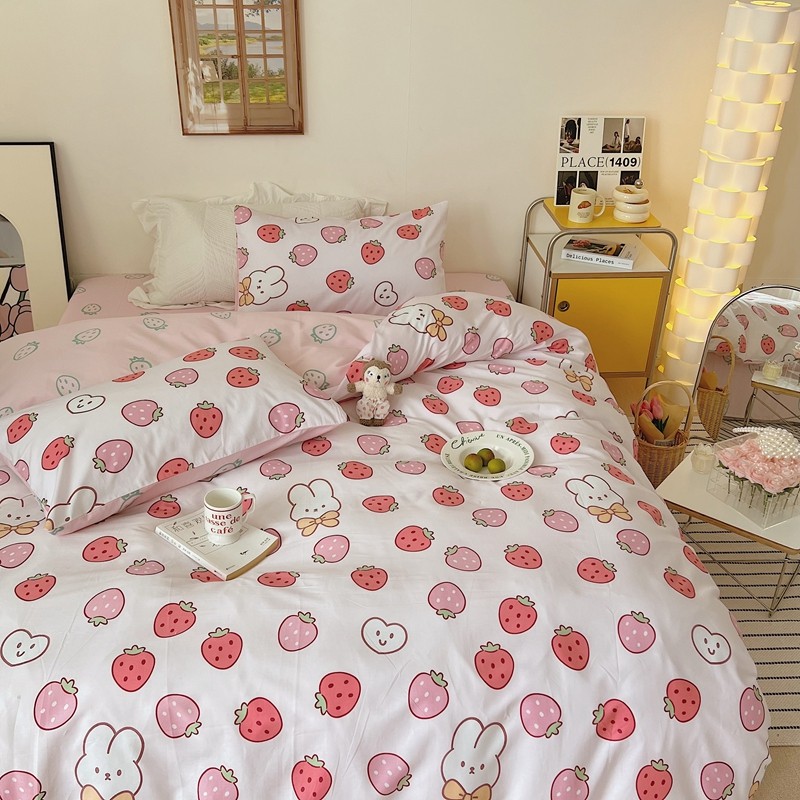 顾里家纺 2022ins韩系全棉四件套韩系花花系列 草莓兔心