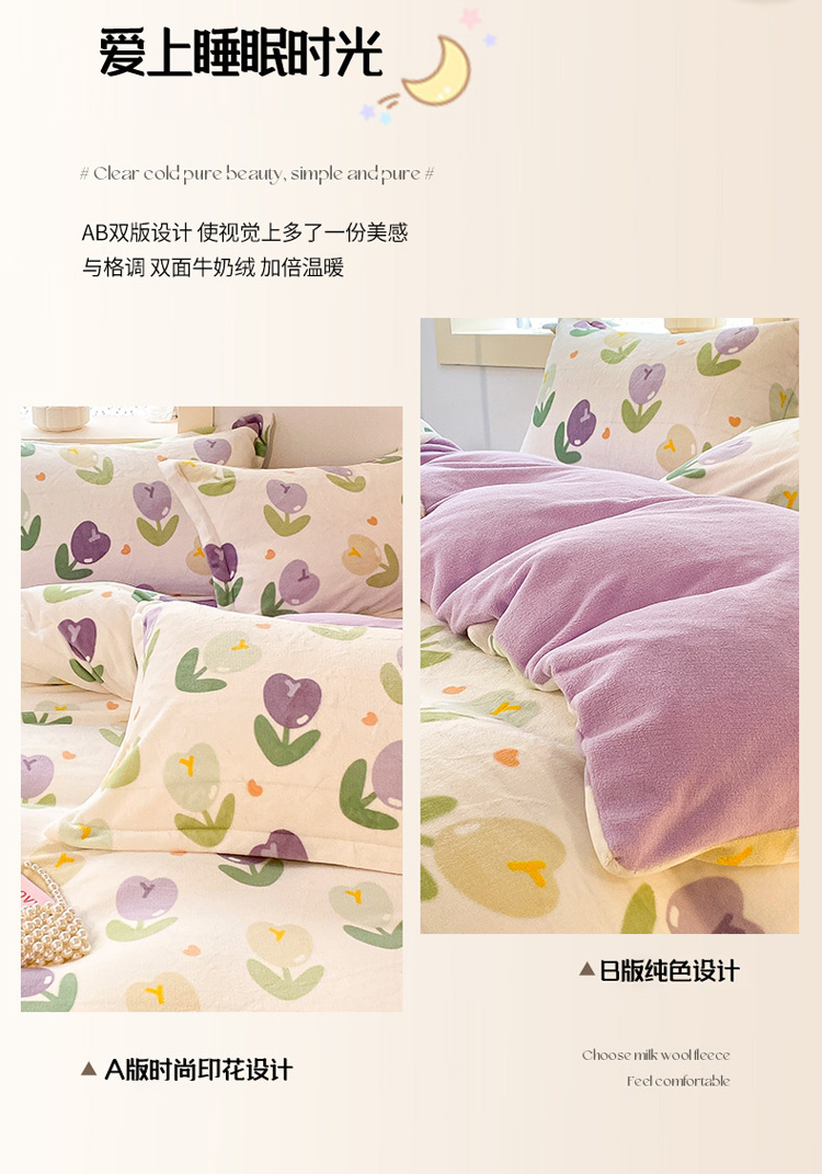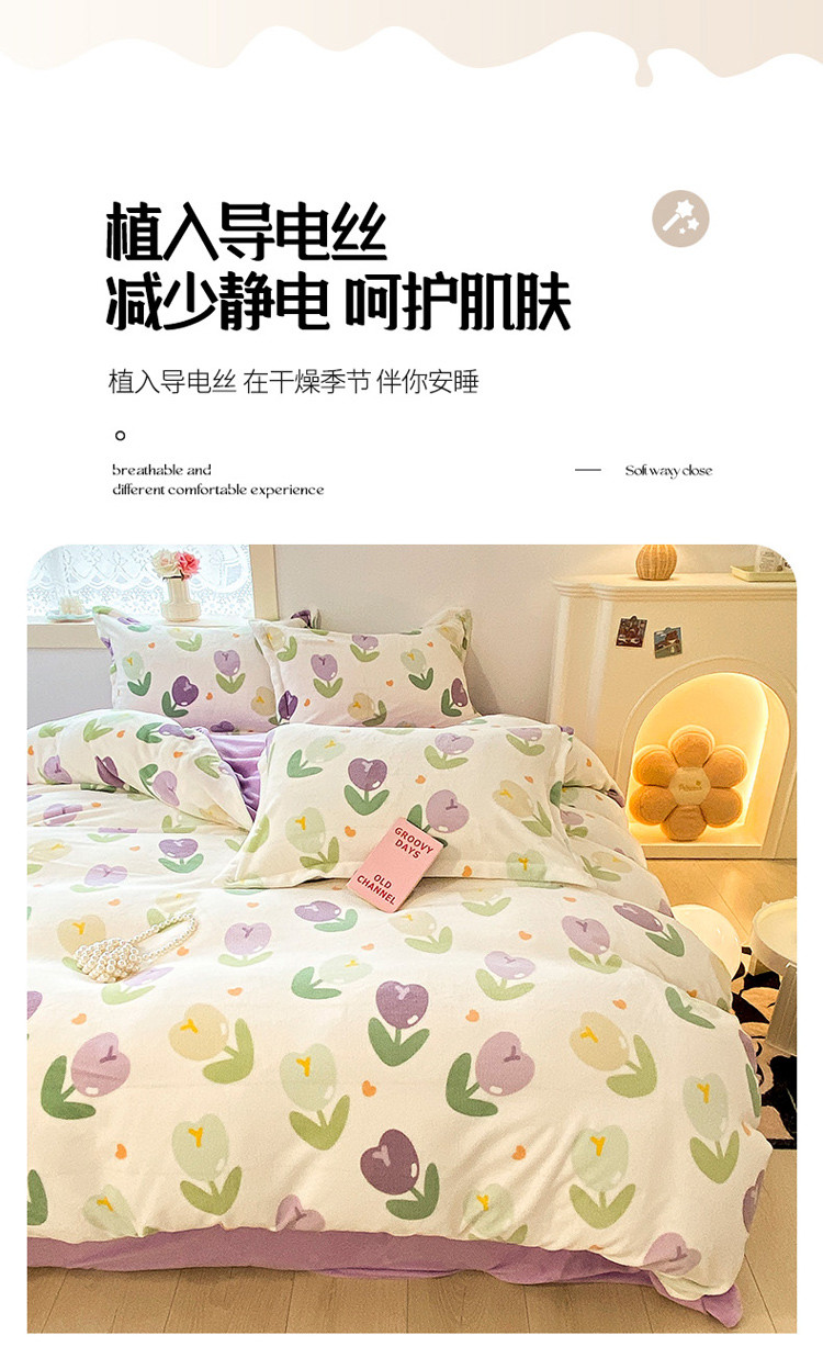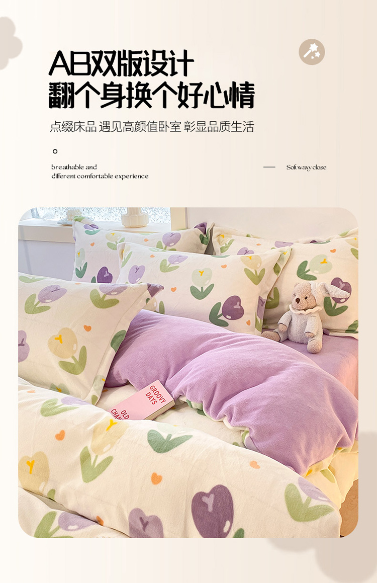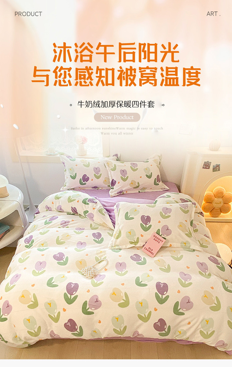 商品名称:沐慕 2022新款牛奶绒四件套 郁金香