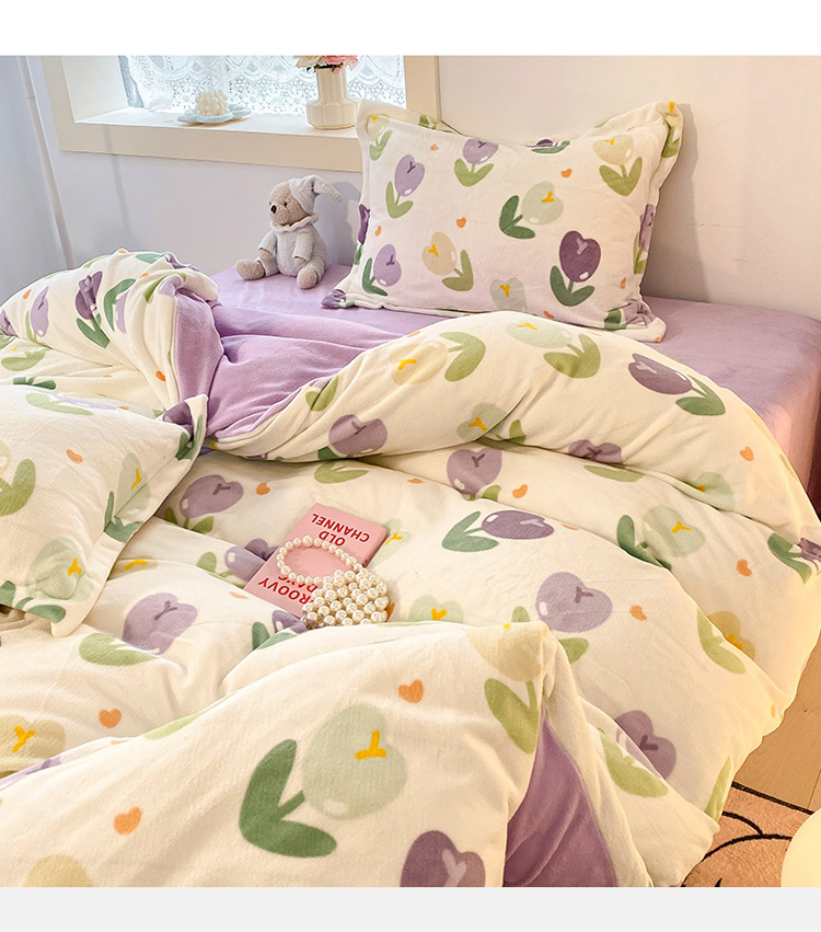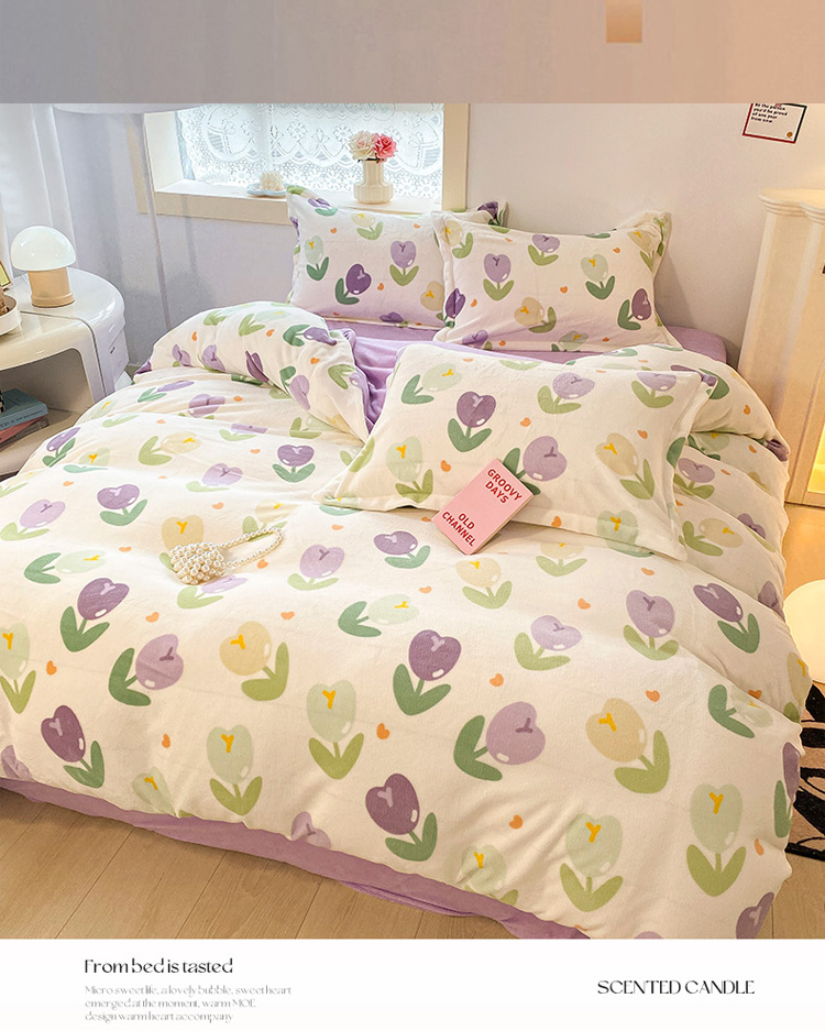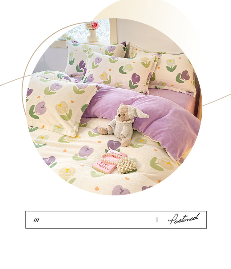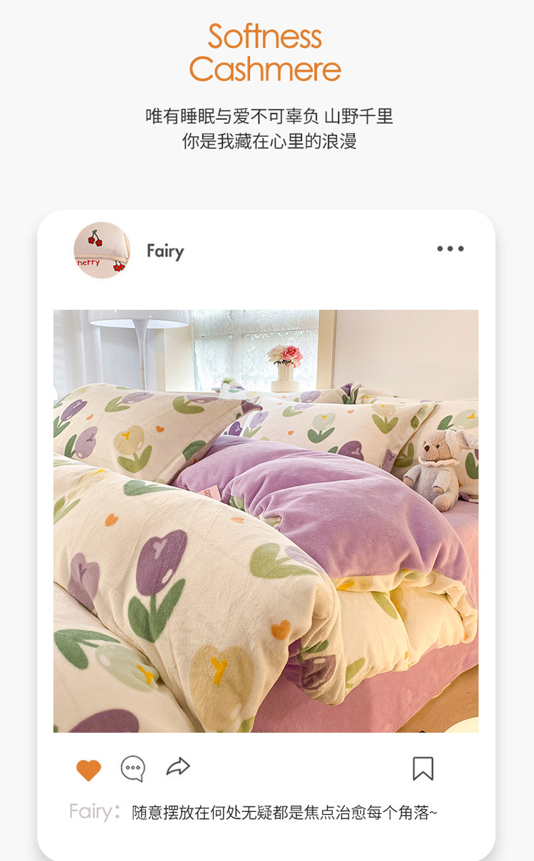 商品名称:沐慕 2022新款牛奶绒四件套 郁金香